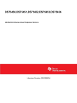 DS75450,DS75451,DS75452,DS75453,DS75454 DS75451/2/3 Series Dual Peripheral Drivers Literature Number: SNOSBM3A DS75451/2/3 Series Dual Peripheral Drivers General Description Features The DS7545X series of dual peripheral drivers is a family of versatile devices designed for use in systems that use TTL logic. Typical applications include high speed logic buffers, power drivers, relay drivers, lamp drivers, MOS drivers, bus drivers and memory drivers. The DS75451, DS75452 and DS75453 are dual peripheral AND, NAND and NOR drivers, respectively, (positive logic) with the output of the logic gates internally connected to the bases of the NPN output transistors. n n n n n n n n Connection Diagrams 300 mA output current capability High voltage outputs No output latch-up at 20V High speed switching Choice of logic function TTL compatible diode-clamped inputs Standard supply voltages Replaces TI “A” and “B” series (Dual-In-Line and Metal Can Packages) DS005824-2 DS005824-3 *See (Note 5) and Appendix E regarding S.O. package power dissipation constraints. Top View Order Number DS75451M or DS75451N Top View Order Number DS75452M or DS75452N See NS Package Numbers M08A* or N08E DS005824-4 *See (Note 5) and Appendix E regarding S.O. package power dissipation constraints. Top View Order Number DS75453M or DS75453N See NS Package Numbers M08A* or N08E © 2001 National Semiconductor Corporation DS005824 www.national.com DS75451/2/3 Series Dual Peripheral Drivers February 2000 DS75451/2/3 Absolute Maximum Ratings (Note 1) Molded DIP Package SO Package Storage Temperature Range Lead Temperature (Soldering, 4 sec.) If Military/Aerospace specified devices are required, please contact the National Semiconductor Sales Office/ Distributors for availability and specifications. Supply Voltage, (VCC) (Note 2) Input Voltage Inter-Emitter Voltage (Note 3) Output Voltage (Note 4) Output Current (Note 5) Maximum Power (Note 5) Dissipation† at 25˚C 7.0V 5.5V 5.5V 30V 300 mA 957 mW 632 mW −65˚C to +150˚C 260˚C Operating Conditions Supply Voltage, (VCC) Temperature, (TA) Min 4.75 0 Max 5.25 +70 Units V ˚C †Derate molded package 7.7 mW/˚C above 25˚C, derate SO package 7.56 mW/˚C above 25˚C. Electrical Characteristics (Notes 6, 7) Symbol Parameter VIH High-Level Input Voltage Conditions VIL Low-Level Input Voltage Input Clamp Voltage VCC = Min, II = −12 mA VOL Low-Level Output Voltage VCC = VIL = 0.8V Min, (Figure 7) V = 2V IH High-Level Output Current Typ Max Units 2 VI IOH Min (Figure 7) VCC = VOH = 30V Min, (Figure 7) IOL = 100 mA DS75451, DS75453 V 0.25 0.8 V −1.5 V 0.4 V IOL = 300 mA DS75451, DS75453 0.5 0.7 V IOL = 100 mA DS75452 0.25 0.4 V IOL = 300 mA DS75452 0.5 0.7 V VIH = 2V DS75451, DS75453 100 µA VIL = 0.8V DS75452 100 µA 1 mA 40 µA II Input Current at Maximum Input Voltage VCC = Max, VI = 5.5V, (Figure 9) IIH High-Level Input Current VCC = Max, VI = 2.4V, (Figure 9 ) IIL Low-Level Input Current VCC = Max, VI = 0.4V, (Figure 8) −1 −1.6 mA ICCH Supply Current, Outputs High VCC = Max, (Figure 10) VI = 5V DS75451 7 11 mA VI = 0V DS75452 11 14 mA VI = 5V DS75453 8 11 mA VCC = Max, (Figure 10) VI = 0V DS75451 52 65 mA VI = 5V DS75452 56 71 mA VI = 0V DS75453 54 68 mA Typ Max Units ICCL Supply Current, Outputs Low Switching Characteristics (VCC = 5V, TA = 25˚C) Symbol Parameter Conditions Propagation Delay Time, Low-to-High Level Output CL = 15 pF, RL = 50Ω, IO ≈ 200 mA, (Figure 14) Propagation Delay Time, High-to-Low Level Output CL = 15 pF, RL = 50Ω, IO ≈ 200 mA, (Figure 14) tTLH Transition Time, Low-to-High Level Output CL = 15 pF, RL = 50Ω, IO ≈ 200 mA, (Figure 14) tTHL Transition Time, High-to-Low Level Output CL = 15 pF, RL = 50Ω, IO ≈ 200 mA, (Figure 14 ) VOH High-Level Output Voltage after Switching VS = 20V, IO ≈ 300 mA, (Figure 15) tPLH tPHL www.national.com 2 Min DS75451 18 25 ns DS75452 26 35 ns DS75453 18 25 ns DS75451 18 25 ns DS75452 24 35 ns DS75453 16 25 ns 5 8 ns 7 12 ns VS − 6.5 mV (Continued) Note 1: “Absolute Maximum Ratings” are those values beyond which the safety of the device cannot be guaranteed. Except for “Operating Temperature Range” they are not meant to imply that the devices should be operated at these limits. The table of “Electrical Characteristics” provides conditions for actual device operation. Note 2: Voltage values are with respect to network ground terminal unless otherwise specified. Note 3: The voltage between two emitters of a multiple-emitter transistor. Note 4: The maximum voltage which should be applied to any output when it is in the “OFF” state. Note 5: Both halves of these dual circuits may conduct rated current simultaneously; however, power dissipation averaged over a short time interval must fall within the continuous dissipation rating. Note 6: Unless otherwise specified min/max limits apply across 0˚C to +70˚C range. All typicals are given for VCC = +5V and TA = 25˚C. Note 7: All currents into device pins shown as positive, out of device pins as negative, all voltages referenced to ground unless otherwise noted. All values shown as max or min on absolute value basis. Truth Tables (H = high level, L = low level) DS75451 A B Y L L L (ON State) L H L (ON State) H L L (ON State) H H H (OFF State) A B L L H (OFF State) DS75452 Y L H H (OFF State) H L H (OFF State) H H L (ON State) A B L L L (ON State) DS75453 Y L H H (OFF State) H L H (OFF State) H H H (OFF State) 3 www.national.com DS75451/2/3 Switching Characteristics DS75451/2/3 Schematic Diagrams DS75451 DS005824-11 Resistor values shown are nominal. DS75452 DS005824-12 Resistor values shown are nominal. DS75453 DS005824-13 Resistor values shown are nominal. www.national.com 4 DS75451/2/3 DC Test Circuits DS005824-15 Both inputs is tested simultaneously. FIGURE 1. VIH, VOL DS005824-18 Each input is tested separately. FIGURE 4. II, IIH DS005824-16 Each input is tested separately. FIGURE 2. VIL, VOH DS005824-19 Each input is tested separately. FI