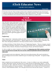 ATech Educator News Copyright ATech Training, Inc. March 2016 From time to time the ATech newsletter includes articles submitted by individuals who have demonstrated expertise in certain areas of automotive diagnostics, repair, and/or instruction. This month we are privileged to welcome Phil Jelinek retired Automotive Instructor from California as our guest author. S.T.E.M. The Basics!! This is the final of many articles about S.T.E.M. to help students/learners understand the basic concepts of what everyone is talking about, in easy to understand terms. I have attended many S.T.E.M. symposiums, only to discover that after the students explain their projects, they are unable to separate which part of their project is either the Science part, Technology Part, Engineering part, or the Math part. You see, S.T.E.M. is an acronym that stands for Science Technology Engineering and Mathematics. Engineering! What is Engineering? – Engineering combines the fields of Science, Technology and Math to solve real world problems that improve the world around us. Engineers apply the Laws of Science, using the Technology available to them and applying Mathematics to develop economical solutions to technical problems. According to the Bureau of Labor Statistics, there are 17 Engineering Categories. These are: Aerospace, Agricultural, Architects, Biomedical, Chemical, Civil, Computer Electrical/Electronic, Environmental, Health and Safety, Industrial, Marine, Materials, Mechanical, Mining/Geological, Nuclear, and Petroleum Engineers. So what is a simple one-sentence explanation of Engineering: Engineering is the “Who” and their work (Engineers) is the link between Scientific Discoveries and the commercial applications that meet societal and consumer needs. This last sentence needs some explanation. People who invent make prototypes, able to get the principles of theory and design across but not able to handle the rigors of continual usage of the public. So engineers bridge this gap. Math! Math is probably the most misunderstood of the sciences. To many, it is difficult, scary, and/or unfathomable. To others, Math teaches, instructs, and opens doors to wonders beyond our understanding without it. Sir Isaac Newton, Dec 25, 1642 – March 20, 1726, who is widely recognized as one of the most influential scientists of all time, laid the foundation for classical mechanics. He formulated the Laws of Motion and Universal Gravitation (Gravity), which dominated scientists’ view of the physical universe for the next three centuries. In order to ex1 plain to other scientists the Laws of Motion and Universal Gravitation (Gravity), he needed to create a New Language. That language was Calculus!!! Galileo Galilei (Feb 14, 1564 – Jan 8, 1642) said it best, “The universe cannot be read until we have learned the language and become familiar with the characters in which it is written. It is written in mathematical language, and the letters are triangles, circles and other geometrical figures, without which means it is humanly impossible to comprehend a single word. Without these, one is wandering about in a dark labyrinth.” Like any language you first have to learn the “alphabet”. Math’s “alphabet” are the “Letters” we use to make all the “Words”. These letters are: 1,2,3,4,5,6,7,8,9, & 0. We call it the decimal system since it has 10 “Letters”. We put the “Letters” together to make “Words”. 12 is a Math “Word”, when we put letters from our own alphabet with them, they make it meaningful, like 12 a.m. The “Sentences” are the formulas we use with the Letters to make sense of the world around us, such as: the Pythagorean Theorem, a2 + b2 = c2 as stated in Math language, or as stated in our words; In a right angled triangle: the square of the hypotenuse is equal to the sum of the squares of the other two sides. (see the picture for further clarification) Math is all around us; it is the building block for everything in our daily lives, including mobile devices, architecture (both ancient and modern), art, money, engineering, and even sports. Troubleshooting Trainer with Storage Case! What would we do without MATH?? It tells us the size of the Football Field, how to keep score, the size of the ball etc. Math tells us how Fast we are going, especially in a vehicle, 60, 70 MPH and up!!!! We use math to tell time throughout the day, when to do or not do things. like us on facebook & enter to WIN by Phillip Jelinek Phil Jelinek, who is now retired, was an award winning automotive instructor for over 25 years. He developed and implemented the first UC approved Automotive Physics (d-Lab Science) class and Automotive Engineering (gElective) class in California, there-by helping to save HS auto programs from extinction in that state. Three different years, he had teams attend the National New Car Competition in New York City, has been selected Teacher of the Year by three different organizations, and is currently the Past-President of the California Automotive Teachers Association. a refurbished Troubleshooting Trainer with Fault Board & Storage Case (model 1801B), Automotive Electricity Courseboard (model 1810A), Automotive Electronics Courseboard (model 1820A) & Interactive Keypad (model 1802) You don’t have a Facebook page? or You already ‘like’ us? Enter at marketing@atechtraining.com. All we need is your name, school, & contact information. One entry per person. Promotion ends on March 15th, 2016 and the winner will be notified after the end date. You may contact Phil at pjelinek@calautoteachers.com 2 CAT Turns 50 in 2016 Prepare for a big celebration in Modesto April 29th & 30th, 2016 Hosted by: Modesto College Modesto, CA Contact: Pedro Mendez mendezp@yosemite.edu Website: www.calautoteachers.com/conferences.html Stop by our booth to see a demonstration of our Applied Electrical Trainer, Electrical/PWM/Fault Trainer, Engine Perfomance Troubleshooting Trainer, Supplemental 