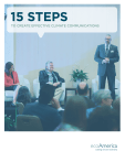 15 STEPS TO CREATE EFFECTIVE CLIMATE COMMUNICATIONS 2 15 Steps to Create Effective Climate Communications Talking About Climate Change It’s been challenging. For most people, climate change is an abstract subject tainted with divisive politics. We hear bits of guidance, such as getting the message and messenger right. To some, this means having scientists explain science. To others, it means having faith leaders talk about climate to the faithful. But there’s more to it than that. The truth is, we can all speak effectively on climate change. Americans know that the climate around them is changing. They are overtly or latently concerned. They want information and solutions that instill confidence and are consistent with their values and beliefs. If we truly understand and connect with Americans, we can provide them with answers that build support for solutions that they, in turn, can share with their networks. Process is as important as content. Even if you have all your facts down cold, people won’t necessarily listen, understand, remember, and act. You need to understand and relate to them to be heard. 15 Steps?! Yes. The guide presents a simple but comprehensive process to create effective climate communications. Drawn from research and real life experience from ecoAmerica and our partners, it works with any audience.a a. Over one dozen research studies have been consulted in creating the 15 steps. ecoAmerica can provide a full list of citations upon request. ecoAmerica is grateful to the John D. and Catherine T. MacArthur Foundation for its generous support. ecoAmerica 3 How to Use This Guide This guide provides a necessary process. It outlines the specific flow for creating and delivering successful climate change communications that resonate with your target audience. Keep in mind that the order in which you present information matters. Research shows that the same set of facts arranged in different ways produces different results. Follow the steps in order for maximum effectiveness. If you’d like more information on content, please visit ecoAmerica.org/research and download the American Climate Values and Let’s Talk Climate research reports. They contain effective, tested words, phrases, and narratives for general and thematic messages on faith, health, business, communities, families, and more. Suggested citation ecoAmerica: 2016. 15 Steps To Create Effective Climate Communications. ecoAmerica. Washington, D.C. 4 15 Steps to Create Effective Climate Communications The 15 Steps The following are the 15 steps to crafting emotionally resonant, personalized, and effective messages on climate change. 1 2 3 4 5 6 7 Start with people, stay with people If you want your audience to care about climate change, then care about them. Start from their perspective, not yours. Infuse your entire communication with tangible, relevant concerns. Move from people to climate, not the other way around, and keep going back to people. Connect on common values If you really understand your audience’s priorities, concerns, and values, you can open their hearts and minds by talking about those values and showing you share and honor them. Common values, such as family, community, choice/freedom, health, and fairness, are powerful motivators and connectors. Affiliation or “tribal” connectors such as being fellow congregants, business leaders, organization members, or professionals are also helpful. Acknowledge ambivalence People approach climate from different perspectives and have different levels of concern. And we all have other priorities. Don’t be self-righteous. Respect their perspectives, and allow them their own space. A simple line like “Some of us are more worried about climate change than others” allows people to be comfortable and listen with an open mind. Make it real Many Americans are latently concerned about climate change. We need to move them from concern to action. By focusing on local realities they can see with their own eyes—simple, irrefutable facts about changing seasons, local fauna, or record weather—you can make climate change relevant for them. Assume the realities, don’t argue the science. Use a light hand with one or two examples; then pivot quickly to solutions. Emphasize solutions Many people don’t yet realize we’ve developed solar and wind energy systems that cost less than even cheap natural gas. Transportation and energy storage systems are just around the corner. We also have proven policies that reduce carbon pollution while accelerating economic growth. There’s a suite of economic, health, nature, and security co-benefits that come along with the energy solutions. Make a powerful case with tangible examples that show real solutions are here and now to inspire your audience. Inspire and empower Americans are repeatedly told that they can’t make a difference on climate change, when the exact opposite is true. Every day, almost everything you do, from the way you drive to what you eat and how you talk about climate change, impacts the problem and the people around you. America can lead on climate solutions, and so can your state, town, family, and you! Focus on personal benefit As they burn good money that could be used on vacations, education, healthier food, or a bigger savings account, most Americans actually think action on climate change comes with a cost to their lifestyles and pocketbooks. The opposite is true. You save money by saving energy and are healthier with active transportation and better food. Always emphasize the personal benefits of climate solutions—your audience will take note. ecoAmerica 8 9 10 11 12 13 14 15 5 End with your “ask” Always empower your audience. Encourage them to turn the information and understanding into action. Give them examples, ideas, and steps they can take to make a difference. Remind and show them how behavior change is easier and cheaper than they think. Sequence matters Research reveals