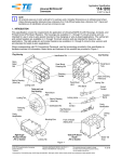 Application Specification 114-1010 Universal MATE-N-LOK* Connectors 10 OCT 14 Rev R NOTE All numerical values are in metric units [with U.S. customary units in brackets]. Dimensions are in millimeters [and inches]. Unless otherwise specified, dimensions have a tolerance of ±0.13 [±.005] and angles have a tolerance of ±2°. Figures and illustrations are for identification only and are not drawn to scale. 1. INTRODUCTION This specification covers the requirements for application of Universal MATE-N-LOK Housings, Contacts, and Printed Circuit (PC) Board Headers. The housings are available in 1- through 15-circuit versions and are intended for use in wire-to-wire (panel mounted or free hanging) or wire-to-board applications. The vertical pin and socket headers are available in 2- through 15-circuit versions and are intended for board-to- wire applications. The right-angle pin and socket headers are available in 2- through 8-circuit in-line versions and are intended for board-to-wire applications. When corresponding with TE Connectivity Personnel, use the terminology provided in this specification to facilitate inquiries for information. Basic terms and features of this product are provided in Figure 1. Plug Housing Cap Housing Identification Rib Strain Relief Slot Panel Mount Tabs Panel Mount Polarizing Rib Polarizing Cavities Back of Housing (Wire End) Back of Housing (Wire End) Panel Mount Latch Wire Barrel Locking Latch Twist and Lock Cap Housing Locking Tab Panel Mount Helix Locking Tab Locking Lance Back of Housing (Wire End) Pin Contact Identification Rib Polarizing Cavity High Retention Pin Contact Right-Angle PC Board Header (Pin or Socket) Insulation Barrel Cavity Identification Locking Tab Cavity Identification Mounting Ears Socket Contact Front of Header (Mating End) Vertical PC Board Header (Pin or Socket) Locking Tab Solder Tail (Typ) Figure 1 © 2014 TE Connectivity family of companies All Rights Reserved *Trademark TOOLING ASSISTANCE CENTER 1-800-722-1111 PRODUCT INFORMATION 1-800-522-6752 This controlled document is subject to change. For latest revision and Regional Customer Service, visit our website at www.te.com. TE Connectivity, TE connectivity (logo), and TE (logo) are trademarks. Other logos, product, and/or company names may be trademarks of their respective owners. 1 of 19 114-1010 2. REFERENCE MATERIAL 2.1. Revision Summary This paragraph is reserved for a revision summary covering the most recent additions and changes made to this specification which include the following: Updated document to corporate requirements and added wings to artwork in Figure 20 2.2. Customer Assistance Reference Product Base Part Number 480702 and Product Code 1318 are representative numbers of the Universal MATE-N-LOK product line. Use of these numbers will identify the product line and help you to obtain product and tooling information. Such information can be obtained through a local TE Representative, by visiting our website at www.te.com, or by calling PRODUCT INFORMATION or the TOOLING ASSISTANCE CENTER at the numbers at the bottom of page 1. 2.3. Drawings Customer Drawings for product part numbers are available from the service network. If there is a conflict between the information contained in the Customer Drawings and this specification or with any other technical documentation supplied, the information contained in the Customer Drawings takes priority. 2.4. Specifications Product Specifications 108-1031 (for connectors), and 108-1053 (for headers), provides product performance requirements and test result information. 2.5. Instructional Material The following list includes available instruction sheets (408-series) that provide assembly procedures for product, and operation, maintenance and repair of tooling; and customer manuals (409-series) that provide setup, operation, and maintenance of machines. Document Number Document Title 408-2095 408-3295 408-3320 408-7300 408-7424 408-7714 408-7984 408-8040 408-8053 408-8059 408-8547 408-9433 408-9591 408-9816 408-10049 409-5842 409-5852 409-5870 409-5878 409-10027 409-10029 409-10047 Hand Crimping Tool 69710-1 Preparing Reel of Contacts for Application Tooling Universal MATE-N-LOK Strain Relief Assembly and Keying Plug MATE-N-LOK Contact and Housing Selection Charts Checking Terminal Crimp Height or Gaging Die Closure Universal MATE-N-LOK Connectors Insertion Tool 455830-1 Heavy Duty Miniature Quick-Change Applicators (Side-Feed Type) Conversion Guide for Miniature Quick-Change Applicators General Preventive Maintenance for Applicators CERTI-CRIMP* II Straight Action Hand Tools Crimping Die Assemblies 58380-1 and 58380-2 Hand Crimping Tool 58439-1 Handling of Reeled Products Extraction Tool 1804030-1 AMP-O-LECTRIC* Model "G" Terminating Machines 354500-[ ] AMPOMATOR* CLS III-G Lead-Making Machine 122500-[ ] Crimp Quality Monitors (CQM) for AMPOMATOR CLS IV Lead-Making Machines AMPOMATOR CLS IV+ Lead-Making Machine 356500-[ ] Stripping Modules 1490500 and 1490502 Stripping Modules 1490501 and 1490503 AMP-3K Terminating Machines 1725950 2.6. Manuals Manual 402-40 is available upon request and can be used as a guide in soldering. This manual provides information on various flux types and characteristics along with the commercial designation and flux removal procedures. A checklist is attached to the manual as a guide for information on soldering problems. Rev R 2 of 19 114-1010 3. REQUIREMENTS 3.1. Storage A. Ultraviolet Light Prolonged exposure to ultraviolet light may deteriorate the chemical composition used in the housing material. B. Reel Storage When using reeled contacts, store coil wound reels horizontally and traverse wound reels vertically. C. Shelf Life Each connector is packaged and shipped in an individual antistatic tube container or tape and reel. To prevent damage to the housings and contact solder tines, the connectors should remain in the container until ready for installation. Also, to prevent possible storage con