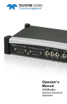Operator’s Manual ArbStudio Arbitrary Waveform Generator ArbStudio Arbitrary Waveform Generator Operator’s Manual January 2013 © 2013 Teledyne LeCroy, Inc. All rights reserved. Unauthorized duplication of Teledyne LeCroy documentation materials other than for internal sales and distribution purposes is strictly prohibited. However, clients are encouraged to distribute and duplicate Teledyne LeCroy documentation for their own internal educational purposes. ArbStudio and Teledyne LeCroy are registered trademarks of Teledyne LeCroy. Windows is a registered trademark of Microsoft Corporation. Other product or brand names are trademarks or requested trademarks of their respective holders. Information in this publication supersedes all earlier versions. Specifications are subject to change without notice. Warranty NOTE: THE WARRANTY BELOW REPLACES ALL OTHER WARRANTIES, EXPRESSED OR IMPLIED, INCLUDING BUT NOT LIMITED TO ANY IMPLIED WARRANTY OF MERCHANTABILITY, FITNESS, OR ADEQUACY FOR ANY PARTICULAR PURPOSE OR USE. TELEDYNE LECROY SHALL NOT BE LIABLE FOR ANY SPECIAL, INCIDENTAL, OR CONSEQUENTIAL DAMAGES, WHETHER IN CONTRACT OR OTHERWISE. THE CUSTOMER IS RESPONSIBLE FOR THE TRANSPORTATION AND INSURANCE CHARGES FOR THE RETURN OF PRODUCTS TO THE SERVICE FACILITY. TELEDYNE LECROY WILL RETURN ALL PRODUCTS UNDER WARRANTY WITH TRANSPORT PREPAID. The ArbStudio is warranted for normal use and operation, within specifications, for a period of three years from shipment. Teledyne LeCroy will either repair or, at our option, replace any product returned to one of our authorized service centers within this period. However, in order to do this we must first examine the product and find that it is defective due to workmanship or materials and not due to misuse, neglect, accident, or abnormal conditions or operation. Teledyne LeCroy shall not be responsible for any defect, damage, or failure caused by any of the following: a) attempted repairs or installations by personnel other than Teledyne LeCroy representatives or b) improper connection to incompatible equipment, or c) for any damage or malfunction caused by the use of non-Teledyne LeCroy supplies. Furthermore, Teledyne LeCroy shall not be obligated to service a product that has been modified or integrated where the modification or integration increases the task duration or difficulty of servicing the instrument. Spare and replacement parts, and repairs, all have a 90-day warranty. The instrument's firmware has been thoroughly tested and is presumed to be functional. Nevertheless, it is supplied without warranty of any kind covering detailed performance. Products not made by Teledyne LeCroy are covered solely by the warranty of the original equipment manufacturer. 922244-00 Rev A January 2013 Operator’s Manual TABLE OF CONTENTS Welcome .................................................................................................... 1 Minimum System Requirements ................................................................. 1 Suggested System Requirements ................................................................ 2 Package Contents ........................................................................................ 2 Safety Instructions ...................................................................................... 3 Symbols ........................................................................................................ 3 Precautions .................................................................................................. 3 Operating Environment ............................................................................... 4 Cooling ......................................................................................................... 5 Cleaning ....................................................................................................... 5 Calibration.................................................................................................... 5 Power ........................................................................................................... 6 Front Panel................................................................................................... 7 Back Panel .................................................................................................... 8 Getting Started with ArbStudio ................................................................. 10 Overview .................................................................................................... 10 Software and Driver Installation ................................................................ 10 Initial ArbStudio Software Interfaces ........................................................ 17 Setup Examples and Common Tasks ......................................................... 23 Channel Settings ....................................................................................... 32 Overview .................................................................................................... 32 Channel Settings - The General Tab........................................................... 33 Channel Settings - The Run Mode Tab (Waveform Sequence) ................. 35 Channel Settings - Run Mode Tab (Modulation) ....................................... 39 Channel Settings - The Trigger IN Tab........................................................ 40 Channel Settings - Trigger OUT Tab ........................................................... 42 Setup System ............................................................................................ 43 Setup Device ............................................................................................. 45 Timing Tab ................................................................................................. 45 922244-00 Rev A B i ArbStudio Channel Out Math Tab ..............................................................................