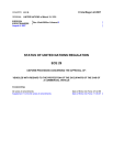 © InterRegs Ltd 2007 COUNTRY :E.C.E. ORIGINAL :UNITED NATIONS of March 15, 1974 E/ECE/324 E/ECE/TRANS/505 August 6, 2007 ) Rev.1/Add.28/Rev.1/Amend.2 ) STATUS OF UNITED NATIONS REGULATION ECE 29 UNIFORM PROVISIONS CONCERNING THE APPROVAL OF: VEHICLES WITH REGARD TO THE PROTECTION OF THE OCCUPANTS OF THE CAB OF A COMMERCIAL VEHICLE Incorporating: 02 series of amendments Supplement 1 to the 02 series of amendments Date of Entry into Force: 27.02.99 Date of Entry into Force: 11.06.07 © InterRegs Ltd 2007 COUNTRY :E.C.E. ORIGINAL :UNITED NATIONS of March 15, 1974 E/ECE/324 E/ECE/TRANS/505 August 6, 2007 ) Rev.1/Add.28/Rev.1/Amend.2 ) UNITED NATIONS AGREEMENT CONCERNING THE ADOPTION OF UNIFORM TECHNICAL PRESCRIPTIONS FOR WHEELED VEHICLES, EQUIPMENT AND PARTS WHICH CAN BE FITTED AND/OR BE USED ON WHEELED VEHICLES AND THE CONDITIONS FOR RECIPROCAL RECOGNITION OF APPROVALS GRANTED ON THE BASIS OF THESE PRESCRIPTIONS (*) (Revision 2, including the amendments entered into force on October 16, 1995) Addendum 28: Regulation No. 29 Revision 1 - Amendment 2 Incorporating all valid text up to: 02 Series of amendments - Date of entry into force: February 27, 1999 Supplement 1 to the 02 Series of amendments - Date of entry into force: June 11, 2007 UNIFORM PROVISIONS CONCERNING THE APPROVAL OF VEHICLES WITH REGARD TO THE PROTECTION OF THE OCCUPANTS OF THE CAB OF A COMMERCIAL VEHICLE (*) Former title of the Agreement: Agreement Concerning the Adoption of Uniform Conditions of Approval and Reciprocal Recognition of Approval for Motor Vehicle Equipment and Parts, done at Geneva on March 20, 1958. TITLE: Commercial Vehicle Occupant Protection Aug/2007 Regulation No. 29 PAGE: 1 © InterRegs Ltd 2007 COUNTRY :E.C.E. ORIGINAL :UNITED NATIONS of March 15, 1974 REGULATION NO. 29 UNIFORM PROVISIONS CONCERNING THE APPROVAL OF VEHICLES WITH REGARD TO THE PROTECTION OF THE OCCUPANTS OF THE CAB OF A COMMERCIAL VEHICLE Contents REGULATION 1. 2. 3. 4. 5. 6. 7. 8. 9. 10. 11. Scope Definitions Application for approval Approval Requirements Modifications and extension of approval of the vehicle type Conformity of production Penalties for non-conformity of production Production definitely discontinued Transitional provisions Names and addresses of technical services conducting approval tests, and of administrative departments ANNEXES Annex 1 – Communication concerning the approval or extension or refusal or withdrawal of approval or production definitely discontinued of a vehicle type with regard to the protection of the occupants of the cab of a commercial vehicle, pursuant to Regulation No. 29. Annex 2 – Arrangements of approval marks Annex 3 – Test Procedure Appendix 1 : Instructions for securing vehicles to the test bed Appendix 2 : Manikin to be used to verify the survival space. Annex 4 TITLE: – Procedure for determining the "H" point and the actual torso angle for seating positions in motor vehicles Commercial Vehicle Occupant Protection Aug/2007 Regulation No. 29 PAGE: 2 © InterRegs Ltd 2007 COUNTRY :E.C.E. ORIGINAL :UNITED NATIONS of March 15, 1974 REGULATION NO. 29 UNIFORM PROVISIONS CONCERNING THE APPROVAL OF VEHICLES WITH REGARD TO THE PROTECTION OF THE OCCUPANTS OF THE CAB OF A COMMERCIAL VEHICLE 1. SCOPE This Regulation applies to vehicles of Category N occupants of the cab. 2. (1) with regard to the protection of the DEFINITIONS For the purpose of this Regulation: 2.1. "approval of a vehicle" means the approval of a vehicle type pursuant to the requirements of this Regulation, with regard to the protection of the occupants of the cab of a commercial vehicle in the event of head-on impact, of overturning, or of shifting of the load; 2.2. "vehicle type" means a category of power-driven vehicles which do not differ in such essential respects as: 2.2.1. the dimensions, shapes and materials of the components of the vehicle cab; or 2.2.2. the manner of attachment of the cab to the chassis frame; 2.3. "transverse plane" means a vertical plane perpendicular to the median longitudinal plane of the vehicle; 2.4. "longitudinal plane" means a plane parallel to the median longitudinal plane of the vehicle. 3. APPLICATION FOR APPROVAL 3.1. The application for approval of a vehicle type with regard to the protection of the occupants of the cab of a commercial vehicle shall be submitted by the vehicle manufacturer or by his duly accredited representative. 3.2. It shall be accompanied by drawings of the vehicle, showing the position of the cab on the vehicle and the manner of its attachment, and by sufficiently detailed drawings relating to the structure of the cab, all the said drawings being submitted in triplicate. 4. APPROVAL 4.1. If the vehicle type submitted for approval pursuant to this Regulation meets the requirements of Paragraph 5 hereof, approval of that vehicle type shall be granted. 4.2. An approval number shall be assigned to each type approved. Its first two digits (at present 02 corresponding to the 02 series of amendments) shall indicate the series of amendments incorporating the most recent major technical amendments made to the Regulation at the time of issue of the approval. The same Contracting Party may not assign the same number to another vehicle type within the meaning of Paragraph 2.2. above. (1) As defined in Annex 7 to the Consolidated Resolution on the Construction of vehicles (R.E.3), document TRANS/WP.29/78/Rev.1/Amend.2, as last amended by Amendment 4. TITLE: Commercial Vehicle Occupant Protection Aug/2007 Regulation No. 29 PAGE: 3 © InterRegs Ltd 2007 COUNTRY :E.C.E. ORIGINAL :UNITED NATIONS of March 15, 1974 4.3. Notice of approval or of extension or of refusal or of withdrawal of approval or production definitely discontinued of a vehicle type pursuant to this Regulation shall be communicated to the Parties to the Agreement which apply this Regulation by means of a form conforming to the model in Annex 1 to this Regulation. 4.4. There shall be affixed, conspicuously and in a rea