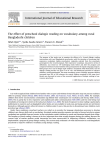 International Journal of Educational Research 48 (2009) 12–20 Contents lists available at ScienceDirect International Journal of Educational Research journal homepage: www.elsevier.com/locate/ijedures The effect of preschool dialogic reading on vocabulary among rural Bangladeshi children Aftab Opel a,*, Syeda Saadia Ameer a, Frances E. Aboud b a b Early Childhood Development Resource Centre, BRAC University Institute of Educational Development, Dhaka, Bangladesh Department of Psychology, McGill University, Montreal, Canada A R T I C L E I N F O A B S T R A C T Article history: Received 11 July 2007 Received in revised form 15 February 2008 Accepted 18 February 2009 The purpose of the study was to examine the efficacy of a 4-week dialogic reading intervention with rural Bangladeshi preschoolers with the intention of increasing their expressive vocabulary. Eighty preschoolers randomly selected from five preschools participated in the 4-week program. Their expressive vocabulary, measured in terms of definitions, was tested on 170 challenging words before and after the program and compared with that of control children who participated in the regular language program. Both groups were read in Bangla eight children’s storybooks with illustrations, but the dialogic reading teacher was given a set of ‘‘wh’’ and definitional questions to enhance children’s verbal participation. The mean vocabulary scores of dialogic program children increased from 26% to 54% whereas the control children remained at the same level. Results are discussed in terms of the successful application of dialogic reading to lowresource preschools. ß 2009 Elsevier Ltd. All rights reserved. Keywords: Dialogic reading Preschool Expressive vocabulary Bangladesh 1. Introduction It is well-recognized that children from families who are poor and without formal education may not possess readiness skills for primary school (Aboud, 2006; Britto & Kohen, 2005; San Francisco, Arias, Villers, & Snow, 2006). For example, children from lower socioeconomic communities lag behind their counterparts on vocabulary and literacy skills (Evans, 2004). This is partly due to less responsive and sophisticated adult communication (Hoff, 2003) and less time being read storybooks or hearing new stories in the early years (Raikes et al., 2006). The lack of exposure to story reading is particularly problematic in countries such as Bangladesh where books are not available in rural areas and many parents are not literate themselves. Although parents often tell stories to children under 3 years, this practice is discontinued once children reach preschool age (Aboud, 2007). Under these conditions, preschool teachers are relied on to provide the language stimulation necessary to develop children’s pre-literacy skills such as vocabulary. Storybook reading provides exposure not only to literacy but also to unique vocabulary not available from oral stories, in that storybooks connect children to words and situations beyond their village. The frequency of book reading is known to be less important than what actually happens during the reading. Because the current style of teacher–student verbal interaction has been unsuccessful in improving children’s vocabularies, we implemented a program of group dialogic reading. The current study evaluated a 4-week intervention in rural Bangladeshi preschools to improve children’s vocabulary using dialogic reading. * Corresponding author. E-mail address: Aftab.Opel@gmail.com (A. Opel). 0883-0355/$ – see front matter ß 2009 Elsevier Ltd. All rights reserved. doi:10.1016/j.ijer.2009.02.008 A. Opel et al. / International Journal of Educational Research 48 (2009) 12–20 13 1.1. Preschool situation in Bangladesh In Bangladesh, preschools are still relatively new and their quality is the subject of extensive study. A recent survey in Bangladesh showed that a total of 147 organizations, most of which are non-governmental, have preschool programs attended by about 790,000 children (Early Childhood Development Resources Center, 2006). They are expanding rapidly and considered essential in order to prepare children for primary school, reduce the drop-out rate, and increase the number of children passing fifth grade competency tests. Prior independent evaluations of preschools organized by non-governmental organizations indicated that in some respects their quality was moderate—3.5 out of 7 on the Early Childhood Environment Rating Scale (ECERS, Aboud, 2006). Vocabulary scores on an adapted version of the WPPSI (Wechsler Preschool and Primary Scale of Intelligence) were superior to non-preschoolers with the same background, but still low. Because ECERS scores correlated significantly with children’s school readiness and WPPSI reasoning scores (Matrices and Similarities), improvements to the program were guided by the ECERS and recommendations of a child development specialist. The first round of improvements focused on activities and program structure, rather than language and literacy. However, 50 storybooks were added to supplement the 10 currently being used. Teachers were trained in how to be more responsive to children’s questions rather than predominantly offering instruction to the whole group. However, offering free play with more complex and diverse learning materials was the major thrust. After implementing these improvements, 10 preschools reached an average of between 4 and 5 on the 2 important subscales of Activities and Program Structure (Moore, Akhter, & Aboud, 2008). This was accomplished within a year at minimal extra cost. Benefits were passed on to the children who attended the improved preschools in comparison to those who attended the regular program, matched for ECERS score the year before. In particular, children showed greater improvements in Block Design and Matrices, both measuring visual analytic reasoning that would later support math skills (Moore et al., 2008). However, ch