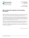 Advanced Circuit Materials Division 100 S. Roosevelt Avenue Chandler, AZ 85226 Tel: 480-961-1382, Fax: 480-961-4533 www.rogerscorp.com Advanced Circuit Materials Data Sheet and Fabrication Guidelines 4.4.2 3001 Bonding Film Properties and Laminating Techniques Rogers 3001 bonding film is a thermoplastic chloro-fluorocopolymer. It is recommended for bonding low dielectric constant PTFE (Teflon® fluorocarbon polymer) microwave stripline packages and other multilayer circuits. It may also be used to bond other structural and electrical components to the dielectric. 3001 bonding film features a low dielectric constant and low loss tangent at microwave frequencies, ensuring minimum interference with the electrical function of bonded stripline and other multilayer constructions. It is compatible with Rogers RT/duroid® low dielectric constant laminates, ULTRALAM® woven glass/PTFE microwave circuit laminates, RO3000® series high frequency circuit materials, RT/duroid® 6002 ceramic filled circuit materials, and other PTFE-based low dielectric constant substrates. Reliable bonds can be achieved with 3001 bonding film using equipment readily available in the printed circuit fabrication industry. Laminating techniques are familiar to most circuit fabrication shops. The film is easily cut to size, and accurate relief holes for tooling slots and surface mounted launchers may be punched. 3001 bonding film is available in a thickness of 0.0015" (0.381mm), in continuous 12" (305mm) wide rolls, on standard 3" ID cores. Properly designed packaging and plastic cores ensure freedom from airborne contamination, and paper of cardboard "lint". (See product data on page 4) The world runs better with Rogers.® BF 4.4.2 Page 2 of 4 PREPARATION: 1. Copper: Following etching and stripping of the etch resist, copper circuitry should be treated with a light microetch to ensure complete removal of resist residues and to provide sufficient topography for sound mechanical adhesion. DO NOT mechanically clean. NOTE: Do not use 3001 Bond Film when bonding to metal ground planes or where inner layers are mostly metal. 2. All surfaces to be bonded should be free of contaminants that impair adhesion, including dust, grease, oil, fingerprints, non-adherent oxides, salts or other process chemical residues. A final rinse of deionized water may be followed by a dip in clean isopropyl alcohol. Avoid use of compressed air which can deposit airborne contaminates such as oil. The PTFE surface as initially exposed by etching away electrodeposited foil is typically waterwettable and capable of forming a bond without a sodium etch treatment. Almost any kind of solid surface contact by scrubbing, swabbing, rubbing or normal stacking and handling will destroy that wettability by distorting the microscopic surface features left from the copper cladding. The result will be that a PTFE surface treatment will be needed to assure repeatability of a good bond. Treat the surface with one of the commercially available elemental sodium solutions such as Poly-Etch® or FluoroEtch®. Alternatively, sodium complex in liquid ammonia according to U.S. Patent 2,789,062 can be used. (Because of the high ceramic content on RT/duroid 6002, 6006, 6010, RO3000™ and RO3200™ families, surface preparation might not be needed and not recommended). Hot air oven baking should be used to assure removal of all solvent residues. This can be as little as 45 to 60 minutes at 121°C (250°F) but with some solvents such as acetone, methylene chloride or trichlor as much as 2 hours at 150°C (302°F) may be needed to assure complete solvent removal. 3. Staging: Boards prepared for bonding should be stored in a clean, dry environment. Generally layup and bonding should be done within 24 hours of surface preparation. 4. 3001 Bonding Film: The bonding film arrives ready for use and requires no further preparation. Handle the film in a clean, dustfree environment only with gloves to avoid contamination with skin acids and oils. BONDING TECHNIQUE: Notes: 1. Layup: Assemble boards to be bonded interleaved with bonding film between dielectric layers. In cases where registration is critical, the plates should be provided with pins and the boards and film with holes. Clean room or filtered air flow conditions are recommended. A thermocouple inserted at the bond line is recommended for observing the lag time for reaching the bonding temperature. Thermocouples should be small diameter and located where they will not damage the part or interfere with pressure uniformity. a. A maximum bond strength may be achieved using a press temperature of 232°C (450°F) for most standard RT/duroid laminates or their equivalents clad with electrodeposited copper and etched (but not sodium etched). 3001 bonding film has minimal adhesion to copper and should not be used where large copper surfaces are present. 2. Clamp: While the press is cool, typically below 120°C (248°F), center the assembly package on the platen area. Close the press and adjust the hydraulic system so that the bond area receives the desired pressure. Generally 100 psi is sufficient but up to 200 psi may be required to assure flow of the bonding film when the copper pattern occupies a greater part of the bond areas. Clamping in a cool press followed by heating is important for uniformity of temperature across the bond area as the bonding film fuses. 3. Heat: Start the platen heating cycle toward a 220°C (428°F) set point. Generally the maximum heating rate is acceptable as long as enough control is used to keep the upper and lower platens at nearly the same temperature, within 1 to 5°C. 4. Dwell: Hold the temperatures at the bond line at set point for a minimum of 15 minutes. This allows the film, in its melted state, time to flow and wet the surfaces to be bonded. The embedded thermocouple is useful to be sure the bond line actually sees this dwell. For thick layups there could be enough lag in heating to require an
