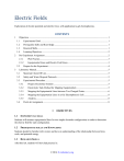 Electric Fields Exploration of electric potential and electric force, with application to gel electrophoresis. 1 CONTENTS Objectives ............................................................................................................................................. 1 1.1 Experimental Goal ........................................................................................................................ 1 1.2 Prerequisite skills and Knowledge ................................................................................................ 1 1.3 Research Skills .............................................................................................................................. 1 1.4 Learning Objectives ...................................................................................................................... 2 2 Pre-Experiment Assignment ................................................................................................................. 2 2.1.1 Phet Practice.......................................................................................................................... 3 2.1.2 Equipotential Lines and Electric Field Lines ........................................................................ 3 2.2 3 Prepare for the Experiment ........................................................................................................... 4 Laboratory Manual................................................................................................................................ 5 3.1 Materials Check Off List............................................................................................................... 5 3.2 Safety and Waste Disposal Protocols............................................................................................ 5 3.3 Experimental Procedure ................................................................................................................ 5 3.3.1 Prepare Electrolyte Solution ................................................................................................. 5 3.3.2 Electrolytic Tank Method for Mapping Equipotentials ........................................................ 5 3.3.3 Mapping the Equipotential Lines between Two Charged Points .......................................... 6 3.3.4 Mapping the Equipotential Lines in a Gel Electrophoresis Cell ........................................... 8 3.3.5 Analysis................................................................................................................................. 8 3.4 Post-Lab Assignment .................................................................................................................... 8 1 1.1 OBJECTIVES EXPERIMENTAL GOAL Students will measure equipotential lines for two simple electrode configurations in order to determine the electric field for each configuration. 1.2 PREREQUISITE SKILLS AND KNOWLEDGE Students should be familiar with vectors and have an understanding of the relationship between force, work, and potential energy. 1.3 RESEARCH SKILLS After this lab, students will have had practice in: © 2016 X-Laboratory.org 2|Electric Fields • • • • 1.4 Mapping equipotential lines Drawing electric field lines from equipotentials Building simple electrical circuits Using LabVIEW LEARNING OBJECTIVES After this lab, students will be able to: • • • • Describe the basic structure of an electric field. Predict the shape of an electric field resulting from a given electrode configuration. Predict the effect an electric field will have on charged particles Determine the electric field from equipotential lines 2 PRE-EXPERIMENT ASSIGNMENT In this experiment you will map the electric fields and equipotential lines in two simple electrode geometries: 1. Two point charges: 2. Two charged parallel lines What do you think would happen to a positively charged particle (like a proton) if it were placed somewhere between the two point charges? Between the two charged lines? 1 Equipotential lines are a lot like contour lines on a topographic map, except that where lines on a topographic map indicate the same height above sea level, all points on one equipotential line have the same electrical potential. * Match up the following three topographic maps with the three side views of the hills they might represent: 2 * For more information about contour lines go to the USDS USDS Natural Resources Conservation Service publication, “Reading Topographic Maps” for a quick tutorial on how to read a topographic map. You can find this publication in the lab folder under the Student Resources tab on e-Learning. © 2016 X-Laboratory.org Electric Fields |3 The spacing of contour lines is an indicator of how rapidly the energy (potential or kinetic) of an object is changing as it crosses them. Since the rate of change of its potential energy, U, with respect to position is the force felt by the object, πΉπΉ(π₯π₯) = − πππποΏ½ππππ (1) the contour lines on a map help us to predict the force felt by an object at any point on the map. 2.1.1 Phet Practice Go to the Phet simulation of charges and fields: http://phet.colorado.edu/sims/charges-and-fields/charges-and-fields_en.html Try these things: 1. Arrange the charges to reproduce the two charge configurations described above. 2. Draw equipotential lines using the equipotential tool. Be careful to keep the contour interval the same, or as close as possible to the same. Hint: it is easier to control the voltage on the equipotential tool when the slope is not steep. 3. Use the E-Field Sensors to probe the magnitude and direction of the electric field at different locations within each configuration. Discover the answers to these questions about the electric field caused by two opposite point charges: At which location(s) is the electric field strongest? 3 At which location(s) is the electric field weakest?4 How do the equipotential