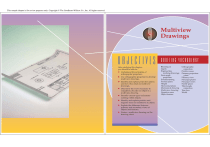 This sample chapter is for review purposes only. Copyright © The Goodheart-Willcox Co., Inc. All rights reserved. 202 Exploring Drafting Chapter 9 9 OBJECTIVES After studying this chapter, you should be able to: ◆ Understand the principles of orthographic projection. ◆ Use orthographic projection to develop multiview drawings. ◆ Identify and explain projection planes and how they relate to multiview drawings. ◆ Determine the views necessary to completely describe an object in a multiview drawing. ◆ Identify various types of features existing within objects. ◆ Identify and explain positive and negative mass as it relates to an object. ◆ Explain the difference between primary and secondary views of objects and features. ◆ Center a multiview drawing on the drawing sheet. Multiview Drawings 203 Multiview Drawings Drafting vocabulary Blocking in Depth Engineering working drawings First-angle projection Foreshortening Frontal plane Height Horizontal plane Mechanical drawing Multiview drawing Negative mass Object feature Orthographic projection Positive mass Primary projection plane Primary view Principal planes Principal views Profile plane Third-angle projection True face Width 204 Exploring Drafting Chapter 9 When a drawing is made with the aid of instruments, it is called a mechanical drawing. Straight lines are made with a T-square, triangle, or drafting machine straightedge. Circles, arcs, and irregular curves are drawn with a compass, French curve, or the appropriate template for the object needed. As discussed in Chapter 7, drawings are also generated with computer-aided drafting (CAD) software. While many drafting firms now use CAD for developing drawing projects, knowledge of manual drafting techniques and procedures is still extremely valuable in solving design problems. Regardless of the technique, whether traditional (manual) or CAD drafting, the principles of drafting remain the same. The drafter must be familiar with the standards and procedures necessary to develop drawings that accurately describe objects. Many drawings used by industry are created as multiview drawings. A multiview drawing is a drawing that requires more Top view Left view Rear view Front view Right view Bottom view Figure 9-1 An object is normally viewed from six basic directions. than one two-dimensional view in order to provide an accurate shape and size description of the object being produced. In developing the needed views, the object is normally viewed from six basic directions, as shown in Figure 9-1. These are the six principal views. They include the front, top, right side, left side, rear, and bottom views. See Figure 9-2. Visualizing the Object and Projecting Views Before a drafter can generate the necessary views for a multiview drawing, he or she must be able to visualize the object being drawn. In other words, the drafter must be able to see the object in three dimensions in his or her mind’s eye. This is an essential skill in drafting. There are many methods and techniques that aid in the process of visualizing objects. The following approach should help the beginning drafter become successful at visualizing objects. To obtain the two-dimensional views needed for a multiview drawing, the drafter should first think of the object as being enclosed in a hinged glass box. See Figure 9-3. The six surfaces of the glass box are the standard projection planes to which the individual views are projected. The process used in projecting the views to the projection planes is known as orthographic projection. This process allows three-dimensional objects (objects having Top view Rear view Left view Front view Right view Bottom view Figure 9-2 The six basic directions of sight provide the principal views for developing a multiview drawing. Shown are the principal views of the object in Figure 9-1. Figure 9-3 Visualizing a three-dimensional object inside a hinged glass box helps establish the planes of projection for projecting views. Multiview Drawings 205 width, height, and depth) to be shown on a flat surface having only two dimensions. The flat surface may be a piece of paper or the screen of a computer monitor. Orthographic projection is the key tool used in developing views for engineering working drawings (drawings used to manufacture or construct objects). There are two ways to project views in orthographic projection, Figure 9-4. Thirdangle projection is preferred in the United States. First-angle projection is typically used in most European countries. The difference between the two types of projection relates to the placement of the imaginary box in one of the quadrants formed by the intersection of the three principal planes. Referring to Figure 9-4, these planes are the frontal plane, horizontal plane, and profile plane. The frontal plane represents the projection for the front view of an object. The horizontal plane represents the projection for the top view of the object. The profile plane represents the projection for the side view of the object. In third-angle projection, the imaginary box containing the object rests in the third quadrant (the lower-right or thirdangle quadrant when looking at the profile plane). In this type of projection, the sides of the object are projected to the sides of the box and toward the viewer. In first-angle projection, the imaginary box containing the object rests in the first quadrant (the upper-left or first-angle quadrant when looking at the profile plane). In this type of projection, the sides of the object are projected to the sides of the box and away from the viewer. A graphic explanation of third-angle projection is shown in Figure 9-5. In this method, the object is viewed from points of view that are perpendicular to the projection planes (the surfaces of the glass box). The drafter looks through the given projection plane and the surfaces, edges, and intersections that make up the object are then projected forward to the projection 