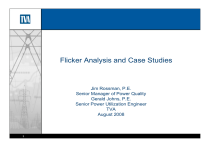 Flicker Analysis and Case Studies Jim Rossman, P.E. Senior Manager of Power Quality Gerald Johns, P.E. Senior Power Utilization Engineer TVA August 2008 1 Voltage Drop Creating Visible Light Flicker Voltage Flicker Is: Voltage Drop as Seen by Others Visible With Incandescent lights and some CFLs Complaints Normally From Residential Customers Much lower in magnitude than a fault related voltage sag – usually only a few volts on 120V system Noticeable at low levels and downright annoying at higher levels 2 Voltage Flicker Does Not: Normally does not cause equipment downtime Does not damage other folks equipment Flicker is Perceived Voltage Drop Voltage Drop is Graphically Shown Below Drawing Copied from IEEE 141 Vdrop ≅ IR cos Φ + IX sin Φ 3 Per Unit Approach to Calculating Flicker Vdrop ≅ IR cos Φ + IX sin Φ Hand calculations often work best in percent on an MVA base TVA uses 100-MVA as our base so the following is the same approach but written on a percent basis: %Vdrop ≅ MWswing (% R1) + MVARswing (% X 1) 100 Example: Large motor draws 25-MW and 40-MVAR on startup. With a system Thevenin equivalent Of Z= 0.988% +j 7.170% (100-MVA base), What is the expected voltage swing on startup? Vdrop ≅ 4 25MW (0.988%) + 40 MVAR (7.170%) = 3 .1 % 100 Perceived Voltage Drop in Lights GE Flicker Curves Copied From IEEE 141 5 TVA Flicker Curve 6 Flicker Curves IEEE 141 and TVA TVA Curve In Red 7 Three Key Flicker Components Recipe for Complaints: 1. Start with - Varying load/generation equipment 2. Serve from a - High System Impedance 3. Repeat variations until annoying 8 Component 1: Equipment with Load Swings Leading to Possible Flicker Issues • Motors and Compressors – – – – • • • • • 9 Rock Crushers Saw Mills Large Motors (Car Shredders, pumping systems) HVAC systems Welders Process ARC Furnaces Process Induction Furnaces Wind Generators Others Mitigation Systems Reducing Load Swings Dynamic Var Systems – – – – Static Var Compensators Dstatcom Intellivar Thyristor-Controlled Capacitor Systems Motor Impact Reduction – Reduced Voltage Starters – Wound Rotor Motor Resistors – DC Motor Systems Sequencing Multiple Welder Systems Arc Furnace Reactors 10 Component 2: Impedance Issues Important to Flicker Critical Point of Common Coupling (PCC) for Flicker Studies 60_MVA 2 AC1 + 1 RL + + PI2 RL 161kVRMSLL /_0 20_MVA 1 2 PI1 3 161/69/13 ZZ_1 + RL1 69/13.2 .28 7Ohm Transmission Sub-transmission Distribution Distribution Level Circuit Level Bus Level Circuit Level My PCC Definition: Closest Interconnection Location Where Another Customer Can See The Voltage Drop From The Disturbing Load 11 Component 2: Series Impedance to PCC – Shown in Percent (100-MVA Base) + AC2 161kVRMSLL /_0 + + RL3 RL + + RL4 + RL2 RL PI3 PI4 A B C D % Series Circuit Impedance 100-MVA base Possible PCC Interconnection Transmission – 161-kV A (0.70+j4.82)% – total to A Sub-transmission – 69-kV B (1.08+j12.6)% – total to B Distribution Bus – 13-kV C (1.75+32.6)% – total to C Distribution Circuit – 13-kV D (30.47+j138.9)% – total to D Hopkinsville, KY Facility - Services Went From 13-kV to 161-kV 12 Mitigation Approaches With Impedance Reductions Historical Solution to Flicker Problems – Reduce Impedance and percent voltage drop by Moving PCC upstream: – General Distribution to Dedicated Distribution Feed – Dedicated Distribution Feed to Sub-transmission Feed – Sub-transmission Feed to Transmission Feed Add Series Capacitors In Line 13 Component 3: Frequency of Voltage Variation Swings • Startup Related (once per season, month, week, day) – Pump Motors – Process Systems – Energizing Transformers • Low Frequency Process cyclic (multiple times per day or hour) – Air compressors – Refrigeration Compressors • High Frequency Process cyclic (many times per hour of second) – – – – 14 Rock crusher cycling Shredders Welders Arc Furnaces GE Flicker Curves Copied From IEEE 519 15 Drawbacks of IEEE 141/519 Curve 126 125 290.0 124 287.5 285.0 122 Volts RMS Volts 123 282.5 121 280.0 120 119 277.5 118 275.0 117 272.5 A Vrms (val) 116 280 300 320 340 seconds 360 16:04:02 03/13/2008 Thursday 380 16:04:04 16:04:06 16:04:08 16:04:10 288 120.01 286 284 282 RMS Volts RMS volts 120.005 120 280 278 276 119.995 274 272 119.99 270 230 16 230.5 231 231.5 seconds 232 232.5 2530.5 2531 2531.5 2532 2532.5 2533 seconds 2533.5 2534 2534.5 IEEE 1453 • Based on IEC 61000-4-15 (adopts the IEC standard). • Provides specifications for the measurement of flicker based on IEC 61000-4-15. • Provides recommended flicker limits on medium-voltage, high-voltage, and extra-high voltage systems based on IEC 61000-3-7. 17 Advantages of using IEEE 1453 over IEEE 141/519 curves • Measurement that directly represents flicker level in terms of human perception. • Provides a way of measuring flicker when voltage fluctuation is anything but a rectangular change. • Impact of modulations caused by modern solid-state converters (interharmonics) on voltage fluctuations taken into account. • Can be incorporated into simulation models to provide future flicker estimates and the effectiveness of various flicker mitigation options. 18 UIE/IEC Flickermeter First 4 blocks produce a signal that collectively represent: • Response of a lamp to a supply voltage variation. • Perception ability of the human eye • Memory tendency of the human brain. Block 5 is a statistical calculation that emulates human irritability to the flicker level. Figure Source: J.C. Gomez, M.M. Morcos, “Flicker Measurement and Light Effect”, Power Engineering Review, Nov. 2002. 19 IEEE 1453 Definitions • Pst – “A measure (statistical) of short-term perception of flicker obtained for a ten-minute interval. “ • Plt – “A measure (statistical) of long-term perception of flicker obtained for a two-hour period. This value is made up of 12 consecutive Pst values per the following formula.” - Necessary 