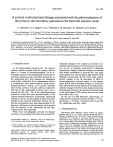 Volume 266, number 1,2, 59-62 FEBS 08505 June 1990 A protein conformational change associated with the photoreduction of the primary and secondary quinones in the bacterial reaction center E. N a b e d r y k 1, K.A. Bagley~'*, D.L. Thibodeau 1, M. Bauscher a, W. M/intele3 and J. Breton t 1Service de Biophysique, C.E.N. Saclay, 91191 Gif-sur- Yvette cedex, France, 2Department o f Physics, University o f California at San Diego, La Jolla, CA 92093, USA a n d alnstitut ffir Biophysik und Strahlenbiologie, Albertstr. 23, 7800 Freiburg, FRG Received 10 April 1990; revised version received 25 April 1990 A comparison is made between the PQA ~ P÷QA- and PQAQB ~ P+QAQB- transitions in Rps. viridis and Rb. sphaeroides reaction centers (RCs) by the use of light-induced Fourier transform infrared (FTIR) difference spectroscopy. In Rb. sphaeroides RCs, we identify a signal at 1650 cm -~ which is present in the P+QA-minus-PQA spectrum and not in the P+QAQB--minus-PQ^QB spectrum. In contrast, this signal is present in both P+QA--minus-PQA and P+QAQB--minus-PQAQB spectra of Rps. viridis RCs. These data are interpreted in terms of a conformational change of the protein backbone near Q^ (possible at the peptide C = O of a conserved alanine residue in the Q^ pocket) and of the different bonding interactions of QB with the protein in the RC of the two species. Fourier transform infrared spectroscopy; Bacterial reaction center; Photosynthesis; Primary quinone; Secondary quinone 1. INTRODUCTION In the photosynthetic bacterial RC, the electron transfer reaction proceeds from the primary electron donor P, a dimer of bacteriochlorophyll, via an intermediate acceptor (a bacteriopheophytin molecule) to a primary quinone QA and a secondary quinone QB. In Rb. sphaeroides RCs, both quinones are ubiquinone while in Rps. viridis RCs, QA is a menaquinone and QB is a ubiquinone. After flash excitation, charge recombination between P+ and Q A - o r P+ and Qa- proceeds faster in Rps. viridis (~1 ms and --100 ms, respectively [1]) than in Rb. sphaeroides (~100 ms and a few s respectively [2]) RCs. The X-ray three-dimensional structures of both RCs have provided details of the cofactor-protein interactions. In particular, amino-acid residues in the QA and QB binding pockets have been identified and structural differences between the QA and Q~ environments have been demonstrated [3-5]. Moreover, differences in the interactions of the protein with the quinones in Rb. sphaeroides [4] and Rps. viridis [5] have been described. While X-ray crystallography provides the detailed structure of an essentially static state of the neutral RC, Correspondence address." E. Nabedryk, Service de Biophysique, C.E.N. Saclay, 91191 Gif-sur-Yvette cedex, France * Present address: Los Alamos National Laboratory, Isotope and Structural Chemistry Group, Los Alamos, NM 87545, USA Abbreviations: FTIR, Fourier transform infrared; QA (QB), primary (secondary) quinone; P, primary electron bacteriochlorophyll; RC, reaction center donor; BChl, molecular changes of the complex at the level of individual chemical groups of the protein and the cofactors can be, in principle, monitored by vibrational spectroscopy. Indeed, molecular changes concomitant with charge stabilization in bacterial RCs and plant photosystems have been probed by light-induced FTIR difference spectroscopy [6-10]. From these studies, specific changes in the IR absorption of BChl or bacteriopheophytin carbonyl groups of the primary donor [6,8,9] and intermediate acceptor [7,8,10] have been characterized and the absence of any large conformational change of the RC protein backbone has been demonstrated. However, the quinone absorption bands in the light-induced FTIR spectra have proven much more elusive [8,11-13]. By the use of FTIR difference spectroscopy, we report here the comparison between the PQA----* P+QAand PQAQB----*P+QAQB- transitions in RCs from both Rb. sphaeroides and Rps. viridis. 2. EXPERIMENTAL Light-induced FTIR difference spectra between the chargeseparated state (P+QA- or P+QAQB-) and the relaxed state (PQA or PQAQa), designated P+QA-/PQA and P+QAQB-/PQAQB spectra, respectively, were obtained as previously described [11]. FTIR measurements were performed under steady-state illumination [6] with a Nicolet 60SX FTIR spectrometer equipped with a MCT-A detector. Excess of ubiquinone was added to isolated RCs. Air-dried films of RCs were rehydrated for FTIR measurements. For all samples, spectra were recorded at 290 K and 100 K. At 100 K, the electron transfer from QA to Qn is known to be blocked [14]. Films were cooled in the dark and then illuminated to produce the chargeseparated state. Interferograms (n = 128) were recorded before and during continuous illumination with saturating actinic light (715 nm Published by Elsevier Science Publishers B. V. (Biomedical Division) 00145793/90/$3.50 © 1990 Federation of European Biochemical Societies 59 Volume 266, number 1,2 FEBS LETTERS < A < 1100 nm). The light intensity necessary to achieve maximal yield of P+QA- in the experiments at 100 K was at least 20 times higher than that used to produce the P+QAQB- state at room temperature, because of the much slower decay time characteristic of P+QAQB-. Each light-minus-dark cycle was repeated several hundred times separated by a dark time sufficient to ensure full return to the ground state. 3. RESULTS June 1990 - - I I ~_ I ~, I ,, V I u e- The P+QA-/PQA and P+QAQB-/PQAQB FTIR difference spectra are shown for Rb. sphaeroides RC in Fig. 1 and for Rps. viridis RC in Fig. 2. In these spectra, negative bands arise from vibrations of the neutral species, i.e., P and QA or QB while positive bands are associated with the radicals, i.e. P÷ and QA- or QB-. In the carbonyl stretching frequency region (1760-1620 cm-1), contributions may be anticipated from BChl, protein (the amide I band), quinone and lipid C = O groups as well as from the O H bending vibration of water. The largest signals ob