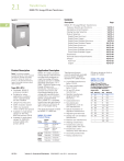 2.1 2 Transformers NEMA TP-1 Energy-Efficient Transformers Contents Type DT-3 Description 2 2 2 2 2 2 2 2 2 2 2 2 2 2 2 2 2 Product Description Application Description Note: The following pages provide listings for most standard transformer ratings and styles. For other ratings or styles not shown, or for special enclosure types (including stainless steel), refer to Eaton. NEMA TP-1-2002 compliant energy-efficient transformers are specifically designed to meet the energy efficiency standards set forth in NEMA Standards publication, TP-12002, “Guide for Determining Energy Efficiency for Distribution Transformers.” Surveys have shown that the average loading of low voltage dry-type distribution transformers, over a 24-hour period, is approximately 35%. NEMA TP-1 compliant transformers are optimized to offer maximum efficiency at 35% of nameplate rating. Types DS-3, DT-3 ● ● 2 2 ● 2 ● 2 ● 2 2 2 Page NEMA TP-1 Energy-Efficient Transformers Features, Benefits and Functions. . . . . . . . . . . Standards and Certifications . . . . . . . . . . . . . . Catalog Number Selection . . . . . . . . . . . . . . . . Product Selection. . . . . . . . . . . . . . . . . . . . . . . Single-Phase Aluminum . . . . . . . . . . . . . . . . Single-Phase Copper . . . . . . . . . . . . . . . . . . . Single-Phase Shielded Aluminum . . . . . . . . . Single-Phase Shielded Copper . . . . . . . . . . . Three-Phase Aluminum . . . . . . . . . . . . . . . . . Three-Phase Copper . . . . . . . . . . . . . . . . . . . Three-Phase Shielded Aluminum . . . . . . . . . Three-Phase Shielded Copper . . . . . . . . . . . . Accessories . . . . . . . . . . . . . . . . . . . . . . . . . . . Technical Data and Specifications . . . . . . . . . . K-Factor . . . . . . . . . . . . . . . . . . . . . . . . . . . . . . Aluminum . . . . . . . . . . . . . . . . . . . . . . . . . . . Copper. . . . . . . . . . . . . . . . . . . . . . . . . . . . . . ● ● Ventilated, NEMA 2 enclosure standard Suitable for indoor applications, outdoors when weathershields are also installed Upright mounting only 220ºC insulation system 150ºC rise standard; 115°C or 80°C rise optional Available in single-phase ratings 15–167 kVA, 600 volts primary (DS-3) Available in three-phase ratings 15–1500 kVA and up to 600 volts primary (DT-3) 2 The range of products covered by NEMA TP-1-2002 are: 2 ● ● ● ● ● ● ● ● NEMA TP-1-2002 Product Range Rating ● Voltage Class Voltage Primary voltage 34.5 kV and below Secondary voltage 600V and below ● Single-phase 10–833 kVA Dry-Type Rating Three-phase 15–2500 kVA 2 Transformers that are currently specifically excluded from the scope of NEMA Standard TP-1-2002 include: Liquid Rating ● ● ● ● ● Liquid-filled transformers below 10 kVA Dry-type transformers below 15 kVA AC and DC drives transformers Rectifier transformers designed for high harmonics Autotransformers Non-distribution transformers, such as UPS transformers Special impedance or regulation transformers Regulating transformers Sealed and non-ventilated transformers Machine tool transformers Welding transformers Transformers with tap ranges greater than 15% Transformers with a frequency other than 60 Hz Grounding transformers Testing transformers Single-phase 10–833 kVA Three-phase 15–2500 kVA 2 2 V2-T2-2 Volume 2—Commercial Distribution CA08100003E—June 2014 www.eaton.com V2-T2-3 V2-T2-3 V2-T2-4 V2-T2-4 V2-T2-4 V2-T2-6 V2-T2-8 V2-T2-10 V2-T2-12 V2-T2-23 V2-T2-34 V2-T2-42 V2-T2-50 V2-T2-50 V2-T2-51 V2-T2-52 V2-T2-57 Efficiency levels set forth in NEMA TP-1-2002. NEMA TP-1-2002 Efficiency Levels Tables of Energy Efficiency NEMA Class 1 Efficiency Levels Dry-Type Distribution Transformers— Low Voltage (600V and below) Single-Phase Three-Phase kVA Efficiency kVA Efficiency 15 97.7 15 97.0 25 97.5 98.0 30 37.5 98.2 45 97.7 50 75 98.0 98.3 75 98.5 112.5 98.2 100 98.6 150 98.3 167 98.7 225 98.5 250 98.8 300 98.6 333 98.9 500 98.7 — — 750 98.8 — — 1000 98.9 Transformers NEMA TP-1 Energy-Efficient Transformers Features, Benefits and Functions ● ● ● ● 60 Hz operation (except as noted) Short-term overload capability as required by ANSI Meet NEMA ST-20 sound levels Meet federal energy efficiency requirements for low voltage dry-type distribution transformers effective as of January 1, 2007 2.1 Standards and Certifications ● 2 2 UL listed 2 2 Industry Standards All Eaton dry-type distribution and control transformers are built and tested in accordance with applicable NEMA, ANSI and IEEE Standards. All 600 volt class transformers are UL listed unless otherwise noted. 2 2 2 2 2 Seismically Qualified Eaton manufactured dry-type distribution transformers are seismically qualified and exceed requirements of the Uniform Building Code (UBC), International Building Code (IBC) and California Code Title 24. 2 2 2 2 2 2 2 2 2 2 2 2 2 2 2 2 2 2 2 2 2 Volume 2—Commercial Distribution CA08100003E—June 2014 www.eaton.com V2-T2-3 2.1 2 Transformers NEMA TP-1 Energy-Efficient Transformers Three-Phase—Type DT-3 60 Hz NEMA TP-1 Energy-Efficient—Aluminum Windings 2 240 Delta Volts to 208Y/120 Volts 2 kVA FCAN FCBN Type ºC Temp. Rise Frame Wiring Diagram Number Weight Lbs (kg) 1 Weathershield Style Number 2 15 2 at +2.5% 4 at –2.5% DT-3 150 912D 280C 206 (94) WS38 V24M28T15EE 2 30 2 at +2.5% 4 at –2.5% DT-3 150 912D 280C 297 (135) WS38 V24M28T30EE 45 2 at +2.5% 4 at –2.5% DT-3 150 912D 280C 332 (151) WS38 V24M28T45EE 2 75 2 at +2.5% 4 at –2.5% DT-3 150 914F 280C 562 (255) WS39 V24M28T75EE 112.5 2 at +2.5% 4 at –2.5% DT-3 150 916A 280C 760 (345) WS19 V24M28T12EE 2 150 2 at +2.5% 4 at –2.5% DT-3 150 916A 280C 974 (442) WS19 V24M28T49EE 225 1 at +5% 2 at –5% DT-3 150 917 289A 1460 (663) WS34 V24R28T22EE 300 1 at +5% 2 at –5% DT-3 150 918A 289A 1652 (750) WS34 V24R28T33EE 500 1 at +5% 2 at –5% DT-3 150 919E 289A 2690 (1221) WS35 V24R28T55EE 2 2 2 Full Capacity Taps 15 2 at +2.5% 4 at –2.5% DT-3 115 912D