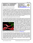 Page 1 of 6 GENETICALLY ENGINEERED ANIMALS: AN OVERVIEW Written by Alison Van Eenennaam Alison Van Eenennaam, PhD Cooperative Extension Specialist University of California Department of Animal Science One Shields Avenue Ph:(530) 752-7942 Davis, CA 95616 Fax:(530) 752-0175 Email: alvaneenennaam@ucdavis.edu Website: http://animalscience.ucdavis.edu/animalbiotech What is a genetically engineered animal? A genetically engineered or “transgenic” animal is an animal that carries a known sequence of recombinant DNA in its cells, and which passes that DNA onto its offspring. Recombinant DNA refers to DNA fragments that have been joined together in a laboratory. The resultant recombinant DNA “construct” is usually designed to express the protein(s) that are encoded by the gene(s) included in the construct, when present in the genome of a transgenic animal. Because the genetic code for all organisms is made up of the same four nucleotide building blocks, this means that a gene makes the same protein whether it is made in an animal, a plant or a microbe. Some examples of proteins that have been expressed in transgenic animals include therapeutic proteins for the treatment of human diseases1-4, proteins that enable animals to better resist disease5-7, and proteins that result in the production of more healthful animal products (milk, eggs or meat) for consumers8,9. Are there any genetically engineered animals on the market? As of August 2008, no genetically engineered food animals had been approved for sale in the United States. Growth-enhanced fish are the transgenic animal application closest to commercialization for food purposes, and several different species are currently going through regulatory review in three different countries. Since 1999, Aqua Bounty (Aqua Bounty Technologies Inc., Waltham, MA) has been seeking U.S. regulatory approval for the commercialization of its growth-enhanced AquAdvantageTM Atlantic salmon. This transgenic salmon is capable of growing faster, but not larger, than standard salmon grown under the same conditions10,11. Transgenic lines of growthenhanced tilapia and carp are also under regulatory review in Cuba and China, respectively12. The only genetically engineered animal to reach the market in the United States is an ornamental fluorescent zebrafish (Danio rerio) called GloFish (Yorktown Technologies, Austin, TX). The U.S. Food and Drug Administration (FDA) determined not to formally regulate GloFish on the basis that tropical zebrafish pose no threat to the food supply, and the fact that there is no evidence that these genetically engineered zebrafish pose any greater threat to the environment than their widely sold unmodified counterparts13. Figure 1. Genetically engineered zebrafish. Picture taken from www.glofish.com One product of genetic engineering that is currently being used in animal agriculture is recombinant bovine somatotropin (rBST) derived from genetically engineered bacteria. This protein, which results in an increase in milk production when administered to lactating cows, is widely used throughout the U.S. dairy industry. rBST was approved by the FDA in 1993 because extensive testing had revealed no concerns regarding the safety of milk derived from cows treated with rBST14. It should be noted that administering this protein does not modify the DNA of the cow, and they do not become genetically engineered. People with diabetes similarly administer themselves with insulin derived from genetically engineered bacteria, and the genetic makeup of these patients is likewise unaltered by the administration of a recombinant protein. Alison Van Eenennaam, UC Davis Genetically Engineered Animals: An overview, August 2008 Page 2 of 6 Why are animals being genetically engineered? Genetic engineering is a useful technology because it enables animals to produce useful novel proteins. Conventional animal breeding is constrained to selection based on naturally-occurring variations in the proteins that are present in a species, and this limits the range and extent of genetic improvement that can be achieved. Genetically-engineered animals are being produced for two distinct applications: human medicine and agriculture. Most commercial transgenic animal research is in the field of human medicine. Many therapeutic proteins for the treatment of human disease require animal-cell specific modifications to be effective, and at the present time they are almost all produced in mammalian cell-based bioreactors. A new cell culture-based manufacturing facility for one therapeutic protein can cost upwards of $US500 million. The manufacturing capacity for therapeutic proteins cannot keep pace with the rapid progress in drug discovery and development, and this has resulted in unmet needs and dramatically rising costs. Genetically engineered animals may provide an important source of these protein drugs in the future because the production of recombinant proteins in the milk, blood or eggs of transgenic animals presents a less-expensive approach to producing therapeutic proteins in animal cells. In 2006, the first human therapeutic protein, Antithrombin III (ATryn®, GTC Biotherapeutics, Framingham, MA), derived from the milk of genetically engineered goats was approved by the European Commission for the treatment of patients with hereditary antithrombin deficiency15,16. Transgenic animals are also being used to produce serum biopharmaceutical products such as antibodies that can be used for the treatment of infections, cancer, organ transplant rejections, and autoimmune diseases such as rheumatoid arthritis17-19. The current production system for such blood products is donated human blood, and this is limiting because of disease concerns (e.g. HIV/AIDS), lack of qualified donors, and regulatory issues. Genetically engineered animals, such as cattle carrying human antibody genes which are able to produce human polyclonal antibodies17, have the potential to provide a ste