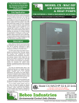 1.5, 2, 2.5, 3, 3.5, 4, 5 & 6 Ton Commercial Grade Wall Mounted Air Conditioners & Heat Pumps MODEL CX -WAC/ HP AIR CONDITIONERS & HEAT PUMPS Unit Application Bebco Model CX-WAC/HP is an electrically powered hazardous location climate control unit designed to cool permanent structures. The units are available in 1.5, 2.0, 2.5, 3.0, 3.5, 4.0, 5.0 and 6.0 tonnages and most units can be factory set, at time of order, to operate on 208/230 VAC single phase, 208/230 VAC three phase or 460 VAC three phase power supplies. The unit is designed to have an external electrical rating approved for Class I, Division 2 / Zone 2, Groups B, C, & D / IIA, IIB hazardous areas. In addition, the unit is available with a choice of two interior electrical ratings. The first interior electrical rating option is designed and approved for buildings classified as nonhazardous locations as a result of Type Z pressurization in accordance with the NEC NFPA 70, Articles 500 & 501 and the NFPA 496. The second interior electrical rating option is rated and approved for Div. 2 / Zone 2, Groups B,C, & D / IIA, IIB hazardous (classified) locations. FOR DIVISION 2 / ZONE 2 HAZARDOUS LOCATIONS ECU Division Technical Bulletin CX-WAC/HP-R2.0 08/12 Description Bebco Model CX-WAC/HP Commercial Grade Air Conditioners are self-contained wall mounted units with all necessary components to supply a room or building with recirculated air that is temperature controlled and humidity limited. The HVAC system features two isolated sections, stacked one atop the other. The lower section, known as the condenser compartment, contains the condenser coil, condenser fan motor, condenser fan and shroud assembly, compressor, and pressure sensors which supply the unit controls with signals to activate and deactivate the compressor and condenser fan. The upper section, known as the evaporator compartment, contains the evaporator coil, optional heater elements, an evaporator blower wheel and motor assembly, electrical controls and a return air filter element. The units are contained within either a 316 14 gauge stainless steel or 20 gauge sheet metal housing that features wall surface mounting flanges, ventilation grills on the condenser compartment, and doorway drip shield flanges. The units are intended for use in outdoor locations and feature a weather resistant paint finish, which can also be refinished with white enamel, but can also be painted any custom color requested. Model CX-WAC/HP units are intended for use in areas where exposure to a severely corrosive atmosphere is considered unlikely or very infrequent. The unit bottom support bracket, return air filter grille, and supply air register are shipped loose in the crate, to complete field installation. In addition, custom supply ducts with registers can be furnished upon request to distribute air evenly to multiple rooms or the entire length of a large single room. I NT ER TEK Model CX-WAC/HP G2 & 22 Units CM C LI S TED US 6 Ton & Div.1 Units Are Not ETL Certified 6 Ton Wall Mount Heat Pumps Are NOT Available 4725 Lawndale La Marque, TX 77568 PHN: (409) 935-5743 FAX: (409) 938-4189 www.okbebco.com Copyright © 2012- Bebco Industries, Incorporated - All Rights Reserved Cross Sectional View Manufacturing Process The unit is then made suitable for either a Nonhazardous or Div. 2 / Zone 2 building interior. For Div. 2 / Zone 2 interiors, the electrical controls and barriers for a Div. 2 / Zone 2 thermostat are installed in a NEMA 7 explosion proof enclosure, along with sealed flex conduit, appropriate seals and an evaporator blower, modified to contain a Div. 2 / Zone 2 UL Listed TENV Motor with hermetically sealed thermal overloads and spark free aluminum fan blades. Finally, For Nonhazardous interiors, all electrical controls are placed in a NEMA 12 enclosure and the original evaporator fan is reinstalled into the unit, along with jacketed wiring systems for component interconnection. The interior of the unit is silicone sealed at every point of body panel attachment and fitted with a special flange and rear door assembly to provide a positive seal against the entrance of flammable gases or vapors. All units are then fully inspected and operationally tested to ensure quality of the final product. Optional Fresh Air Make-up Pressurization Air Sealed Evaporator Compartment Climate Controlled Building or Room Climate Controlled Building or Room Div. 2 Interior Atmosphere Interior Atmosphere Discharge Moving to the condenser compartment, a special wiring enclosure is then fitted to the compressor, and sealed flex conduit and form seven conduit fittings are added to ensure that all high voltage wiring is suitable for a Div. 2 / Zone 2, Group B,C, & D / IIA, IIB Area. Next, the condenser coil motor and fan blade are replaced with a Div. 2 / Zone 2 UL Listed TENV motor with hermetically sealed thermal overloads and an aluminum spark free fan blade. Div. 2 Evaporator Compartment Air Flow Starting with documented instructions and a full inspection and operational test of the unit, Bebco begins the conversion process in the evaporator compartment, where all electrical components and the evaporator fan are carefully removed and stored for later use. All commercial grade fiberglass insulation is then removed from the bottom section of the evaporator compartment, and is replaced with industrial grade foil back insulation. In addition, a solid steel bottom plate with mounting rails are added to seal the compartment and accommodate electrical control enclosure mounting brackets. Return Optional Fresh Air Make-up Pressurization Air Discharge Air Flow Return Barrier Cond. Air flow Cond. Air flow Condenser Compartment Div 2 Condenser Compartment "22" Unit Cut Away View Interior & Exterior Rated Class I, Groups C&D / IIA, IIB, Division 2 / Zone 2 "G2" Unit Cut Away View Interior Rated Non Hazardous Exterior Rated Class I, Groups C&D / IIA, IIB, Division 2 / Zone 2 Operation & Service Initial start-up is acc