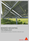 SOLAR SOLUTIONS BONDED MOUNTING TECHNOLOGY DURABLE BONDING OF PV MODULES TO MOUNTING SYSTEMS WITH Sikasil® ADDED VALUE BY BONDING OF MODULES TO MOUNTING SYSTEMS SUITABLE IN PRODUCTION AND ON-SITE NOWADAYS PHOTOVOLTAIC MODULES are typically mounted to the subconstruction by clips, frames and screws or other mechanical devices. This system is not only very labour and time consuming in the field but also in terms of small parts handling. In addition to this, the failure rate in wrong or over-tightened fixing can cause glass breakage or damage in the cells. Furthermore, savings in materials can be achieved by moving from frames to a bonded frameless mounting solution. As the industry is currently striving to reduce costs and improve long-term performance, the bonding of modules to structures in production or on-site is the reasonable way forward. SIKA’S PROVEN TECHNOLOGY and comprehensive project support enable to take advantage of the bonding solution in production and on-site. To achieve optimized processes and output in production while bonding the rails to modules, fast curing two-part silicones show clear benefits. For applications in the field, the ease of use in manual application one-part products show their preference. The most beneficial solution to serve your demands is greatest evaluated in trusted cooperation. KEY SYSTEM BENEFITS Reduced costs in production and installation ́́ Savings in costs of up to 15% compared to common framing and installation systems ́́ Reduced installation time on-site of up to 40% ́́ Savings in backrail material of up to 15% compared to tape solutions ́́ Elimination of electrical grounding ́́ Minimized material handling compared to clamping ́́ Value added by mounting integration, new designs for BIPV and architectural appeal Increased durability and performance ́́ Reduced glass breakage by elimination of stress peaks ́́ Minimized micro cracks on cells due to stress distribution imply higher yield over service life ́́ Elimination of raised edges from frames that trap dirt, snow or water which harm the laminate and reduce the power output ́́ Structurally bonded with an adhesive technology which meets stringent durability requirements ́́ Simplified tolerance compensation of bonded components ELIMINATION OF STRESS PEAKS Illustrations show FEM calculation with a load of 1.8 kN/m². Red colour indicates the highest and dark blue the lowest stresses on the module/glass. Frameless Module Bonded linear fixation Framed Module Fixed with clamps Frameless Module Fixed with clamps BONDING MODULES TO RACKING SYSTEMS ON-SITE RAIL BONDING TO MODULES IN PRODUCTION Best recommended Sika products Best recommended Sika products Sikasil® AS-70 Sikasil® AS-780 Fast curing two-part silicone adhesive with exceptional initial strength, UL 94 HB Sika® Tape FA-22 High performance acrylic tape for pre-fixation Sikasil® AS-785 High strength and fast curing two-part silicone adhesive, meets EOTA ETAG 002, UL 94 V-1 SYSTEM BENEFITS ́́ Simplified manual application ́́ From box-to-racking, no module handling in between ́́ Flexibility in racking systems SYSTEM BENEFITS ́́ Heavy reduction in manual labor ́́ Simplified in-line bonding feasible with existing cycle times ́́ Elimination of pre-fixation means or complex curing zones ́́ Easier quality control in production compared to field ́́ Minimized climatic impact High strength one-part silicone, meets EOTA ETAG 002, UL 94 HB ́́ Homogeneous stress distribution ́́ Reduced stress by up to 60% ́́ Minimizes risk of cracks ́́ Damping of dynamic loads ́́ Less deflection under load by up to 85% 2 SOLAR WATERPROOFING SOLUTION BONDED BASEMENT MOUNTING WATERPROOFING TECHNOLOGY WITH Sikaplan® SHEET MEMBRANES SOLAR WATERPROOFING SOLUTIONS BASEMENT WATERPROOFING WITH BONDED Sikaplan® MOUNTING SHEET MEMBRANES TECHNOLOGY 3 CHOOSING THE RIGHT TECHNOLOGY THE OUTSTANDING PERFORMANCE of silicone adhesive technologies in regard to long term durability has proven itself over decades in the facade, insulating glass and other highly demanding industries. Sikasil® AS-780 combines these qualities with process optimized characteristics for fast assembly and handling, which is limited within common silicones. All this makes it the best choice for your bonded module mounting system. Parameter Tapes Organic adhesives (e.g. PU or MS) Silicones (Sikasil® AS-780) Surface tolerances Limited tolerance compensation. Completely leveled, parallel and smooth surface necessary Good tolerance compensation Good tolerance compensation Pre-treatment of surface Cleaning and often priming needed Cleaning, possibly grinding and priming necessary Mostly only cleaning or activating necessary Automated application Comparatively difficult and high investment costs Easily possible Easily possible Contact pressure Defined high and well distributed joining pressure necessary Low demand on joining pressure and pressure distribution Low demand on joining pressure and pressure distribution Correction on positioning Not possible Possible during processing time. Except when prefixation tapes are used Possible during processing time Curing (strength build-up) Immediate tack (100 % adhesion buildup after several hours) Very fast curing systems available. For inline processing prefixation tapes needed Immediate tack. No pre-fixation means needed UV resistance Limited – good Limited – moderate Excellent Temperature influence on properties High influence. Decrease in mechanical properties under high temperatures High influence. Decrease in mechanical properties under high temperatures Marginal influence. Only minimal impact of temperatures (service temperature -40°C to 150°C) Weathering resistance Limited Limited – moderate Excellent Flame and fire resistance Limited Limited – moderate Excellent SOLAR WATERPROOFING SOLUTIONS BASEMENT WATERPROOFING WITH BONDED Sikaplan® MOUNTING SHEET MEMBRANES TECHNOLOGY 5 KEY CHARACTERISTICS OF Si