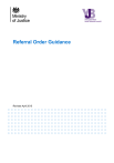 Referral Order Guidance Revised April 2015 Referral Orders and Youth Offender Panels Guidance for the courts, Youth Offending Teams and Youth Offender Panels This information is also available on the Ministry of Justice website: www.Gov.uk © Crown copyright 2015 This publication is licensed under the terms of the Open Government Licence v3.0 except where otherwise stated. To view this licence, visit nationalarchives.gov.uk/doc/open-government-licence/version/3 or write to the Information Policy Team, The National Archives, Kew, London TW9 4DU, or email: psi@nationalarchives.gsi.gov.uk. Where we have identified any third party copyright information you will need to obtain permission from the copyright holders concerned. This publication is available at www.gov.uk/government/publications Any enquiries regarding this publication should be sent to us at simon.emerson1@ justice.gsi.gov.uk Alternative format versions of this report are available on request from 07580 701072 Referral Order Guidance Contents Scope and status 5 Enquiries 6 1. Introduction 7 The legislation 8 The referral process 9 Youth offender panels 2. Bringing agencies and the community together 10 11 Communication with the courts 11 3. Making referral orders in court 12 The availability of referral orders 12 Pre-sentence considerations 12 Pre-sentence reports (PSRs) 12 The compulsory referral order conditions 13 The discretionary referral order conditions 13 Effect of making a referral order on courts’ other sentencing powers 13 Setting the length of orders 14 Ordering parental attendance 14 The format of the referral order 15 Spent convictions under Rehabilitation of Offenders Act 1974 16 4. The role of youth offending teams Introduction 5. Recruiting, training and supporting community panel members 17 17 19 Selection criteria 19 Barriers to involvement 20 Youth justice members 21 Personal involvement 21 The recruitment and selection process – equal opportunities 21 The application form 21 The interview 22 1 Referral Order Guidance The introductory training 22 Withdrawals 22 Community panel member agreement 23 Expenses 23 Ongoing support, supervision and training 23 Termination procedures 24 Complaints procedure 25 6. Engaging victims 26 Restorative Justice 26 Involving victims 26 Contacting victims 26 Supporting victims 27 Corporate victims 28 Financial reparation 28 Young Victims 29 Victim Support 29 7. Assessing offenders Assessing offenders – custody threshold cases 8. Initial panel meetings: agreeing contracts 2 30 30 32 Introduction 32 Deciding attendance 33 Arranging panel meetings 34 Dealing with non-attendance 35 Role of the parent(s) 35 Conduct of panel meetings 36 Agreeing contracts 36 The contents of contracts 36 Reparation 37 Interventions 39 Voluntary activities 40 Contact between the young person and the youth offending team 40 The resources available to youth offender panels 40 Contents of contracts, proportionality and custody threshold cases 40 Referral Order Guidance Agreeing the contract 41 Duration of the contract 41 Failure to agree a contract 41 Health and safety 42 9. Progress meetings 43 Monitoring compliance with contracts 43 Non-compliance/referral back to court 43 Extension of order in interest of justice 46 Varying the contract 46 Revocation of the order in the interests of justice 46 Revocation of the referral order due to change of circumstances 47 10. Further offending 48 11. Final meetings 50 Annex A 51 Annex B 77 Annex C 79 Annex D 85 Annex E 87 Annex F 91 Annex G 97 Annex H 99 Annex I 101 Annex J 103 Annex K 105 Annex L 107 3 Referral Order Guidance 4 Referral Order Guidance Scope and status This statutory guidance is published jointly by the Ministry of Justice and the Youth Justice Board. It replaces the previous guidance published in December 2012. It contains guidance to youth offending teams and community panel members, including guidance on the selection of community panel members and the conduct of youth offender panels. It is also provided to courts for information. 5 Referral Order Guidance Enquiries All enquiries about this guidance should be addressed to: Simon Emerson Youth Justice Policy Unit Ministry of Justice 4th Floor, 102 Petty France London, SW1H 9AJ Tel: 07580 701072 Email: simon.emerson1@justice.gsi.gov.uk Niall MacEntee Creighton Youth Justice Board 102 Petty France London SW1H 9AJ Tel: 020 3334 6083 Email: niall.macenteecreighton@yjb.gsi.gov.uk 6 Referral Order Guidance 1. Introduction This Guidance is primarily for youth offender teams and youth offender panel members and has been revised to take into account legislative changes provided for in the Criminal Justice and Courts Act 2015. The amendments to the Powers of the Criminal Courts (Sentencing) Act 2000 provide greater flexibility and powers for the court when dealing with a breach of a youth offender contract or further offending. Where a restorative justice process has been agreed as part of a Referral Order, the changes will, importantly for victims who want to participate, allow for the process to be completed. It also updates and improves the Guidance in the light of experience of the practical application of referral orders since their introduction nationally in 2002. The referral order is a unique sentence directly involving the local community, by means of the volunteer youth offender panel members, in holding the young offender to account for their actions. Where a young person is before a court charged with a criminal offence for the first time and pleads guilty, the Court must pass (in most cases) a referral order. The young offender if aged under 16 years old is required to attend a youth offender panel with their parents/guardian or local authority representative if under the care of the local authority and may be required to make restitution or reparation to their victim based on a restorative justice approach. The youth offender panel is headed by two volunteers from the local community an