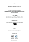 Annex C REVIEW OF SIGNIFICANT TRADE ANALYSIS OF TRADE TRENDS WITH NOTES ON THE CONSERVATION STATUS OF SELECTED SPECIES ANNEX C: REPTILES AND AMPHIBIANS Prepared for the CITES Animals Committee, CITES Secretariat by the United Nations Environment Programme World Conservation Monitoring Centre JANUARY 2004 AC20 Doc. 8.5 – p. 161 Table of Contents 1. 2. 3. 4. 5. 6. 7. 8. 9. 10. 11. 12. 13. 14. 15. 16. 17. 18. Callagur borneoensis...................................................................................................................................163 Geochelone denticulata................................................................................................................................164 Geochelone sulcata ......................................................................................................................................165 Indotestudo elongata ...................................................................................................................................167 Indotestudo forstenii ...................................................................................................................................168 Manouria emys ...........................................................................................................................................169 Testudo horsfieldii .......................................................................................................................................170 Phelsuma comorensis ..................................................................................................................................172 Phelsuma dubia ...........................................................................................................................................173 Phelsuma v-nigra ........................................................................................................................................173 Uromastyx spp. ..........................................................................................................................................174 Bradypodion xenorhinum ...........................................................................................................................178 Chamaeleo bitaeniatus.................................................................................................................................179 Chamaeleo calyptratus ................................................................................................................................180 Chamaeleo cristatus ....................................................................................................................................181 Chamaeleo hoehnelii ....................................................................................................................................182 Furcifer cephalolepis....................................................................................................................................182 Cordylus vittifer..........................................................................................................................................183 AC20 Doc. 8.5 – p. 162 1. Callagur borneoensis REPTILIA: EMYDIDAE COMMON NAME(S): Painted Batagur (English); Painted Terrapin (English); Émyde peinte de Bornéo (French); Galápago pintado (French) CR - A1bcd (Asian Turtle Trade Working Group 2000a) GLOBAL CONSERVATION STATUS DISTRIBUTION AND LOCAL CONSERVATION STATUS Brunei Darussalam ?: Indonesia : Kalimantan, Sumatra: Locally wide spread to rare in Sumatra and Borneo (Kalimantan). Rapidly declining. (Honeggar, 1998). Malaysia : Peninsular Malaysia, Sarawak: The following population estimates have been made for this species: 178 individuals in Terengganu, Malaysia in 1985, 585 in 1990 and 405 in 1995. 160 individuals at Paka-Kerteh, Terengganu, Malaysia in 1990 and 108 in 1995. (Asian Turtle Trade Working Group, 2000a). Individual nesting populations are in general extremely small. Seriously threatened with extinction (Honeggar, 1998). This species is widely distributed, but few large population remain. It is now rarely seen on many rivers where it was once common. On the east coast of Peninsular Malaysia the largest known breeding population is on the Setiu-Chalok and Paka river systems in Terengganu. On the west coast, the largest population exist in Sg. Linggi bordering Negeri Sembilan and Melaka. (WWF Malaysia 2001). Thailand: Listed as Critically Endangered in Thailand (OEPP 1997). Only one population left (Honeggar, 1998). By destroying nesting beaches, sand mining has become one of the most serious factors threatening the survival of tropical Asian turtles. Removal of sand from beaches along Asian rivers to supply construction projects, involving the use of large earth moving equipment, has accelerated over the past two decades. Many rivers are becoming devoid of nesting sites for such sand-nesting chelonians as Batagur baska, Callagur borneoensis, Kachuga spp., Chitra indica, and Pelochelys cantorii. Upriver dams exacerbate the problem by preventing replacement sand from coming downriver while increasing erosion by periodic and unseasonable elevation of water levels. The Kedah River in Malaysia is cited as a case history, exemplifying how the combined effects of sand mining and dams can destroy riverine chelonian populations. Establishment of refuges and zoning of sand mining activities are recommended actions. (Moll, 1997) A recurring pattern is for collection and export operations to become established at a particular location, collecting turtles through an extensive network of trappers, hunters and middlemen. Collection efforts and capture and export volumes increase rapidly, reach a peak and then decline as accessible populations become depleted and collectors need to venture into new, more distant areas. There is also a corresponding decline in the average size of