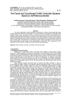 TELKOMNIKA, Vol.12, No.4, December 2014, pp. 787~794 ISSN: 1693-6930, accredited A by DIKTI, Decree No: 58/DIKTI/Kep/2013 DOI: 10.12928/TELKOMNIKA.v12i4.497 787 Pre-Timed and Coordinated Traffic Controller Systems Based on AVR Microcontroller Freddy Kurniawan1, Denny Dermawan1, Okto Dinaryanto2, Mardiana Irawati3 1 Department of Electrical Engineering, Sekolah Tinggi Teknologi Adisutjipto Department of Mechanical Engineering, Sekolah Tinggi Teknologi Adisutjipto 3 Department of Informatics Engineering, Sekolah Tinggi Teknologi Adisutjipto Jln. Janti, Blok R, Kompleks Lanud Adisutjipto, Yogyakarta, Ph. +62-274-451262, Fax. +62-274-451265 *Corresponding author, email: freddykurniawan@stta.ac.id 2 Abstract The major weaknesses of traffic controllers in Indonesia are unable to accommodate the variety of traffic volume and unable to be coordinated. To solve the problem, a pre-timed and coordinated traffic controller system is built. The system consists of a master and a local controller. Each controller has a database containing signal-timing plans. To synchronize the signal-timing, the master controller sends the synchronization data to the local controller wirelessly, and the local controller can modify a cycle length by adding or subtracting the green interval of any phases. The transition time for synchronization only takes one to several cycles. The algorithm for controlling the traffic including coordination can be done by an AVR microcontroller. Memory usage of the microcontroller is lower than 10%, meanwhile the CPU utilization is no more than 1%, and thus the systems could be widely developed. Keywords: traffic controller, pre-timed, coordinated, AVR microcontroller 1. Introduction 1.1 Background of the Problem Traffic jams in most major cities in Indonesia have resulted in losing million rupiahs every hour. Traffic congestion is caused by many factors. One of the factors is the current traffic controller cannot accommodate the variety of traffic volume. Traffic congestion happens usually at the main junctions in the morning, before the office hours (6.00 a.m. to 8.00 a.m.) and in the evening, after the office hours (3.00 p.m. to 5.00 p.m.). Meanwhile, at midnight, sometimes many vehicles have to wait even though there are no others vehicles pass at the intersection. Because the traffic signal remains red for the fixed period, the vehicle should wait until the signal turns to green. Many research studies have been done to improve the traffic controller in order to accommodate the traffic variation. Fazli obtained vehicles classification base on neural networks for an intelligent traffic controller system [1]. Khan and Askerzade implemented an image processing and fuzzy logic control, then sent the result to a microcontroller to drive the traffic signal in the desired manner [2]-[3]. Hongjin Zhu presented a moving vehicle detection and tracking system, which comprising of horizontal edge detection method and auto correlation. The result shows that it is possible to detect each individual vehicle even if the vehicles are overlapping [4]. Although vehicle detection has been improved, there is no guarantee that the process gives the accurate result. To overcome the problem, the traffic controller should have a signal-timing plan that should be used if there is an invalid result from detection progress. The plan can be defined from traffic volume variation. Some research studies have been done to improve vehicle flow at the road network. Xie presented a schedule-driven coordination for real-time traffic network [5], and Shamshirband presented an improvement of control ability by using a neural network Q-learning approach as on Game Theory [6]. Lei Wu presented a bee inspired zonal vehicle routing algorithm to provide a reasonable and effective optimal route for the Dynamic Route Guidance System [7]. According to Dotoli, one of the effective methods to improve traffic flow in the network is to synchronize the traffic signals at all intersections especially at adjacent intersections [8]. The objective of the coordinating is to provide continuous flow of traffic along streets or highways. The Manual on Uniform Traffic Control Device (MUTCD) also recommends that traffic signals within 800 meters must be coordinated under a common cycle length. Other reasons to Received August 18, 2014; Revised October 8, 2014; Accepted October 25, 2014 788 ISSN: 1693-6930 establish coordination are when the intersections are in close proximity to one another and traffic volumes between them are large. Coordinated traffic controller can permit continuous movement along an arterial or throughout a network of major streets with minimum stops and delays. By minimizing the amount of acceleration and breaking, the air pollutant emitted by the vehicle will be reduced [9]. It can be seen from the previous research that the benefits of coordination depend on the uniformity of traffic flow. However, in the scenario that the flow is not uniform, some improvements can be done in the future [10]. The modern traffic controller system generally is based on 32-bit processor and coordinated by computer systems that act as a server [11]. Meanwhile, present traffic controllers in Indonesia are based on MCS-51 8-bit microcontroller. It is difficult to build the system on the last microcontroller due to the limitation of CPU speed and memory space. The complexity of the algorithm for coordinating traffic controllers could not be done by a MCS-51 microcontroller. Several research studies have been introduced to meet the traffic characteristic in Indonesia. Primantary presented a coordination of the traffic signal model [12] and Jatmiko presented the architecture of decentralized self-organizing traffic control in real situation even on non-structure intersection like in Jakarta [13]. However, it is found no studies about the coordinated signal concerned with the traffic controller system in Indonesia that is based on microcontroll