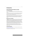 Introduction Cisco Product Quick Reference Guide For companies of all sizes Welcome to the February 2009 edition of the Cisco Product Quick Reference Guide. This guide presents an overview of Cisco products, services, and solutions for every part of your business. This portable and easy-to-use reference tool, summarizes information about many of Cisco's products and services sold through our channel partners. Inside the guide, you will find a wealth of current information, including brief overviews, important features, technical specifications, part numbers, and ordering information. This guide is designed to help our partners, resellers, distributors, and sales account teams quickly learn about and sell Cisco products, services and solutions that are right for their customers. It’s also ideal for end users, networking professionals, Cisco Networking Academy members, and those studying for Cisco certification who need a broad, high- level overview. What’s New in This Edition Now you can find products even quicker by using the new built-in tabs. Also, you can easily find *NEW* Cisco products in the At a Glance section of each chapter. These new products include, but are not limited to: Cisco WebEx meeting applications, the Cisco CRS-1 Carrier Routing System, the Cisco Catalyst 2975 Series Switch, the Cisco Aironet 1140 Series Access Point, the Cisco Adaptive Wireless Intrusion Prevention System, the Cisco Unified Workspace, the Cisco Unified Messaging Gateway, Cisco Physical Security products, the Cisco Nexus 2000 and Nexus 1000v Series Switches, the Cisco TelePresence System 500 and TelePresence System 3200, the Cisco MXE 3000 Media Experience Engine, Cisco ONS 15310-MA SDH Platform, Cisco Video Surveillance cameras, and much more. In addition, services information by technology has expanded and is included in each chapter. Cisco and our authorized partners offer services to help you with initial planning and design for new technology deployments, as well as protecting and extending your existing investments. For More Information For questions or to register in the Cisco Product Quick Reference Guide Document Center, visit http://www.cisco.com/go/guide. When you register in the Document Center, you will have access to PDF and HTML versions of the guide that you can download at no charge. i ii Contents Cisco’s Integrated Networks Approach to Business Solutions ................................................................................... ix Cisco Capital Financing................................................................................................................................................................................. ix Product Warranty Information.................................................................................................................................................................... x Partner and Customer Support .............................................................................................................................................................. xi Helpful Cisco Websites ................................................................................................................................................................................ xii Routing..................................................................................................................... 1-1 Routing At a Glance........................................................................................................................................................................................ 1-1 Cisco Routers Port Matrix ......................................................................................................................................................................... 1-3 Memory Information for Routers ......................................................................................................................................................... 1-5 Cisco 3800 Series Integrated Services Routers................................................................................................................... 1-6 Cisco 3200 Series Rugged Integrated Services Routers............................................................................................. 1-8 Cisco 2800 Series Integrated Services Routers................................................................................................................1-10 Cisco 1800 Series Integrated Services Routers................................................................................................................1-14 Cisco 800 Series Routers ......................................................................................................................................................................1-20 Cisco 7000 Series Port Adapter Compatibility Matrix ..................................................................................................1-21 Cisco 7600 Series Routers ...................................................................................................................................................................1-23 Cisco 7300 Series Routers ...................................................................................................................................................................1-25 Cisco 7200 Series Routers ...................................................................................................................................................................1-27 Cisco ASR 1000 Series Aggregation Services Router.................................................................................................1-28 Cisco XR 12000 and 12000 Series Routers...........................................................................................................................1-30 Cisco CRS-1 Carrier Routing System ............................................................