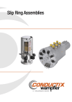 Slip Ring Assemblies Contents General 5 Electrical Data................................................................................................................................................................................................................................ 5 Example of a Combined Slip Ring Assembly...................................................................................................................................................................................... 6 A Developed and Comprehensive Standard Program......................................................................................................................................................................... 7 Modular Slip Rings 8 CER 50-70-90-91 ......................................................................................................................................................................................................................... 8 CEQ 70-90-91-130-131-190-191 ................................................................................................................................................................................................. 9 CEP 70-90 .................................................................................................................................................................................................................................. 10 CEP/SB ....................................................................................................................................................................................................................................... 11 MME 35-50 ................................................................................................................................................................................................................................. 12 MCS 35-50 ................................................................................................................................................................................................................................. 13 MINOR ........................................................................................................................................................................................................................................ 14 CGR 200-270 .............................................................................................................................................................................................................................. 15 Fixed Size Slip Rings 16 CEPE ........................................................................................................................................................................................................................................... 16 CEPE/5 ....................................................................................................................................................................................................................................... 17 CEE ............................................................................................................................................................................................................................................. 18 ATEX Slip Rings 19 ARIETE Ex d IIB T5 II 2G ATEX ....................................................................................................................................................................................................... 19 STAR 0, STAR 1, STAR 2, STAR 3 Ex d I I M2 ATEX.......................................................................................................................................................................... 20 SXD SERIES – ATEX – II 2D Ex tD A21 IP65 T 80 °C ................................................................................................................................................................. 21 Slip Rings for Data Transmission 22 ETH/F-ETH/G ............................................................................................................................................................................................................................... 22 IndEth 100/IndEth 1000 ............................................................................................................................................................................................................... 23 Fiber Optic Rotary Joints (FORJ) 24 Fiber Optic Rotary Joints .............................................................................................................................................................................................................. 24 Custom-built Slip Rings 26 Custom-built Slip Rings for Power and Data Transmission ............................................................................................................................................................... 26 Questionnaire 30 3 4 General Electrical Data Conductix-Wampfler – an experienced partner Conductix-Wampfler offers a wide range of rotary transmissions for energy, data and signal transmission, as well as for the transmission of gases and fluids. The standard program provides Slip Ring Assemblies for power and data/signal currents with any number of poles. Combinations that include additional rotary transmissions for liquids (water, hydraulic oil, oil, etc.) and gases (compressed air, argon, etc.) are possible. Slip Ring Assemblies can be either supplied as components that can be built into the host machine and adjusted to the customers’ requirements or with a housing of impact resistant plastic or steel. Data transmission • Transmission of analog and digital signals is used in several industrial applications as well as in many other areas • Communication ri