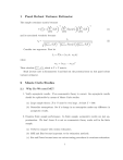 1 Panel Robust Variance Estimator The sample covariance matrix becomes ! N X ~ 0X ~ V ^b = X i i=1 1 N X ~ 0u ~i X ^0i X i ^i u i=1 ! N X i=1 ~ 0X ~ X i ! 1 (1) and its associated t-statistic becomes t^b = r ^b PN ~0 ~ i=1 Xi X Consider two regressors: First let 1 PN ~ 0 ^i u ~i ^0i X i=1 Xi u PN ~0 ~ i=1 Xi X 1 (2) = Xi0 u ^i = [x1;i u ^i x2;i u ^i ] i where xk;i = (xk;i1 ; :::; xk;iT )0 Then calculate PN 0 i=1 i i which is T T matrix. Read Lecture note in Econometric I and …nd out the potential issue on this panel robust variance estimator. 2 Monte Carlo Studies 2.1 Why Do We need MC? 1. Verify asymptotic results. If an econometric theory is correct, the asymptotic results should be replicatable by means of Monte Carlo studies. (a) Large sample theory: T/ or N must be very large. At least T = 500: (b) Generalize assumptions. See if a change in an assumption makes any di¤erence in asymptotic results. 2. Examine …nite sample performance. In …nite sample, asymptotic results are just approximation. We don’t know if or not an econometric theory works well in the …nite sample. (a) Useful to compare with various estimators. (b) MSE and Bias become important to the estimation methods. (c) Size and Power become issues on various testing procedures & covariance estimation. 1 2.2 How to do MC 1. Need a data generating process (DGP), and distributional assumption. (a) DGP depends on an econometric theory and its assumptions. (b) Need to generate pseudo random variables from a certain distribution 2.2.1 Example 1: Verifying asymptotic result of OLSE DGP: Model: yi = a + xi + ui Now we take a particular case like ui where a = iidN (0; 1) ; xi iidN (0; Ik ) = 0: Step by Step procedure 1. Find out the parameters of interest. (here we are interested in consistency of OLSE) 2. Generate n pseudo random variables of u; x and y: Since a = 3. Calculate OLSE for = 0; yi = ui : and a: (plus the estimates of parameters of interest) 4. Repeat 2 and 3 S times. record all ^ : 5. calculate mean of ^ and variance of them. (how do we know the convergence rate?) 6. Repeat 2-5 by changing n: 2.2.2 Example 2: Verifying asymptotic result of OLSE Testing DGP: Model: yi = a + xi + ui Now we take a particular case like ui where a = iidN (0; 1) ; xi = 0: 2 iidN (0; Ik ) Step by Step procedure 1. Find out the parameters of interest. (t statistic) 2. Generate n pseudo random variables of u; x and y: And calculate t ratio for and a: 3. Repeat 2 and 3 S times. record all t ^ : 4. Sort t ^ and …nd out the lower and upper 2.5% values. Compare them with the asymptotic critical value. 5. Repeat 2-4 by changing n: 2.2.3 Exercise 1: Use NW estimator and calculate t ratio. Compare the size and power of the tests (ordinary and NW t-ratios) Asymptotic theory: Both of them are consistent. The ordinary t ratio becomes more e¢ cient. Why? Size of the test Change step 4 in Example 2 as follows: Let t t = ^ sort t . Find when tj > 1:96: And 1 Power of the test Change j =S becomes the size of the test. = 0:01; 0:05; 0:1; 0:2: Repeat the above procedures, and …nd 1 2.2.4 j =S: This becomes the power of the test. Exercise 2: Re-do Bertrand et al. 3 3 Review Asymptotic Theory 3.1 Most Basic Theory yi = xi + ui where iid 0; 2u Pn xi ui + Pi=1 n 2 = i=1 xi ui ^= 1 0 + xx First let 0 xu= n n 1X 1X xi ui = n n i=1 Hence we have i i=1 n p 1X n n !d N ! N i 2 0; 2 d i=1 or + 0; n n n 1 Pn i=1 xi ui n 1 Pn 2 i=1 xi n ! ! n 1 X p n i i=1 Next, !d N 0; 2 n plimn!1 1X 2 xi = Qx ; let say. n i=1 Then ^ or p 3.2 n ^ = p1 n 1 n = Addition Constant term Pn 1 Pn i=1 xi ui n 1 Pn 2 i=1 xi n i=1 xi ui 2 i=1 xi Pn !d N 0; Qx 1 2 Qx 1 yi = a + xi + ui where xi = ax + xoi ; ui ^= 0 + x ~x ~ 1 0 x ~u ~= yi = ay + yio : iid 0; 2u Pn x ~i u ~i + Pi=1 = n ~2i i=1 x 4 + 1 Pn ~i u ~i i=1 x n 1 Pn ~2i i=1 x n First let n 1X x ~i u ~i = n i=1 = = n 1X xi n i=1 n 1X o o xi ui n 1 n i=1 n X i + Op i=1 n 1X xi n i=1 ! n 1X ui n ui i=1 1X o xi n ! 1X o ui n 1 n n = 1X o o xi ui n i=1 n 1X = n i + Op i=1 1 X o xi n2 1 p n Hence we have n p 1X ~ n i n = i=1 n p 1X n n i+ i=1 ! d 0; n N Next, 2 n ! n 1X o xi n + Op 1 p n p 1X o ui n = N 0; 2 n plimn!1 1X 2 x ~i = Qx ; let say. n i=1 Then p n ^ = p1 n 1 n Pn ~i u ~i i=1 x ~2i i=1 x Pn 5 !d N 0; Qx 1 2 Qx 1 : : Op X 1 p n uoi 4 Power of the Test (Local Alternative Approach) Consider the model yi = xi + ui and under the null hypothesis, we have = o Now we want to analyze the power of the test asymptotically. Under the alternative, we have = o +c where c 6= 0: Suppose that we are interested in comparing two estimates, let say OLSE and FGLSE ( ^ 1 and ^ ). Then we have 2 p n ^1 r V ^1 or p n ^1 r V ^1 o !d N (0; 1) + Op N !d N (0; 1) + p 1=2 nc + Op N 1=2 Hence as long as c 6= 0; the power of the test goes to one. In other words, the dominant term p becomes the second term ( nc) Similary, we have p n ^2 r V ^2 o !d N (0; 1) + p nc + Op N 1=2 Hence we can’t compare two tests. Now, to avoid this, let = so that ! o c +p n as n ! 1: Then we have p ^ n r !d N (c; 1) + Op N V ^ 1=2 : Hence depending on the value of c; we can compare the power of the test (across di¤erent estimates). 6 5 Panel Regression 5.1 Regression Types 1. Pooled OLS estimator (POLS) yit = a + xit + zit + uit 2. Least squares dummy variables (LSDV) or Withing group (WG) or Fixed e¤ects (FE) estimator yit = ai + xit + zit + uit 3. Random E¤ect (RE) or PFGLS estimator yit = a + xit + zit + eit ; eit = ai a + uit Let X = (x11 ; x12 ; :::; x1T ; x21 ; :::; xN T )0 ; xi = (xi1 ; :::; xiT )0 ; xt = (x1t ; :::; xN t )0 : De…ne Z; zi and zt in the similar way. Let W = (X Z)0 : Then 5.2 Covariance estimators: 1. Ordinary estimator: ^ 2u (W 0 W ) 1 2. White estimator (a) Cross sectional heteroskedasticity: N T (W 0 W ) (b) Time series heteroskedasticity: N T (W 0 W ) 1 (c) Cross and Time heteroskedasticity: N T (W 0 W ) 3. Panel Robust Covariane estimator: N (W 0 W ) 1 4. LRV estimator ? Why not? 5.3 1 N 1 1 T 1 N Pn ^ 2i wi0 wi i=1 u PT ^ 2t wt0 wt t=1 u 1