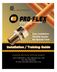 Patented System #5,845,946, #5,857,716 & #6,102,445 and other patents pending MAKING INSTALLATION EASY AT EVERY TURN Easy Installation Flexible Design No Special Tools Customer Service & Technical Support 1-877-798-6291 or 765-798-6137 Ext. 310 Fax 765-798-6139 ProFlexTech@ProFlexCSST.com 248008 17498_TF_Cover Ver 2.indd 2 5/24/13 1:08 PM PRO-FLEX® CSST Training Guide and Installation Manual TABLE OF CONTENTS 1.0 INTRODUCTION Guidelines Limitations of Manual .....................................................................................1, 2 Applicable Codes & Standards ...............................................................................................3 2.0 DESCRIPTION OF SYSTEM AND COMPONENTS System Components .......................................................................................................4, 5, 6 (Tubing, Fittings, Striker Plates, Pressure Regulators, Manifolds, Shut-off Valves, Other Components) 3.0 SYSTEM CONFIGURATIONS System Configurations............................................................................................................7 Series Layout & Parallel Layout (low pressure).....................................................................8 Dual Pressure Layout ..............................................................................................................8 Multiple Manifold Systems & Combination Steel/CSST System, Elevated Pressure System....9 Determine Pressure System ..................................................................................................10 3.2 SIZING METHODS & EXAMPLES Low Pressure System (longest length method) (example #1)............................................11 Medium Pressure System (example #2) ...............................................................................12 Elevated Dual Pressure System (example #3)......................................................................13 Combination Steel / CSST System.........................................................................................14 4.0 INSTALLATION PRACTICES / GUIDELINES General Installation Guidelines......................................................................................15, 16 Minimum Bend Radius .........................................................................................................15 Support ..................................................................................................................................15 4.2 FITTING ASSEMBLY Assembly and Re-assembly Procedures ...............................................................................17 Tubing Cutting / End Preparation........................................................................................17 Minimum Tightening Torque ...............................................................................................18 Termination Outlet Configurations .....................................................................................18 4.3 ROUTING Vertical Runs..........................................................................................................................19 Horizontal Runs.....................................................................................................................19 Indoor / Outdoor Issues ........................................................................................................19 Clearance Holes & Notching.................................................................................................20 Concealed Locations for Fittings..........................................................................................21 4.4 PROTECTION Striker Plate Requirements.............................................................................................22, 23 Spiral Metal Hose Requirements ...................................................................................22, 23 Outdoor Installations......................................................................................................22, 23 Metal Wall Studs Installation ...............................................................................................23 i 248008 17498_TF_TrainingG.indd 3 6/12/13 12:16 PM 4.5 CONNECTIONS Meter Hook-ups ..............................................................................................................24, 25 Fixed Appliance.....................................................................................................................26 Moveable Appliance .............................................................................................................26 Pad Mounted Appliance.......................................................................................................26 Gas Fireplace Installations ....................................................................................................27 Fire Rated Construction through Plenums and Installations within a chase....................27 Electrical Bonding ...........................................................................................................28, 29 BBQ Gas Grill – Stationary....................................................................................................30 BBQ Gas Grill – Moveable ....................................................................................................30 Gas Lamps..............................................................................................................................30 Ceiling or Wall Hung Infrared Heaters................................................................................30 CSST Buried Under Concrete Slab........................................................................................31 CSST Embedded in Concrete Slab ........................................................................................31 Supporting of Conduit Embedded in Reinforced Slab............................................