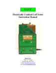 ECCT TM Electrically Cranked Coil Tester Instruction Manual Mictel LLC 244N. 17th Street Kenilworth, NJ 07033 e-mail: mictel@comcast.net web: www.modeltetimer.com Model T Electronically Cranked Coil Tester ECCT Contents The ECCT contains the following items: Quantity Description 1 ECCT 1 ECCT AC/DC Power Supply: 12V, 8A 1 3ft. Magneto Test Cable 1 3ft. USB A to USB Mini-A/B PC Interface Cable * Model T Coil Not Included V11 ©2016 Mictel LLC e-mail: mictel@comcast.net 2 www.modeltecct.com Model T Electronically Cranked Coil Tester IMPORTANT! –It is the user’s responsibility to verify proper ignition timing and ensure proper timing lever position before attempting to hand crank Model T engine. Failure to verify proper ignition timing may result in serious personal injury. Ignition coils produce high voltages capable of causing personal injury or death. Do NOT touch coil electrical contacts or points when coil testing is in progress. User assumes all risks and liabilities. IMPORTANT!: Make sure there is no source of combustible fluid or gas anywhere near the ECCT or coil under test that could be ignited by electrical spark. Shock Hazard: Do NOT touch coil unit electrical contacts, coil points or coil Test Fixture Spark gap when coil test or multi-spark testing is in progress. Do NOT operate the ECCT with clear protective safety shield covering the spark gap removed. User assumes all risks and liabilities. 1 ECCT Description 1.1 Coil Tester and Alignment Tool The Electronically Cranked Coil Tester (ECCT) is used to test and align Ford and K-W Model T coil units used on 1913 to 1927 model years. It is a unique electronic instrument capable of aligning coil points with ease and precision previously unachievable with previous tools. The ECCT permits point adjustment by coil dwell time to fire so that each coil can be precisely adjusted to minimize coil to coil (cylinder to cylinder) ignition timing variation for optimal engine performance. 1.2 Capacitor (Condenser) Tester The ECCT can test the Model T coil internal capacitor (condenser) for proper value as well as leakage to ensure proper spark and maximum point life. 1.3 Magneto Tester The optional magneto test function enables the ECCT to test the strength of the Model T magneto output to ensure proper coil operation. 1.4 Advanced Features Software Numerical and graphical display of ECCT coil, capacitor and magneto test data is can be provided with the optional Advanced Features Software. Additional test capability is also provided including: 1. 2. 3. 4. Display the coil inductance, coil firing current, spark energy and coil dwell time to fire Ability to change the number of coil firings in Multi-Spark mode (2 to 250 firings) Ability to change the coil firing rate in the Multi-Spark mode (375 to 5000 RPM) Display engine RPM, Magneto RMS voltage and Magneto internal resistance in Magneto Test mode. V11 ©2016 Mictel LLC e-mail: mictel@comcast.net 3 www.modeltecct.com Model T Electronically Cranked Coil Tester 2 Test Modes and Results Display This section describes the ECCT test modes and how to read test results on the ECCT display. 6. Coil Timing Error Scale 8. Magneto Test Scale 7. Capacitor Value Scale 5. Test Results 3. Test Functions 2. Function Select Button (Power – On/Off) 4. Test Button 9. Magneto Test Input 1. Power, 12VDC Input 10. USB Input Figure 1 - ECCT Display and Buttons 2.1 ECCT Button and Display Description 2.1.1 Power Input Supplies 12VDC power to the ECCT 2.1.2 Select Button (Power) The Select button is used to turn ECCT power on/off and to select which test to run. Press and hold this button for 5 seconds to turn the ECCT On. Press this button momentary to select test function. Press and hold the select button for 5 seconds to turn the ECCT power Off. Note: Magneto Test Mode cannot be selected unless that optional test mode has been licensed. 2.1.3 Function Display The selected test function is indicated by illuminated Red LED V11 ©2016 Mictel LLC e-mail: mictel@comcast.net 4 www.modeltecct.com Model T Electronically Cranked Coil Tester 2.1.4 Test Button The Test button is used to start the selected test. Press and release the test button to run the selected test. 2.1.5 Test Result Test results are categorized as Poor, Good and Excellent and indicated by illuminated LED display. 2.1.6 Timing Error Display The LED display is used to indicate the coil dwell time to fire. That is; how long it takes the coil to fire spark measured from the time the test button is released. The dwell time to fire is displayed in crank shaft degrees assuming the engine is turning at 1,000 RPM. Coil points should be adjusted for 0 Timing Error (Center LED) which is considered ideal and indicated by the Excellent LED being lit. Coil points that fire within +/-1 degree of 0deg is considered acceptable and indicated by the Good LED being lit. 2.1.7 Capacitance Display This display is used to indicate the value of the capacitor (Condenser) internally connected across the point terminals. The scale is calibrated in microfarads (uF) with standard values indicated. The proper value of capacitor connected across the coil points is 0.47uF. 2.1.8 Magneto Test Result Display (optional feature) The strength of the magneto output is indicated by on the LED display upon completion of the magneto test. The regions marked 1914 and 1915 correspond to the magneto field strength measured by the St. Louis Magneto Tester. The magneto output is considered good if the reading reaches or exceeds the 1914 range. Few if any magnetos of later model years were capable of higher output. The 1915 range was included for consistency with the well known St. Louis Magneto Tester. 2.1.9 Magneto Test Input Input port for magneto test leads. One lead is connected to the magneto output post, the other lead is connected to engine ground (NOT chassis ground!). 2.1.10 USB Connector The ECCT can be connected to a PC or laptop via standard USB-mini A/B to USB-A data connector. O