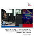 Technical Support, Software License and Maintenance Terms for Enterprise 911 Products and Services Version 2016.05.10 Contents 1. Introduction........................................................................................................................................ 1 2. Technical Support ............................................................................................................................. 1 2.1. What is included ........................................................................................................................ 1 2.2. What is excluded ....................................................................................................................... 1 2.3. How to reach West .................................................................................................................... 2 2.4. Severity Levels and Escalation Guidelines ............................................................................... 2 2.5. Customer Responsibilities ......................................................................................................... 3 2.6. West Responsibilities ................................................................................................................ 4 3. Software License Terms ................................................................................................................... 4 4. Software and Hardware Maintenance ............................................................................................... 5 5. 4.1. Fees and Term .......................................................................................................................... 5 4.2. End of Life (“EOL”) Policy ......................................................................................................... 5 4.3. Changes to EOL Support Policy ............................................................................................... 6 Glossary ............................................................................................................................................ 6 © 2016 West Corporation. All rights reserved. EOE/AA Employer TECHNICAL SUPPORT AND MAINTENANCE TERMS 1. Introduction This document describes the services available to customers of West’s enterprise (business) 911 products and services (“Customers”), including Emergency Routing Services (“ERS”) and Emergency TM Gateway (“EGW”), Phone Discovery Manager, and Desk Alert software (“Software”). It also includes applicable license terms for the Software. For ERS, technical support is included as part of the subscription. For all other products, support and maintenance service is included for the first year after delivery, and is available for purchase thereafter, payable annually in advance. 2. Technical Support 2.1. What is included 24x7x365 telephone, web, and email support Access to online support at support.911enable.com, which allows Customer to submit tickets, receive software updates, release information, and updated product documentation. Customer must register to obtain a user name and password in order to access the extranet services. Product use guidelines and available configurations Resolution of software defects, usage and configuration Documentation irregularities Customer-owned West hardware fault diagnosis and resolution Note: With the exception of hardware faults, all work is performed remotely, according to Customer’s security requirements. 2.2. What is excluded The following are not covered by technical support services. However many of the services can be purchase through a Professional Services Order: Page 1 Configuration change request requiring validation retesting or redesign; for example: provisioning a new IP address to connect to the ERS account, changing the IP address of the EGW, or provisioning additional PBX in the EGW Incidents traced back to faulty third party components (firewalls, switches, softswitch, NNI circuits, not managed by West for either physical (hardware) or logical (configuration) reasons Problems and/or errors related to Customer failure to back up data Software or hardware not officially supported, validated or approved as specified in the applicable West product documentation Software which is no longer covered under the West EOL Policy (see Section 4.2 below). In addition, West may require Customer to upgrade to a more recent Release to receive support services (patches and documentation) if the Release is older than 12 months Repair any issue or support any product that: (a) has been altered, except by West or a West designated representative or in accordance with West’s written instructions, (b) has not been installed, configured, operated, repaired, or maintained in accordance with West’s instructions, (c) has been subjected to abnormal physical or electrical stress, misuse, negligence or accident, including damage to hardware components from spills, drops, power surge, or improper voltage selection on system’s power supply, (d) has been operated outside of the environmental specifications for the product, or (e) when such malfunction, damage or other problem is caused by use with software or hardware that is not recommended by West or that does not conform to the system requirements or specifications made available by West Other exclusions described in the relevant service description and West’s terms and conditions © 2016 West Corporation. All rights reserved. EOE/AA Employer TECHNICAL SUPPORT AND MAINTENANCE TERMS 2.3. How to reach West Customers can obtain support from West through telephone, web, and email support for any West product for which Customer is entitled to support services. Support can be obtained 24/7 for all emergency issues by phone and five days per week, 9:00 am‐6:00 pm EST for all other issues and enquiries. Email support@911enable.com Phone 888 908‐4168 Web (Support Portal) http://support.911enable