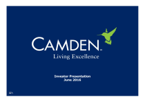 In addition to historical information, this presentation contains forward-looking statements under the federal securities law. These statements are based on current expectations, estimates and projections about the industry and markets in which Camden (the “Company”) operates, management's beliefs, and assumptions made by management. Forwardlooking statements are not guarantees of future performance and involve certain risks and uncertainties which are difficult to predict. Factors which may cause the Company’s actual results or performance to differ materially from those contemplated by forward-looking statements are described under the heading “Risk Factors” in Camden’s Annual Report on Form 10-K and in other filings with the Securities and Exchange Commission (SEC). Forward-looking statements made in this presentation represent management’s opinions as of the date of this presentation, and the Company assumes no obligation to update or supplement these statements because of subsequent events.