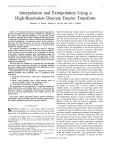 IEEE TRANSACTIONS ON SIGNAL PROCESSING, VOL. 46, NO. 1, JANUARY 1998 31 Interpolation and Extrapolation Using a High-Resolution Discrete Fourier Transform Mauricio D. Sacchi, Tadeusz J. Ulrych, and Colin J. Walker Abstract—We present an iterative nonparametric approach to spectral estimation that is particularly suitable for estimation of line spectra. This approach minimizes a cost function derived from Bayes’ theorem. The method is suitable for line spectra since a “long tailed” distribution is used to model the prior distribution of spectral amplitudes. An important aspect of this method is that since the data themselves are used as constraints, phase information can also be recovered and used to extend the data outside the original window. The objective function is formulated in terms of hyperparameters that control the degree of fit and spectral resolution. Noise rejection can also be achieved by truncating the number of iterations. Spectral resolution and extrapolation length are controlled by a single parameter. When this parameter is large compared with the spectral powers, the algorithm leads to zero extrapolation of the data, and the estimated Fourier transform yields the periodogram. When the data are sampled at a constant rate, the algorithm uses one Levinson recursion per iteration. For irregular sampling (unevenly sampled and/or gapped data), the algorithm uses one Cholesky decomposition per iteration. The performance of the algorithm is illustrated with three different problems that frequently arise in geophysical data processing: 1) harmonic retrieval from a time series contaminated with noise; 2) linear event detection from a finite aperture array of receivers [which, in fact, is an extension of 1)], 3) interpolation/extrapolation of gapped data. The performance of the algorithm as a spectral estimator is tested with the Kay and Marple data set. It is shown that the achieved resolution is comparable with parametric methods but with more accurate representation of the relative power in the spectral lines. Index Terms—Bayes procedures, discrete Fourier transforms, interpolation, inverse problems, iterative methods, signal restoration, signal sampling/reconstruction, spectral analysis. I. INTRODUCTION S PECTRAL analysis is a very active field of research. Possible applications are extremely diverse and have been particularly well detailed in an excellent review by Kay and Manuscript received April 7, 1995; revised February 18, 1997. This work was supported by an NSERC grant to T. J. Ulrych. The associate editor coordinating the review of this paper and approving it for publication was Dr. Farokh Marvasti. M. D. Sacchi was with the Department of Earth and Ocean Sciences, The University of British Columbia, Vancouver, B.C., Canada V6T 1Z4. He is now with the Department of Physics, Abadh Bhatia Physics Laboratory, University of Alberta, Edmonton, Alta., Canada T6G 2J1. T. J. Ulrych is with the Department of Earth and Ocean Sciences, University of British Columbia, Vancouver, B.C., Canada V6T 1Z4. C. J. Walker is a private consultant in Vancouver, B.C., Canada V6K 1T1. Publisher Item Identifier S 1053-587X(98)00529-7. Marple [4]. Basically, spectral analysis is an underdetermined, linear inverse problem. The goal is to determine a spectral estimate from the infinite number of estimates that are consistent with the data that represent, in general, a few samples of the autocorrelation function. Most of the techniques that have been proposed depend on the use of some particular norm that imposes a particular feature on the spectral estimate. In a similar fashion, the computation of the Fourier transform in a manner consistent with a given set of discrete observations can also be regarded as a linear inverse problem [9]. We show that Fourier transform estimation by inversion with prior information is quite similar to a bandlimited signal extrapolation problem. Different algorithms that achieve this objective have been devised [1], [10]. The underlying basis of these algorithms can be summarized as the minimization of a frequency weighted norm subject to data constraints. The weights are chosen to incorporate some a priori knowledge of the bandwidth and shape of the spectrum of the signal target. A byproduct of the algorithm is the Fourier transform of the extended time series and, therefore, a high-resolution spectral estimate as well. The technique is also used to reconstruct a signal from a set of nonuniform samples. The algorithm computes the discrete Fourier transform (DFT) from the nonuniform sampled signal, and finally, an inverse DFT is used to obtain an evenly sampled signal. An algorithm for recovering signals from nonuniform samples has been proposed by Marvasti et al. [7], [8]. This algorithm recovers a bandlimited signal by iteratively applying bandlimiting and nonuniform sampling operators. The bandlimiting operator is used to constrain the signal to have a preassigned spectral support. Our technique is quite different in that we model the signal by assigning a prior distribution to the spectral samples of the DFT. The paper is organized as follows. In Section II, we present an inverse procedure to compute the DFT. The inverse problem is regularized using two different criteria. First, we propose a zero-order quadratic regularization (damped least-squares) [5] that is derived from Bayes’ theorem, assuming the DFT and the observational errors can be modeled with a Gaussian distribution. This regularization leads to the well-known formulas for the DFT and its inverse, which is equivalent to assuming that the original times series has been padded with zeros. Oldenburg [9] reached the same conclusion by minimizing the first Dirichlet criterion of the Backus and Gilbert formalism. In our second approach, we use the Cauchy distribution to model the samples of the DFT. This regularization leads to an iterative nonparametric procedure to estimate the DFT. 1053–58