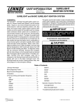 Service Literature SURELIGHT IGNITION SYSTEM Corp. 9710−L7 Revised 9−2003 SURELIGHT and BASIC SURELIGHT IGNITION SYSTEM I−GENERAL The SureLight and Basic SureLight ignition system con sists of a Lennox control board (figure1) and hot surface ignitor . Figures 2 and 3 show the general location of the control board in multi and downflow position units. See table 2 for furnace model / igntion system matchup. Both models are similar except the SureLight board has a desig nated continuous blower speed and is protected by a circuit breaker located on the control box. Terminal desig nations are shown in table 3. The Basic SureLight board will energize HEAT−H heating speed for continuous blower and the control circuit is protected by an on board fuse. On both models the board and ignitor work in combination to ensure furnace ignition and ignitor durability. Both models control all major furnace operations. Tables 4 and 5 (Sur elight) and tables 6 and 7 (Basic Surelight) show jack plug terminal designations. Both boards also feature two LED lights for trouble shooting (see table 1 for diagnostic codes) and two accessory terminals. Terminal ACC energizes with the indoor blower on the SureLight board and terminal EAC−H energizes with the indoor blower on the Basic Sur elight. Terminal HTG ACC energizes when CAI is energized on the SureLight board and terminal HUM−N en ergizes with CAI on the Basic SureLight board. The SureLight board has a built in heating isolation relay. See wiring diagram for heat anticipator settings. The ignitor used for both models is made of durable silicon− nitride. Ignitor longevity is also enhanced by controlling the temperature of the ignitor. The board finds the lowest ignitor temperature which will successfully light the burner, thus in creasing the life of the ignitor. IMPORTANT Ignition control will not operate unless unit is properly grounded. 120V supply must be installed with correct polarity. ELECTROSTATIC DISCHARGE (ESD) Precautions and Procedures CAUTION Electrostatic discharge can affect electronic components. Take precautions during furnace installation and service to protect the furnace’s electronic controls. Precautions will help to avoid control exposure to electrostatic dis charge by putting the furnace, the control and the technician at the same electrostatic poten tial. Neutralize electrostatic charge by touching hand and all tools on an unpainted unit surface, such as the gas valve or blower deck, before per forming any service procedure. Table of Contents I General Information . . . . . . . . . . . . . . . . . . . . . . . . . 1 80UHG . . . . . . . . . . . . . . . . . . . . . . . . . . . . . . . . . . . 15 Board Diagnostic Codes . . . . . . . . . . . . . . . . . . . . . . . 2 90UGF . . . . . . . . . . . . . . . . . . . . . . . . . . . . . . . . . . . 16 Board Terminal Designations . . . . . . . . . . . . . . . . . . . 3 G27M . . . . . . . . . . . . . . . . . . . . . . . . . . . . . . . . . . . . 17 II Operation . . . . . . . . . . . . . . . . . . . . . . . . . . . . . . . . . . 6 G32 . . . . . . . . . . . . . . . . . . . . . . . . . . . . . . . . . . . . . 18 III Furnace Wiring and Operation Sequence . . . . . . 8 G32V . . . . . . . . . . . . . . . . . . . . . . . . . . . . . . . . . . . . 19 G23 . . . . . . . . . . . . . . . . . . . . . . . . . . . . . . . . . . . . . 8 GHR32 . . . . . . . . . . . . . . . . . . . . . . . . . . . . . . . . . . . 20 80MGF . . . . . . . . . . . . . . . . . . . . . . . . . . . . . . . . . . . 9 G26 . . . . . . . . . . . . . . . . . . . . . . . . . . . . . . . . . . . . . 10 GHR32V . . . . . . . . . . . . . . . . . . . . . . . . . . . . . . . . . 21 GHR26 . . . . . . . . . . . . . . . . . . . . . . . . . . . . . . . . . . . 11 Operation Sequence Flow Chart . . . . . . . . . . . . . . . . 23 G24M . . . . . . . . . . . . . . . . . . . . . . . . . . . . . . . . . . . . 12 SureLight Board . . . . . . . . . . . . . . . . . . . . . . . . . . . 23 G40UH . . . . . . . . . . . . . . . . . . . . . . . . . . . . . . . . . . . 13 Basic SureLight Board . . . . . . . . . . . . . . . . . . . . . . 28 G50UH . . . . . . . . . . . . . . . . . . . . . . . . . . . . . . . . . . . 14 Troubleshooting Guide (both models) . . . . . . . . . . . 32 Page 1 1999 Lennox Industries Inc. SURELIGHT INTEGRATED CONTROL BOARD BASIC SURELIGHT INTEGRATED CONTROL BOARD J156 XFMR−N J58 BOARD # 12L6901 and 56L8401 BOARD # 63K8901, 24L8501, 56L8301 and 97L4801 FIGURE 1 Both model boards are equipped with two LED lights for troubleshooting. The diagnostic codes are listed below in table 1. TABLE 1 DIAGNOSTIC CODES MAKE SURE TO ID LED’S CORRECTLY: REFER TO INSTALLATION INSTRUCTIONS FOR CONTROL BOARD LAYOUT. LED #1 LED #2 DESCRIPTION SIMULTANEOUS SLOW FLASH SIMULTANEOUS SLOW FLASH Power − Normal operation Also signaled during cooling and continuous fan. SIMULTANEOUS FAST FLASH SIMULTANEOUS FAST FLASH Normal operation − signaled when heating demand initiated at thermostat. SLOW FLASH ON OFF SLOW FLASH ALTERNATING SLOW FLASH ALTERNATING SLOW FLASH SLOW FLASH OFF ON SLOW FLASH ON ON OFF ON OFF ON FAST FLASH SLOW FLASH SLOW FLASH FAST FLASH ALTERNATING FAST FLASH ALTERNATING FAST FLASH Primary or Secondary limit open. Units with board 63K8901 or 24L8501 (Sur eLight) and units with board 12L6901 (Basic SureLight): Limit must close within 5 trials for ignition or board goes into one hour limit Watchguard. Units with board 56L8301, 97L48 (SureLight) and 56L8401 and 10M9301 (Basic SureLight): Limit must close within 3 minutes or board goes into one hour limit Watchguard. Pressure switch open or has opened 5 times during a single call for heat; OR: Blocked inlet/exhaust vent; OR: Condensate line blocked; OR: Pressure switch closed prior to activation of combustion air blower. Watchguard − burners fail to ignite. Flame sensed without gas valve energized. Rollout switch open. OR: 9 pin (SureLight) or 12 pin (Basic SureLight) connector improperly attac
