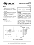 ZL30406 SONET/SDH Clock Multiplier PLL Data Sheet Features July 2011 • Meets jitter requirements of Telcordia GR-253CORE for OC-48, OC-12, and OC-3 rates • Meets jitter requirements of ITU-T G.813 for STM16, STM-4 and STM-1 rates Ordering Information • Provides four LVPECL differential output clocks at 77.76 MHz • Provides a CML differential clock programmable to 19.44 MHz, 38.88 MHz, 77.76 MHz and 155.52 MHz • Provides a single-ended CMOS clock at 19.44 MHz • Provides enable/disable control of output clocks • Accepts a CMOS reference at 19.44 MHz • 3.3 V supply ZL30406QGG1 SONET/SDH line cards • Network Element timing cards Trays, Bake & Drypack *Pb Free Matte Tin -40C to +85C Description The ZL30406 is an analog phase-locked loop (APLL) designed to provide rate conversion and jitter attenuation for SDH (Synchronous Digital Hierarchy) and SONET (Synchronous Optical Network) networking equipment. The ZL30406 generates very low jitter clocks that meet the jitter requirements of Telcordia GR-253-CORE OC-48, OC-12, OC-3, OC-1 rates and ITU-T G.813 STM-16, STM-4 and STM-1 rates. Applications • 64 Pin TQFP* The ZL30406 accepts a CMOS compatible reference at 19.44 MHz and generates four LVPECL differential output clocks at 77.76 MHz, a CML differential clock programmable to 19.44 MHz, 38.88 MHz, 77.76 MHz and 155.52 MHz and a single-ended CMOS clock at 19.44 MHz. The output clocks can be individually enabled or disabled. C77oEN-A C77oEN-B OC-CLKoEN LPF C77o ,C155o C19o, C38o, CML-P/N outputs OC-CLKoP/N C19i Frequency & Phase Detector Loop Filter Output VCO Interface Circuit C77oP/N-A C77oP/N-B C77oP/N-C 19.44MHz C77oP/N-D BIAS Reference & Bias circuit VDD GND C19o VCC FS1-2 C19oEN C77oEN-C C77oEN-D 15 Figure 1 - Functional Block Diagram 1 Zarlink Semiconductor Inc. Zarlink, ZL and the Zarlink Semiconductor logo are trademarks of Zarlink Semiconductor Inc. Copyright 2003-2011, Zarlink Semiconductor Inc. All Rights Reserved. ZL30406 GND C77oN-A C77oP-A VCC GND C77oP-B C77oN-B VCC GND C77oN-C C77oP-C VCC GND C77oP-D C77oN-D VCC Data Sheet GND VCC1 VCC OC-CLKoN OC-CLKoP GND VCC2 LPF GND GND BIAS OC-CLKoEN C77oEN-A C77oEN-B C77oEN-C C77oEN-D 64 62 60 58 56 54 52 50 GND VCC VDD GND VCC GND VDD GND NC GND GND NC GND C19o VDD GND 48 2 65 - EP_GND 46 4 44 6 42 8 ZL30406 40 10 38 12 36 14 34 16 20 22 24 26 28 30 32 GND VDD NC NC NC VDD IC FS2 FS1 C19oEN GND C19i VDD GND NC GND 18 Figure 2 - TQFP 64 pin (Top View) Change Summary The following table captures the changes from the July 2011 issue. Page 1 Item Ordering Information Change The ZL30406QGC has been obsoleted and replaced by the ZL30406QGG1. The following table captures the changes from the February 2005 issue. Page 1 Item Change Updated Ordering Information. 2 Zarlink Semiconductor Inc. ZL30406 Data Sheet Pin Description Pin Description Table Pin # Name Description 1 GND Ground. 0 volt. 2 VCC1 Positive Analog Power Supply. +3.3 V ±10% 3 VCC Positive Analog Power Supply. +3.3 V ±10% 4 5 OC-CLKoN OC-CLKoP 6 GND Ground. 0 volt 7 VCC2 Positive Analog Power Supply. +3.3 V ±10% SONET/SDH Clock (CML Output). These outputs provide a programmable differential CML clock at 19.44 MHz, 38.88 MHz, 77.76 MHz and 155.52 MHz. The output frequency is selected with FS2 and FS1 pins. LPF Low Pass Filter (Analog). Connect to this pin external RC network (RF and CF) for the low pass filter. 9 GND Ground. 0 volt 10 GND Ground. 0 volt 11 BIAS Bias. See Figure 11 for the recommended bias circuit. 12 OC-CLKoEN SONET/SDH Clock Enable (CMOS Input). If tied high this control pin enables the OC-CLKoP/N differential driver. Pulling this input low disables the output clock without deactivating differential drivers. C77oEN-A C77 Clock Output Enable A (CMOS Input). If tied high this control pin enables the C77oP/N-A output clock. Pulling this input low disables the output clock without deactivating differential drivers. C77oEN-B C77 Clock Output Enable B (CMOS Input). If tied high this control pin enables the C77oP/N-B output clock. Pulling this input low disables the output clock without deactivating differential drivers. C77oEN-C C77 Clock Output Enable C (CMOS Input). If tied high this control pin enables the C77oP/N-C output clock. Pulling this input low disables the output clock without deactivating differential drivers. C77oEN-D C77 Clock Output Enable D (CMOS Input). If tied high this control pin enables the C77oP/N-D output clock. Pulling this input low disables the output clock without deactivating differential drivers. 8 13 14 15 16 17 GND Ground. 0 volt 18 VDD Positive Digital Power Supply. +3.3 V ±10% 19 NC No internal bonding Connection. Leave unconnected. 20 NC No internal bonding Connection. Leave unconnected. 21 NC No internal bonding Connection. Leave unconnected. 22 VDD Positive Digital Power Supply. +3.3 V ±10% 3 Zarlink Semiconductor Inc. ZL30406 Data Sheet Pin Description Table (continued) Pin # Name Description 23 IC 24 25 FS2 FS1 26 C19oEN 27 GND Ground. 0 volt 28 C19i C19 Reference Input (CMOS Input). This pin is a single-ended input reference source used for synchronization. This pin accepts 19.44 MHz. 29 VDD Positive Digital Power Supply. +3.3 V ±10% 30 GND Ground. 0 volt 31 NC 32 GND Ground. 0 volt. 33 GND Ground. 0 volt 34 VDD Positive Digital Power Supply. +3.3 V ±10% 35 C19o C19 Clock Output (CMOS Output). This pin provides a single-ended CMOS clock at 19.44 MHz. 36 GND Ground. 0 volt 37 NC 38 GND Ground. 0 volt 39 GND Ground. 0 volt 40 NC 41 GND Ground. 0 volt 42 VDD Positive Digital Power Supply. +3.3 V ±10% 43 GND Ground. 0 volt 44 VCC Positive Analog Power Supply. +3.3 V ±10% 45 GND Ground. 0 volt 46 VDD Positive Digital Power Supply. +3.3 V ±10% 47 VCC Positive Analog Power Supply. +3.3 V ±10% 48 GND Ground. 0 volt 49 VCC Positive Analog Power Supply. +3.3 V ±10%. Internal Connection. Connect this pin to Ground (GND). Frequency Select 2-1 (CMOS Input). These inputs program the clock frequency on the OC-CLKo outp