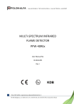 MULTI-SPECTRUM INFRARED FLAME DETECTOR PPW-40REx User Manual No. IK-E326-001 Rev. I 2 IK-E326-001 TABLE OF CONTENTS 1 1.1 1.2 1.4 2 3 4 4.1 4.2 4.3 4.4 5 6 6.1 6.2 6.3 6.4 6.5 6.6 7 8 9 9.1 9.2 10 11 11.1 11.2 11.3 11.4 12 13 14 14.1 14.2 15 15.1 15.2 15.3 STATEMENT OF CONFORMITY ................................................................................................... 4 EU Directives and Harmonized Standards ............................................................................. 4 Certificate............................................................................................................................... 5 Notes ...................................................................................................................................... 6 INTENDED USE............................................................................................................................ 7 MARKING .................................................................................................................................... 7 SAFETY PRECAUTIONS ................................................................................................................ 9 Maintenance and reparis ....................................................................................................... 9 Work at height ....................................................................................................................... 9 Protection of eyes from dust ............................................................................................... 10 Refurbishment works ........................................................................................................... 10 CONSTRUCTION........................................................................................................................ 11 DESCRIPTION OF OPERATION .................................................................................................. 13 Output signals ...................................................................................................................... 13 Status indication .................................................................................................................. 14 Self-testing feature .............................................................................................................. 14 Communication .................................................................................................................... 15 Recording of events ............................................................................................................. 15 Terminal strip ....................................................................................................................... 15 INSTALLATION .......................................................................................................................... 15 COMPATIBILITY WITH FIRE ALARM CONTROL PANELS AND CONTROL SYSTEMS .................... 16 CABLING REQUIREMENTS ........................................................................................................ 21 Cable types and sizes ........................................................................................................... 22 Protection from moisture .................................................................................................... 22 CONNECTION............................................................................................................................ 23 MAINTENANCE ......................................................................................................................... 24 Fire alarm test feature ......................................................................................................... 24 Cleaning of windows ............................................................................................................ 24 Cleaning the reflector .......................................................................................................... 24 Battery.................................................................................................................................. 24 TECHNICAL DATA ...................................................................................................................... 25 REPAIRING AND RETURNING ................................................................................................... 26 ORDERING SPECIFICATION ....................................................................................................... 26 ACCESSORIES ........................................................................................................................ 26 REPLACEMENT PARTS .......................................................................................................... 26 ATTACHMENT A........................................................................................................................ 27 RESPONSE PARAMETERS ..................................................................................................... 27 IMMUNITY TO FALSE ALARM ............................................................................................... 27 CONE OF VISION................................................................................................................... 28 IK-E326-001 3 LIST OF DRAWINGS Fig. 1 Rating plate ..........................................................................................................................................7 Fig. 2 Flameproof housing of PPW-40REx, location of flameproof connections ....................................... 11 Fig. 3. Dimensioned drawing of PPW-40REx .............................................................................................. 12 Fig. 4 Detector fixed using mounting bracket ............................................................................................ 12