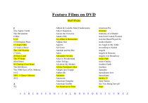Feature Films on DVD Staff Picks Abbott & Costello Meet Frankenstein Above Suspicion Across the Universe Adam's Rib An Affair to Remember Afghan Star Aguirre Air Force Akeelah and the Bee Akira Alexander Nevsky Alice in Wonderland Alien Trilogy All about My Mother All the President's Men Allegro non Troppo Alphaville Amadeus Amarcord American Gangster American Graffiti An American in Paris # 4 by Agnes Varda The 5th Quarter 8 Mile 8 1/2 10 Rillington Place 12 Angry Men 12 Years a Slave The 13th Warrior 17 Girls 28 Days Later The 39 Steps 42nd Street 84 Charing Cross Road The 400 Blows The 1000 Eyes of Dr. Mabuse 1612 2001: A Space Odyssey 2012 A A.I. # A B C D E F G H I J K L M N O P American Pie Amistad Anatomy of a Murder And God Created Woman And the Band Played On Andrei Rublev An Angel at My Table According to Andrei Angela Angels & Demons Angels over Broadway Annie Hall Annie Oakley Another Earth Ansiktet Aparajito Apocalypse now Apocalypto Apollo 13 Apur Sansar Are You Being Served? Argo Q R S T U V W Y Z Armee des Ombres Arsenic and Old Lace Ascenseur Pour L'echafaud Ashes and Diamonds Aspen Au Revoir les Enfants Australia Awakenings Away from Her Batman Beyond The Battleship Potemkin Bear with Me The Beast with Five Fingers Beat the Devil Beau Geste A Beautiful Mind Becket Becoming Jane Behind the Mask Being John Malkovich Believe in Me Belle de Jour The Belly of an Architect Bend it Like Beckham Ben-Hur A Better Life Beowulf The Best Years of Our Lives Bewitched Beyond Christmas Beyond the Grave The Bicycle Thief The Big Chill The Big Clock The Big Heat The Big Sleep The Big Street B The Bachelor and the Bobby Soxer Bachelor Mother Back to the Future Bad Day at Black Rock Bad Grandpa The Bad Lieutenant The Bad Sleep Well Badlands Ball of Fire Bamboozled Barking Water Barn Red The Barretts of Wimpole Street Barry Lyndon Basic instinct Batman Batman Begins # A B C D E F G H I J K L M N The Bigamist Bird of Paradise The Birdcage The Birds The Birth of a Nation The Bishop's Wife Black Fox Black Hawk Down Black Moon Black Narcissus The Black Pirate Black Robe The Black Stallion Black Swan Black Tights Blackboard Jungle Blackmail Blade Runner The Blair Witch Project Bleak House The Blind Side Blithe Spirit Blonde Venus Blood and Sand Blood Will Out Blowup The Blue Angel The Blue Dahlia O P Q R S T U V W Y Z The Blue Gardenia Blue Murder Body and Soul Body Heat Bonnie and Clyde The Book of Eli Boom Town Born Yesterday Borrowed Hearts Boudu Saved from Drowning Bounce The Bourne Supremacy The Bourne Ultimatum The Boy in the Striped Pajamas Boys Don't Cry Brave Bread and Chocolate Breakfast at Tiffany's The Breakfast Club Bridge to Terabithia Brief Encounter Bright Star Bringing out the Dead Brokeback Mountain The Brother from Another Planet The Brothers Grimm The Browning Version Buffalo Girls # A B C D E Bull Durham Bulldog Drummond Escapes Bullitt Burke & Hare The Burmese Harp The Burning Bed Bury My Heart at Wounded Knee Bus Stop Butch Cassidy and the Sundance Kid Caught Centennial Champion Changeling Charlie and the Chocolate Factory Charlie Chan in Black Magic Charlie Chan in the Scarlet Clue Charlie Chan in Paris Charlie Chan in the Secret Service Charlie Chan in the Shanghai Cobra Charlie St. Cloud A Child is Waiting The Children's Hour Chinatown Chocolat A Christmas Carol Christmas in Connecticut Christmas in Wonderland The Christmas Shoes Christmas Snow A Christmas Story A Christmas Visitor The Christmas Wife A Christmas Wish A Christmas without Snow The Chronicles of Narnia A Civil Action The Circus C Cabaret Cabin in the Sky The Cabinet of Dr. Caligari Cabiria The Caine Mutiny The Cameraman Capote Carnal Knowledge Carol for Another Christmas Cars Casablanca Casualties of War A Cat in Paris The Cat in the Hat Cat People Catch Me If You Can Catch-22 F G H I J K L M N O P Q R S T U V W Y Z Citizen Kane City Lights City of Hope The Civilization of Maxwell Bright A Clockwork Orange Cleopatra Cloak and Dagger Close Encounters of the Third Kind Closely Watched Trains The Clouded Yellow Cloudy with a Chance of Meatballs Cloverfield The Company Conduct Unbecoming The Conformist Congo The Conjuring The Constant Gardener Contact Contraband Conversation Piece Cool Hand Luke Coraline The Corner The Corrupter The Court-Martial of Billy Mitchell Cowboy Bebop Crash # A B C D E F Cries and Whispers Crimes and Misdemeanors Criss Cross Cross of Iron The Crowd Cry Danger Cry from the Mountain The Crying Game The Curious Case of Benjamin Button The Curse of the Were-Rabbit Dark Portals Das Schreckliche Madchen David Copperfield Dawn of the Dead A Day at the Races A Day in October The Day the Earth Stood Still Days of Heaven Dazed and Confused The Dead Dead of Night Dead Poets Society Dead Reckoning Death Proof Death's Shadow Deceived The Deep The Deer Hunter The Defiant Ones Deliverance The Departed The Descendants Despicable Me Despicable Me 2 Destry Rides Again Detective Dee and the Mystery of the Phantom Flame Devi D The Da Vinci Code Daffy Duck, the Nuttiness Continues Daffy Duck's Thanks-For-Giving Special Dakota Skye Dames The Damned Dance Me Outside Dances with Wolves Dangerous Dangerous Minds The Dark Angel The Dark Knight Dark Journey The Dark Mirror Dark Passage G H I J K L M N O P Q R S T U V W Y Z The Devil and Daniel Webster The Devil and Miss Jones The Devil Wears Prada Diabolique Dial M for Murder Diary of a Lost Girl Diary of a Wimpy Kid Dick Tracy Dickens of London Die Ehe der Maria Braun Die Nibelungen Diggers Dinner at Eight The Director's Cut Dirty Dancing Dirty Dancing 2 Disappearances Diva Do the Right Thing Dog Day Afternoon Dogfight A Doll's House Dona Flor and Her Two Husbands Don't Look Now Double Indemnity Doubt The Double Life of Veronique Down and out in Beverly Hills # A B C D E Downhill Racer The Dove Dr. Mabuse, the Gambler Dr. No Dr. Strangelove The Draughtsman's Contract Dream House Drums Along the Mohawk Duel in the Sun Dumbo End of the Spear Enemy Enough Eterna