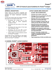 PowerXR ANP-32 Practical Layout Guidelines for PowerXR Designs October 2012 Rev. 1.1.0 GENERAL DESCRIPTION LAYOUT GUIDELINES CHECKLIST XR o DO NOT USE AUTOROUTING o Minimize the switch node area o Minimize the area enclosed by the ON and OFF power path loops o Minimizing the surface area of the switch node to avoid capacitive coupling of noise Minimize the area enclosed by the gate drive current path loops o Keep the feedback routing clear of noise sources like the switch node • Minimizing the loop areas of the gate drives o • Minimizing the loop areas of the boot strap charging circuits Keep the power ground planes isolated except for connections to system ground at output capacitor o MOSFETs and inductors need to be coupled to enough copper to dissipate the heat generated Proper layout of the Power controller and nearby components follows all traditional best practices of power electronics converter designs. In short this means that the guiding principles discussed next will deal heavily with: • • Minimizing the ON and OFF current loops of the synchronous buck circuit. • Proper design of ground planes around the PowerXR controller. Finally there will be a discussion on the proper hookup of the remaining digital and analog pins on the PowerXR controller. o o PowerXR controller needs to be coupled to enough exposed ground copper to dissipate the heat generated Tight bypassing of VDD and GPIO pins 3-CHANNEL POWERXR LAYOUT EXAMPLE Top Layer of a Final XRP7713 Based Layout Exar Corporation 48720 Kato Road, Fremont CA 94538, USA www.exar.com Tel. +1 510 668-7000 – Fax. +1 510 668-7001 PowerXR ANP-32 Practical Layout Guidelines for PowerXR Designs SYNCHRONOUS BUCK FUNCTION Figure #1 – Synchronous Buck Topology The synchronous buck regulator is comprised of two circuits formed by the closing of one or the other of a high and low side MOSFET. The high side MOSFET is the main switch and when being driven will create the circuit hereafter referred to as the ON state. The low side MOSFET is the circuit element that provides a path for the inductor current when the high side MOSFET turns off. Being a synchronous converter this element is a MOSFET. Nonsynchronous converters merely use a diode. From here on the circuit created by this MOSFET being driven will be referred to as the OFF state. LAYOUT GUIDELINES IN DEPTH LAYOUT GUIDELINE #1 – MINIMIZE THE SWITCH NODE The switch node is the net connecting Q_HIGH, Q_LOW, and L together. This net has a high dV/dt. The concern around a high dV/dt net is that it can capacitive couple its square wave signal onto conductors that pass above, below, or laterally (if close enough). Capacitive coupling is directly related to surface area so the bigger the node the more pronounced the effect. The trade off to just making the node as small as possible is that Q_LOW is going to be generating heat and the drain of Q_LOW is the path conducting the heat away from Q_LOW. Therefore there is a balance between making the net large enough to dissipate heat and small enough to not radiate too much noise. Calculations can be made to determine the amount of heat to be dissipated by Q_LOW to help with this determination. To get assistance in this regard please refer to [the PowerXR Power Optimizer and/or Power Architect] the PowerXR datasheet section on MOSFET component selection or seek the help of your regional PowerXR FAE. Obviously the best design is going to be a tradeoff between surface area and noise requirements. Figures 2 and 3 are a couple of examples of layouts that successfully satisfy the necessary balance. © 2012 Exar Corporation 2/15 Rev. 1.1.0 PowerXR ANP-32 Practical Layout Guidelines for PowerXR Designs Figure #2 – Top Layer Design for Dual FET Figure #3 – Top Layer Design for Single FET The last point to consider is the need for multilayer boards to avoid routing anything directly below the switch node or the associated inductor. The only acceptable components to place underneath the inductor and/or switch node are the MOSFETs themselves. Ground planes covering the whole board that are interleaved with the switch node actually can have a beneficial effect in that they turn the switch node from a monopole noise source to a bi-pole noise source. Most often the switch node is mirrored on every layer and tied via stitching vias. This is done to help with adding thermal mass and spreading heat to the surface on the back of the board for better thermal dissipation. The need for this and the degree of application are tied to the amount of heat to be removed. Below are some images demonstrating these techniques. Figure #4 – Multiple layers showing the mirrored Switch Node and via stitching to spread heat Note that these switch nodes are not immediately next to other switch nodes, any critical DC signal, or the controller. When doing component floor planning keep in mind that even the best designs can cause noise if a critical signal is placed next to the switch node. If possible get these along the edge of the board away from everything else. Otherwise don’t put any critical signals right next to them. © 2012 Exar Corporation 3/15 Rev. 1.1.0 PowerXR ANP-32 Practical Layout Guidelines for PowerXR Designs LAYOUT GUIDELINE #2 – MINIMIZE THE POWER PATH CURRENT LOOPS The second way to generate electromagnetic noise in a switch mode power supply besides capacitive coupling is driving a magnetic field with a large current loop. Current traveling through components will complete the circuit through a return path. This complete circuit will radiate a magnetic field in proportion to the area enclosed by the loop and the strength of the current travelling the loop at a right angle to the plane of the loop. Obviously in a switch mode power supply these loops are of most concern with the power components. There are however also loops formed by the gate drives, bootstrap circuits, and controller. There will be more on these later. Figure #6 – Gerber of