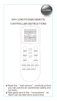 AIR-CONDITIONER REMOTE CONTROLLER INSTRUCTIONS AUTO COOL DRY HEAT FAN SPEED STRONG HIGH MID LOW AUTO TIMER C F SET h ROOM ONOFF OFF SWING SWING2 ON SLEEP CLEAN HEALTH FRESH ELE.H FUNGUSPROOF SCREEN LOCK MODE ON/OFF S ET SPEED TIMER SWING SWING2 STRONG FEELING CLEAN HEALTH SLEEP SCREEN FUNGUSPROOF Read this “instructions” carefully so that you can use the air-conditioner safely and correctly. ● Take good care of the “instructions” so that it can be referred to at any time. ● CONTENTS Buttons description----------------------------------------- 1 Usage--------------------------------------------------------- 5 Fix batteries ---------------------------------------------- 5 Automatic operation mode------------------------------ 5 Cooling/Heating operation mode---------------------- 5 Fan operation mode-------------------------------------- 6 Drying operation mode---------------------------------- 6 Attention ----------------------------------------------------- 7 Buttons description AUTO COOL DRY HEAT FAN SPEED STRONG HIGH MID LOW AUTO TIMER C F SET h ROOM ONOFF OFF SWING SWING2 ON SLEEP CLEAN HEALTH FRESH ELE.H FUNGUSPROOF SCREEN LOCK RUNNING MODE DISPLAY SPEED DISPLAY TEMPERATURE, TIME DISPLAY ETC SWING OR ON/OFF DISPLAY FEATURES DISPLAY 8 10 1 MODE ON/OFF SET 2 6 SPEED TIMER SWING SWING2 12 4 5 3 9 13 STRONG FEELING CLEAN HEALTH 11 SLEEP SCREEN FUNGUSPROOF 7 14 Note: All the figures above are the displays after being initially electrified or re-electrified after power off. In actual operations, the remote controller screen displays related items only. The cooling only units don't have the function of heating or electric heating. When the remote controller turns to such function buttons, the units will not result such effect. *Please don't turn the remote controller to such buttons. Note: The picture is general remote controller, contains almost all of the function buttons. They may be slightly different from material abject(depend on model). 1.“ON/OFF” button You can start or stop the air-conditioner by pressing this button. 2.“SPEED” button You can select fan speed as the following: Low Auto Mid High 3.“SWING2”button Press this button, the vertical wind direction vanes can rotate automatically, when you have the desired horizontal wind direction, press it again, the vertical wind direction vanes will be stopped at the situation of your choice. 4.“FEELING” button When it displays “FEELING” button: Press this button can be used to set the feeling function. The LCD shows the actual room temperature when the function set and it shows the setting temperature when the function cancelled. This function is invalid when the appliance at the Fan mode. 5.“STRONG” button Only under the state of cooling or heating mode, press this button, the fan speed is adjusted to strong auto-maticlly and the LCD displays “high fan”, the “strong” function is started to reach the highest cooling or heating. 6.“TIMER” button Setting the “ON” timer time: a. When remote controller is at off state, press “TIMER” button, the LCD displays “TIMER ON” and the timer time, the range of setting time△ is 0.5h to 24h. b. You can press the “△ ” or“ ”button to adjust the timer time, each touch will be set time to increase or reduce 0.5h before 10 hours ago, after ten hours will be set time to increase or reduce 1h per pressing, to enables your required timer. c. Press “TIMER”button again, to set the timer on function. d. You can set another function to insure the suitable state after air conditioner turn on (including mode, temperature, swing, fan speed and etc). The LCD will displays all your setting and keep it, when the timer reach to the set time, the air conditioner will be working according to your set automatically. Setting the “OFF” timer time: a. When remote controller is at on state, press “TIMER” button, the LCD displays “TIMER OFF” and the timer time, the range of setting time△ is 0.5h to 24h. b. You can press the “△ ” or“ ”button to adjust the timer time, each touch will be set time to increase or reduce 0.5h before 10 hours ago, after ten hours will be set time to increase or reduce 1h per pressing, to enable your required timer. c. Press “TIMER”button again, to set the timer off function. 7.“SCREEN” button You can let the LCD display working or not by pressing this button. 2 8.“ △ ”or “ △ ” button Press the “+”or “-”button,you can set the temperature range from 16℃ to 32℃,Display will change when you touch the button. 9.“CLEAN” button a. When remote controller is at the off state, press“clean” button, the wind guiding bars turn to initial postions for cooling, the A/C runs“clean”function with max duration 35mins.The purpose of this function is to clean dust on evaporator and dry the inside water of evaporator and to prevent the evaporator going moldy due to water deposition and boasting strange smell. b. After setting “clean”function, press“clean”button again to cancel “clean”function or press “ON/OFF” button to cancel “clean”function and start A/C. c. The clean function will be stop working after 35 minutes running working without any operation. Note:“clean”function can be set in parallel with “time start” function; in this case ,“time start” function will be executed after“clean”function. 10.“MODE” button Which enables you to select different operation mode, after each pressing, the operation mode will be changed. It shows in the following display. AUTO→COOL→DRY→HEAT→FAN→AUTO Remark: cold wind type has no heating function. 11.“SLEEP” button 1.Press the SLEEP button, the sleeping indicator light of indoor unit flashes on. 2.After the setting of sleeping mode, the cooling operation enables the set temperature to increase 1℃ after 1hour and another 1℃ automatically after 1 hour. 3.After the setting of sleeping mode, t