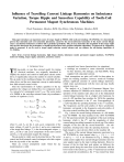 1 Influence of Travelling Current Linkage Harmonics on Inductance Variation, Torque Ripple and Sensorless Capability of Tooth-Coil Permanent Magnet Synchronous Machines Pavel Ponomarev, Member, IEEE, Ilya Petrov, Juha Pyrhönen, Member, IEEE Laboratory of Electrical Drives Technology, Lappeenranta University of Technology, 53850 Lappeenranta, Finland. This paper introduces an important source of torque ripple in PMSMs with tooth-coil windings (TC-PMSMs). It is theoretically proven that saturation and cross-saturation phenomena caused by the non-synchronous harmonics of the stator current linkage cause a synchronous inductance variation with a particular periodicity. This, in turn, determines the magnitude of the torque ripple and can also deteriorate the performance of signal-injection-based rotor position estimation algorithms. An improved dq- inductance model is proposed. It can be used in torque ripple reduction control schemes and can enhance the self-sensing capabilities of TC-PMSMs. Index Terms—Current linkage harmonics, high torque density, inductance model, permanent magnet machines, TC-PMSM, tooth-coil winding, torque ripple, saturation, sensorless control. I. I NTRODUCTION T dΨd − ωΨq , dt dΨq Uq = Rs iq + + ωΨd , dt 3 Te = p(Ψd iq − Ψq id ), 2 Ψd = Ld id + ΨPM , (4) Ψq = Lq iq . (5) Ud = Rs id + (1) (2) (3) where Ud and Uq are the d- and q-axis components of the stator voltage, Ψd and Ψq are the d- and q-axis components of the airgap flux linkage, Te is the electromagnetic torque, id and iq are the d- and q-axis components of the stator current and ΨPM is the permanent magnet flux linkage. The dq-model is widely used in electrical drives. The vector control and field-oriented control techniques take their origins from the dq-model of the machine. There are several assumptions under which the dqtransformation is valid: Manuscript received May 08, 2013; revised Sep. 02, 2013. e-mail: name.surname@lut.fi materials have linear characteristics (no saturation), windings are assumed to create sinusoidal waveforms for flux densities, flux linkages, and back-EMFs, being supplied with sinusoidal currents. Such assumptions are quite well valid for three-phase integral slot winding machines, however, tooth-coil windings produce significant amounts of current linkage harmonics, which rotate asynchronously with the rotor and may locally saturate iron core. The analysis of a Tooth-Coil Permanent Magnet Synchronous Machine (TC-PMSM) can be based on a fact that the operation of the machine takes place not at the fundamental current linkage harmonic, but at a higher order harmonic. In case of a 9/8 machine (base machine for 18/16) the operating (synchronous) harmonic is the 4th one. Correspondingly, in a 12/10-machine the operating harmonic is the 5th harmonic. The frequencies and the pole pitches of these synchronous harmonics correspond to the frequencies and pole pitches of the rotor-created travelling flux linkage waveforms. Fig. 1 shows the current linkage harmonics of a 9/8 double layer TC-PMSM – the base machine for the 18/16 TC-PMSM [1]. The spectrum includes the magnitude of the main working harmonic, which is the 4th , and the magnitudes of other current linkage travelling harmonics in the air gap. The relative strengths of the first and the second harmonics – the subharmonics rotating faster than the operating harmonic – are high enough to cause adverse effects in the machine [2]. The waves of the current linkage harmonics spectrum for a 9/8 TC-PMSM at a time instant when iU = 1 A, iV = −0.5 A and iW = −0.5 A are illustrated in Fig. 2. During sinusoidal current supply these current linkage harmonics have the same angular speed as the main working harmonic. However, because of the fact that their pole pitches are different, the rotation speed along the stator bore of the harmonic with the lowest order is the fastest (e.g. if the 4th harmonic has travelled once around the circumference, the 1st has rotated four times • HE dq-model, or rotor flux oriented model for rotating AC electrical machines, was originally introduced to simplify the analysis and control of multi-phase electric motor drives. It significantly reduces the number of control variables. The dq-model is the enabling technique for controlled AC machine drives and the most important concept to understanding how field-oriented control works. After the transformation of 3-phase quantities to the dqquantities the voltages are defined by a two-component vector Udq instead of a 3-component vector UUVW . The vector model of a PMSM in the rotor-flux-oriented frame (dq-coordinates) consists of equations (1)–(5) • 2 0.7 0.6 Θ, [A] 0.5 0.4 0.3 0.2 0.1 0 0 5 10 15 ν 20 25 30 Fig. 1. Current linkage harmonics of a 9/8 machine. Fig. 3. A photograph of the inside of the 18/16 machine. 1.5 1 2 4 3 5 6 7 8 9 1 Θ, [A] 0.5 0 ← 1st harmonic → 2nd harmonic −0.5 ← 4th operating → 5th harmonic Resultant current linkage (MMF) −1 0 1 2 3 α ,[rad] 4 5 6 Fig. 2. Travelling current linkage harmonic waves in the air gap of a 9/8 machine. iU = 1 A, iV = −0.5 A and iW = −0.5 A. Tooth numbers are shown above the waveforms. around the circumference). The sub-harmonics have the widest pole pitches and, therefore, tend to penetrate deep in the rotor. Having high speed on the rotor surface the sub-harmonics easily cause a lot of losses in conducting parts of the rotor. Therefore, as it was also proven in [3], the current linkage subharmonics are the main cause of the losses in the rotor and the permanent magnets. However, the main objective of this article is not the estimation of the losses due to asynchronous harmonics, but the analysis of the influence of these harmonics on the synchronous inductance and, consequently, on the electromagnetic torque quality (smoothness). The synchronous harmonic order of a 9/8 TC-PMSM is ν = 4 and harmonic travels to the positive direction with the rotor. The 1st ha