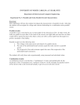 UNIVERSITY OF NORTH CAROLINA AT CHARLOTTE Department of Electrical and Computer Engineering Experiment No. 5 -Parallel and Series-Parallel Circuit Characteristics Overview: This experiment will have the student investigate the characteristics of parallel circuits. After that the student will investigate the voltage and current relationships in a combination series-parallel circuit. Parallel circuits: A parallel circuit is one that has two or more paths for the electricity to flow. In other words, the loads are parallel to each other. If the loads in this circuit were light bulbs and one blew out there would still be current flowing to the others as they are still in a direct path from the negative to positive terminals of the battery. Parallel circuits have the following rules: a. The voltage is the same across each branch of a parallel circuit. b. The sum of the individual branch currents equals the total current in a parallel circuit. c. The reciprocal of the total resistance equals the sum of the reciprocals of the individual branch resistances. The student will verify these rules experimentally using measured and calculated values. Combination circuits: A combination circuit is one that has a “combination” of series and parallel paths for the electricity to flow. Its properties are a synthesis of the two. In this example, the parallel section of the circuit is like a sub-circuit and actually is part of an over-all series circuit. Pre – Lab Parallel and Series Circuits 1. Using one of the relationships for resistors connected in parallel solve for the total resistance in Figure 1. Show Calculations. Figure 1: Parallel Resistive circuit 2. Series – Parallel circuit analysis: Refer to Figure 2. Figure 2: A complete series-parallel circuit a. In branch C, how are R5, R6 and R7 related to each other? ____________________________________________ How are there currents related? ______________________ 2 How are there voltage drops related to the voltage across branch B and branch A? _________________________________________________________ b. In branch B, how are R3 and R4 related to each other? _________________________________________________________ How are their voltage drops related to the voltage across branch B and branch A?______________________________________________ c. What is the relationship between the sum of the currents of branches A, B and C to the current through R1? __________________________________________________________ Why? ______________________________________________________ d. Make a statement that compares the amount of current through each branch A, B and C with the amount of resistance on A, B and C. ___________________________________________________________ ___________________________________________________________ e. Branch B and branch C are in parallel. Correct? _________________ Voltages across parallel branches are the same. Correct? __________ R3 is in branch B and R5 is in branch C. Is the voltage across R3 and R5 the same? _________________________________________________________ Why or why not? ___________________________________________ (INSTRUCTOR’S SIGNATURE_____________________________DATE 3 ) Lab Session – Parallel and Series Parallel Circuits Part One – Voltage characteristic in a parallel circuit. 1. Show your pre-lab work to the instructor at the beginning of the lab session. 2. Connect the circuit in Figure 3. Adjust the voltage source to a value of 12 volts (with the circuit connected). 3. Using the DMM, measure the voltage across each resistor. Record below. VR1 = __________ VR2 = __________ VR3 = __________ Figure 3: Lab Circuit setup part 1 Part Two – Current relationships in a parallel circuit. 1. Connect the circuit in Figure 4. Make sure that the source voltage is properly set to 12 volts with the circuit connected. 2. Using a current meter, measure the current through each resistor and the total current. Record below. __________ __________ __________ Itotal = __________ Figure 4: Lab circuit setup part 2 4 IR1 = IR2 = IR3 = INSTRUCTOR' S INITIALS DATE: Part Three – Resistance relationship in a parallel circuit. 1. Connect the circuit in Figure 5. Note that there is no source voltage connected. 2. Using a DMM, measure the total resistance. Record. Figure 5: Lab circuit setup part 3 3. Remove each resistor from the circuit. Using the DMM, individually measure R1, R2 and R3. Record each value below. R1 = __________ R2 = __________ R3 = __________ 4. Using one of the relationships for resistors connected in parallel solve for the total resistance in Figure 5. Show calculations(s). Part Four – Effect of changing a resistor in one branch of a parallel circuit. 1. Connect the circuit of Figure 6. Set the source voltage to 10 volts with the circuit connected. 2. Measure and record the total current and the current through each resistor. I1 = __________ I2 = __________ I3 = __________ It = __________ Figure 6: lab circuit setup part 4 5 INSTRUCTOR' S INITIALS DATE: 3. Change the value of R2 to 5.6kΩ. Again, measure and record the total current and the current through each resistor. I1 = __________ I2 = __________ I3 = __________ It = __________ Part Five - Measuring the effect on circuit parameters as the ratio of resistance values are changed in a two branch parallel circuit. 1. Connect the circuit of Figure 7. Note that R1 and R2 are equal. In succeeding procedures, R1 will always be 3.3kΩ but R2 will be changed. 2. Measure and record the total current and the current through each resistor. Then measure the total circuit resistance with the voltage source removed. Record. I1 = __________ I2 = __________ It = __________ Figure 7: lab circuit setup part 5 Rt = __________ 3. Change R2 to 330Ω. Repeat procedure 2 and record. I1 = __________ I2 = __________ It = __________ Rt = __________ 6 INSTRUCTOR' S INITIALS DATE: 4. Change R2 to 33kΩ. Repeat procedure 2 and record. I1 = __________ I2 = __________ It = __________ Rt