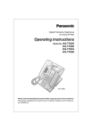 Digital Proprietary Telephones for Hybrid IP PBX Operating Instructions Model No. K XT 76 CO ER CO AU MU GH D /D PA TO AN SW AU TE C ST DE TO D IA E 24 10 OR 23 E 9 F L 22 8 MN O 21 7 V W OP 12 11 L RS TU M US ER I JK PQ ND M AB 20 6 XY Z ER 19 5 18 4 ES SA GE D IA LD SP -P HO 16 2 L TR HO 17 3 RE F RE L A CA S H LL / AN SF 36 NF FW IN T KX-T7625 KX-T7630 KX-T7633 KX-T7636 15 1 ER 14 13 NE EN CA TE R NC EL KX-T7636 Please read this Operating Instructions before using and save for future reference. This manual is designed to be used with your Proprietary Telephone and a Panasonic KX-TDA200/100. Before Initial Use Thank you for purchasing a Panasonic Digital Proprietary Telephone. Please read IMPORTANT SAFETY INSTRUCTIONS on page XX before use. Read and understand all instructions. When you ship the product Carefully pack and send it prepaid, adequately insured and preferably in the original carton. Attach a postage-paid letter, detailing the symptom to the outside of the carton. DO NOT send the product to the Executive or Regional Sales offices. They are NOT equipped to make repairs. Product service Panasonic Servicenters for this product are listed in the servicenter directory. Consult your authorized Panasonic dealer for detailed instructions. Helpful hints for the handsfree operation • If the other party has difficulty hearing you: Lower the speaker volume. • Absorbing echoes: Use this unit in a room which has curtains and/or carpeting. • To avoid missing part of the conversation: If you and the other party speak at the same time, parts of your conversation will be lost. To avoid this, speak alternately. Accessories (included) For extra orders, call toll free 1-800-332-5368 Handset Handset Cord One One Telephone Line Cord Wall Mounting Plate One 2 One Table of Contents Before Initial Use ...................................................................................2 Before Operating the Telephones .......................................................4 Location of Controls ...................................................................................... 4 Connection .................................................................................................... 6 Tilt Angle Adjustment .................................................................................... 6 Setting ........................................................................................................... 7 Making Calls ..........................................................................................8 Calling Another Extension ............................................................................. 8 Calling an Outside Party ............................................................................... 8 Receiving Calls ......................................................................................9 Answering Calls ............................................................................................ 9 During a Conversation ........................................................................10 Transferring a Call ....................................................................................... 10 Holding a Call .............................................................................................. 11 Using the Display Proprietary Telephone .........................................12 Incoming Call Log ....................................................................................... 12 Outgoing Call Log ....................................................................................... 13 Using the Directories ................................................................................... 14 Entering Characters .................................................................................... 15 Accessing the System Features .................................................................. 15 Other Operations .................................................................................16 Personal Programming .......................................................................19 Wall Mounting ......................................................................................20 Installing the KX-T7601/KX-T7603 .....................................................21 KX-T7601 .................................................................................................... 21 KX-T7603 .................................................................................................... 21 Important Safety Instructions ............................................................22 FCC and Other Information ................................................................23 3 Before Operating the Telephones Location of Controls KX-T7636 LCD (Liquid Crystal Display) Soft Buttons (S1 through S3) MessagecumRinging Lamp PAUSE FWD/DND (Call Forwarding /Do Not Disturb) CONF (Conference) INTERCOM AUTO ANSWER /MUTE Flexible Outside (CO) Line Buttons AUTO DIAL /STORE TRANSFER REDIAL ENTER CANCEL Navigator Key MESSAGE Headset Jack FLASH/ HOLD RECALL 4 Microphone SP-PHONE (Speakerphone) Before Operating the Telephones AUTO ANSWER MUTE AUTO ANSWER/MUTE Used to receive an incoming call in the hands-free mode or mute the microphone during a conversation. HOLD INTERCOM AUTO DIAL STORE CANCEL AUTO DIAL/STORE Used for System Speed Dialling or storing programme changes. CANCEL Used to cancel the selected item. PROGRAM (KX-T7625 only) Used to enter and exit the Personal Programming mode. CONF ENTER FLASH/ RECALL MESSAGE ENTER CONF (Conference) Used to establish a multiple party conversation. VOLUME PAUSE (CO) FWD/DND Flexible Outside (CO) Line Button Used to make or receive an outside call. Pressing this button seizes an idle outside line automatically. (Button assignment is required.) Also used as the desired function buttons. (Button assignment is required.) FWD/DND (Call Forwarding/Do Not Disturb) Used to perform Call Forwarding or Do Not D