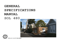 GENERAL SPECIFICATIONS MANUAL SOL 480 ISO LIGHT STEEL SHIPPING MODULE MEKAWORLD USES CUSTOMIZED, TESTED AND CERTIFIED HIGH CUBE ISO LIGHT STEEL STRUCTURAL MODULES FOR THEIR DWELLINGS. THE CUSTOM CONTAINERS ARE BUILT TO ISO STANDARDS AND ARE APPROVED BY THE FOLLOWING INTERNATIONAL CERTIFICATION INSTITUTIONS: GERMANISCHER LLOYD(GL), THE AMERICAN BUREAU OF SHIPPING (ABS), BUREAU VERITAS (BV), AND THE CHINESE CLASSIFICATION SOCIETY (CCS). SINGULAR MODULE MEASUREMENTS: 20 foot High Cube ISO Intermodal LIGHT STEEL MODULE 20‘( l) x 8’ (w) x 9’-6” (h) 6096 mm (l) x 2438 mm (w) x 2896 mm (h) MEKAWORLD SOL 480 MEASUREMENTS: BUILDING FOOTPRINT DIMENSIONS: 24’ x 20’ 7315 mm x 6096 mm AREA: 480 ft2 ROOF AREA 480 ft2 45 m2 45 m2 GROSS FLOOR AREA 480 ft2 45 m2 BUILDING HEIGHT (EXCLUDES FOUNDATION HEIGHT) 9’ -6” 2896 mm ISO LIGHT STEEL SHIPPING MODULE Specifications/Materials Accurate digest of specifications, requirements, and certifications for all ISBU modules and ISO steel dry cargo Shipping MODULE sizes 10’, 20’, 40’, 45’ and 53’, both GP and HC types. CERTIFICATION Prepared in accordance with: International Organization for Standardization (ISO) ISO- 1CC type steel dry containers International Maritime Organization (IMO) International Convention for Safe Containers (CSC) 1972-2007 and in accordance with CSC Article IV(2) BASIC VERSION (excerpts) These specifications and commentary cover design, construction, materials, testing, inspections of ISO standard shipping containers and ISBU modules. All information is in accordance with the requirements of ISO- 1CC type steel dry freight containers by all certified global manufacturers. These Specifications are for information purposes and for use only by ISBU Associationmembers and their associates for the development and construction of their projects. Any structural modifications of these containers should be certified by a structural engineer to meet appropriate safety standards and building codes. All information is certified to be accurate according to ISO/IMO/CSC requirements, articles and revisions current to March 2009. 6. Construction 6.1 General The container will be constructed with steel frames, fully vertically corrugated steel side and end walls, die-stamped corrugated steel roof, wooden flooring, corrugated double hinged doors and ISO corner fittings at eight corners. All steelworks will be built up by means of automatic and semi-automatic CO2 gas arc welding. All exterior welding including that on base structure will be continuous to give perfect watertight properties, Interior welds will be intermittent with a minimum bead length of 25 mm for every 200 mm. All the welds, even spots, will have penetration without undercutting or porosity. 6.2 Corner Fittings Corner fittings will be designed in accordance with ISO/1161 standard, and manufactured at the workshops approved by the classification society. 6.3 Base Frame The base frame will be composed of two (2) bottom side rails, a number of cross members and a pair of fork pockets, which are welded together as a sub-assembly. 6.3.1 Bottom Side Rail Each bottom side rail is built of a steel pressing made in one piece. The bottom flange face outwards so as to be easily repaired and hard to corrode. Note: See specific ISO shipping container specifications & dimensions. 6.3.2 Crossmember The crossmembers are composed of a number of small pressed channel section and some large one with three 4.0 mm thick webs located beneath each board joint of the plywood, which are placed at certain center distance. Shape: " C " section Small: 122 x 45 x 45 x 4.0 mm, Quantity: - Large: 122 x 75 x 45 x 4.0 mm, Quantity: - - 6.3.3 Fork Pocket One pair of fork pockets will be provided in accordance with ISO requirements for loaded handling. Each fork pocket is constructed with two adjacent crossmembers, a top plate and two bottom end plates. A angle stiffener plate will be welded to each opening of fork pocket. Top plate: 3.0 mm Thick Bottom plate: 6.0 mm Thick 6.4.2.2 Corner Post Each corner post is made of a 6 mm thick section steel pressing to ensure the suitable strength, light-weight and easy maintenance. 6.4.2.3 Front Header The front header is constructed with steel square tube lower part and steel plate upper part. The upper part is extended inwards of the container certain distance with full width from front part of top corner fittings. 6.3.4 Reinforcement Reinforcement plates will be welded at two ends of bottom side rail. Dimension: 200 x 153 x 4.0 mm Lower rail: 60 x 60 x 3.0 mm RHS Upper part: 3.0 mm thick 6.4 Front End The front end will be composed of corrugated end wall and front end frame, which are welded together as a sub-assembly. 6.5 Rear End Rear end is composed of Rear End Frame which consists of one door sill, two corner posts, one rear header with header plate and four corner fittings, which are welded together as a sub-assembly, and Door Systems with locking devices. 6.4.1 Front End Wall The front end wall is composed of steel sheet fully vertically corrugated into trapezium section, butt joint together to form one panel by means of automatic welding. Thickness: 2.0 mm Corrugation dimension- Outer face: 110 mm Depth: 45.6 mm Interface : 104 mm Slope: 18 mm 6.4.2 Front End Frame The front end frame will be composed of one front sill, two corner posts, one front header and four corner castings. 6.4.2.1 Front Sill The front sill is made of a special “C” section steel pressed with vertical webs as the stiffener. Front sill: 4.0 mm thick Web: 4.0 mm thick Quantity: - - 6.5.1 Door Sill The door sill is built of special channel section steel pressing with internal ribs as stiffeners at the back of each cam keeper. The upper face has a slope for better drainage and the highest part is on the same level to the upper face of the wooden floor. Door sill: 4.5 mm thick Slope Stiffener ribs: 4.0 mm thick 1:10 approx. Quantity: - 6.5.2 Corner Post Each corner post is const