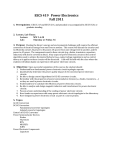 Thursday or Friday 3-6 3. Purpose: Meeting the future’s energy and environmental challenges will require the efficient conversion of electrical energy from one form to another. This course will discuss the circuits used to efficiently convert AC power to DC power, DC power from one voltage level to another, and DC power to AC power. The components used in these circuits (e.g., diodes, transistors, capacitors, inductors) will also be covered in detail. A key aspect of power electronic circuits is the control algorithms used to achieve the desired behavior (e.g., output voltage regulation), and so control theory as it applies to these circuits will be discussed. A lab will be held with the class where the students will obtain hands‐on experience with power electronic circuits.
