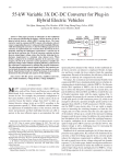 1668 IEEE TRANSACTIONS ON POWER ELECTRONICS, VOL. 27, NO. 4, APRIL 2012 55-kW Variable 3X DC-DC Converter for Plug-in Hybrid Electric Vehicles Wei Qian, Honnyong Cha, Member, IEEE, Fang Zheng Peng, Fellow, IEEE, and Leon M. Tolbert, Senior Member, IEEE Abstract—This paper presents an alternative to the traditional dc-dc converter interfacing the battery with the inverter dc bus in plug-in hybrid electric vehicle (HEV) traction drives. The boost converter used in commercial HEVs meets with obstacles when it comes to upgrading the power rating and achieving high efficiency while downsizing the converter. A four-level flying-capacitor dc-dc converter is explored that can overcome these drawbacks by dramatically reducing the inductance requirement. A special case of the four-level converter, the 3X dc-dc converter, operates at three discrete output/input voltage ratios, thus further reducing the inductance requirement to a minimal value (almost zero). When further compared to its switched-capacitor dc-dc converter counterparts, the 3X dc-dc converter can be operated at variable output/input voltage ratios without sacrificing efficiency, and it lowers the capacitance requirement by utilizing the parasitic inductance. The operating principle, current ripple analysis, the transient control to limit the inrush current, and power loss analysis are introduced. Experimental results of a 55-kW prototype are provided to demonstrate the principle and analysis of this topology. Index Terms—DC-DC power conversion, multilevel converter, pulse width modulation, voltage dividers, voltage multipliers. I. INTRODUCTION ANY commercial hybrid electric vehicle (HEV) systems, such as Prius, Camry, and Fusion, use a traditional bidirectional dc-dc converter to interface the battery and the inverter dc bus. For example, the powertrain configuration of the Camry hybrid is shown in Fig. 1. In this system, the dc-dc converter boosts the battery voltage from 244 V to three optimized discrete voltage levels up to 650 V according to the motor/generator speeds [1]. When combined with the continuous adjustment of modulation indices of the inverters, both the motor and generator and their individual inverters are able to operate in the most efficient region to accommodate the wide M Manuscript received November 12, 2010; revised March 29, 2011; accepted July 30, 2011. Date of current version February 20, 2012. This work was supported by the Department of Energy FREEDOM Car Program via Oak Ridge National Laboratory. Recommended for publication by Associate Editor U. K. Madawala. W. Qian and F. Z. Peng are with the Department of Electrical and Computer Engineering, Michigan State University, East Lansing, MI 48824 USA (e-mail: qianwei@msu.edu, fzpeng@egr.msu.edu). H. Cha was with the Department of Electrical and Computer Engineering, Michigan State University. He is now with the Kyungpook National University, 1370 Sankyuk-dong, Buk-gu, Daegu, Korea (e-mail: chahonny@knu.ac.kr). L. M. Tolbert is with the Department of Electrical Engineering and Computer Science, The University of Tennessee, Knoxville, TN 37996 USA (e-mail: tolbert@utk.edu). Color versions of one or more of the figures in this paper are available online at http://ieeexplore.ieee.org. Digital Object Identifier 10.1109/TPEL.2011.2165559 Fig. 1. Powertrain configuration of conventional series-parallel HEV. speed and power demand of the vehicle. In this traditional dcdc boost converter, an inductor is employed. Besides its large size and heavy weight, the lossy inductor limits the operating temperature. Because of the inductor, the efficiency of the dc-dc converter is relatively low compared to the inverter. Nowadays, the economical and environmental benefits from commercial HEVs have stimulated global interest in further developing plug-in hybrid electric vehicles (PHEVs). For the pure electric drive operation of PHEVs, the dc-dc boost converter has to deliver the full power needed by the traction drive, not just the difference between MG1 and MG2 as would be the case in blended operation mode with the engine running (Fig. 1). For example, the present dc-dc converter in the Prius is rated at 20-kW peak power (10-kW continuous power) [2], which is not enough for all-electric operation at higher speeds and has to be upgraded from 20-kW to 55-kW peak power (30-kW continuous) for PHEV’s pure electric drive. It is not viable to simply resort to increasing the switching frequency to limit the size, weight, and cost of the converter since the core and copper loss of the inductor will go up as a result of the increased switching frequency and the power rating. In addition, the semiconductor heat dissipation in the converter limits the switching frequency. In response, multiphase dc-dc converters [3]–[5] were developed for high power HEVs and fuel cell vehicles (FCVs). The inductor design is still a challenging issue for increasing the converter efficiency and power density. Multilevel dc-dc converter topologies [6]–[9] have been proposed for many applications. By contrast to the traditional dc-dc converter, a three-level flying-capacitor dc-dc converter greatly reduces the inductance requirement in addition to other benefits such as much lower device voltage rating and fast dynamic response [7], [8]. In this paper, further investigation and theoretical analysis are performed to utilize the multilevel structure to achieve high voltage boost and high power for PHEVs. A fourlevel flying-capacitor dc-dc converter is presented, as shown in 0885-8993/$26.00 © 2011 IEEE QIAN et al.: 55-KW VARIABLE 3X DC-DC CONVERTER FOR PLUG-IN HYBRID ELECTRIC VEHICLES Fig. 2. Four-level flying-capacitor dc-dc converter. Fig. 2, to replace the traditional dc-dc converter. This four-level structure can further reduce the input current ripple. More interestingly, a closer and further look into the input current ripple will reveal that the inductor can be eliminated or minimized when the