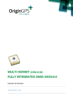 MULTI HORNET (ORG1218) FULLY INTEGRATED GNSS MODULE MODULE Evaluation Kit Datasheet OriginGPS.com Multi Hornet – ORG1218 Evaluation Kit Datasheet Revision 2.0 Page 1 of 11 January 14, 2015 INDEX 1. 2. 3. 4. 5. 6. 7. 8. 9. 10. 11. 12. 12.1. 12.2. 12.3. 12.4. 13. 14. 15. 16. SCOPE ................................................................................................................................................................... 3 DISCLAIMER .......................................................................................................................................................... 3 SAFETY INFORMATION ......................................................................................................................................... 3 ESD SENSITIVITY .................................................................................................................................................... 3 CONTACT INFORMATION ...................................................................................................................................... 3 RELATED DOCUMENTATION ................................................................................................................................. 3 REVISION HISTORY ................................................................................................................................................ 3 GLOSSARY ............................................................................................................................................................. 4 ABOUT THE MODULE ............................................................................................................................................ 5 ABOUT ORIGINGPS ............................................................................................................................................... 6 DESCRIPTION ........................................................................................................................................................ 6 EVALUATION BOARD ............................................................................................................................................ 6 BILL OF MATERIALS ............................................................................................................................................... 6 SCHEMATIC DIAGRAM .......................................................................................................................................... 7 COMPONENT ASSEMBLY ...................................................................................................................................... 8 PCB LAYOUT .......................................................................................................................................................... 8 THE TTL-232R-3V3 USB-SERIAL CONVERTER CABLE ........................................................................................... 10 COMPLIANCES .................................................................................................................................................... 11 DISPOSAL INFORMATION ................................................................................................................................... 11 ORDERING INFORMATION .................................................................................................................................. 11 TABLE INDEX TABLE 1 – RELATED DOCUMENTATION ................................................................................................................................ 3 TABLE 2 – REVISION HISTORY ............................................................................................................................................... 3 TABLE 3 – EVB BILL OF MATERIALS ....................................................................................................................................... 6 TABLE 4 – PIN HEADER SOCKET PIN-OUT ........................................................................................................................... 10 TABLE 5 – TTL-232R-3V3 OPERATING CONDITIONS ........................................................................................................... 10 TABLE 6 – ORDERING OPTIONS........................................................................................................................................... 11 TABLE 7 – ORDERABLE DEVICES .......................................................................................................................................... 11 FIGURE INDEX FIGURE 1 – EVB SCHEMATIC DIAGRAM ................................................................................................................................ 7 FIGURE 2 – EVB COMPONENT ASSEMBLY ............................................................................................................................ 8 FIGURE 3 – EVB SOLDER MASK TOP LAYER ........................................................................................................................... 8 FIGURE 4 – EVB TOP LAYER ................................................................................................................................................... 9 FIGURE 5 – EVB BOTTOM LAYER ........................................................................................................................................... 9 FIGURE 6 – TTL-232R-3V3 APPEARANCE ............................................................................................................................ 10 FIGURE 7 – PIN HEADER SOCKET PIN-OUT ......................................................................................................................... 10 Multi Hornet – ORG1218 Evaluation Kit Datasheet Revision 2.0 Page 2 of 11 January 14, 2015 1. SCOPE This document describes the 