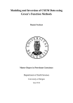 Modeling and Inversion of CSEM Data using Green’s Function Methods Musisi Norbert Master Degree in Petroleum Geoscience Department of Earth Science University of Bergen June 2014 ii Abstract The aim of the present study is to develop new approximations to the integral equation for 3D Controlled Source Electromagnetic (CSEM) synthetic data. Several scattering approximations to the integral equation have previously been developed to simulate the electromagnetic problems. In this thesis, new approaches to the approximate solution for the integral equation in 3D for marine CSEM at low frequency using the T-matrix approximation (TMA) and the Extended Born approximation (EBA) have been presented. Unlike the EBA that has been previously discussed in CSEM, the TMA has not yet been extended to CSEM though with many applications in seismics. The T-matrix approach only requires the knowledge of the perturbations and the Green’s function to compute the electric field whereas the Extended Born approximation for electromagnetic forward modeling improves the ability to accurately simulate the internal fields for a distribution without inverting a large 3D matrix. The new methods have been implemented in MATLAB for forward modeling on synthetic marine CSEM data and the solutions compared with the Born approximation. In addition, sensitivity and validity of these methods for a reservoir in production with varying contrasts have been studied with several examples to show their accuracy. It appears that the new approximations have better accuracy and a wider electrical conductivity application range. The T-matrix is expected to approximate roughly the full integral equation solution for electromagnetic (EM) field, while the Extended Born is expected to improve the approaches of EM field over large conductivity contrasts between the reservoir and background model, compared to the Born approximation. The T-matrix and the Extended Born are valid for high contrasts. The effects of these approximations to different reservoir parameters have also been investigated. To improve the accuracy of these approximations, the number of grid blocks need to be increased at the expense of the computational cost. A cubic reservoir model works better than the rectangular block model for the T-matrix. Using numerical and analytical modeling, the T-matrix and the Extended Born have been expanded to CSEM monitoring of geophysical anomalies in the pore-fluid contents of the subsurface reservoirs. The ability of time-lapse CSEM data to monitor small changes in the electrical conductivity has been discussed. It has been found that these methods can detect the changes in the contrast of the reservoir due to fluid injection. iii iv Acknowledgements First, I would like to express my sincere gratitude to my advisor and supervisor, Prof. Jakobsen Morten, for his much needed encouragement, patience, and guidance along the path of this research. He always had time for me and made me feel that our topic of discussion was the most important item of the day. Without his support I would never have successfully completed as much accurate and faster as I did. In addition, I would like to extend my appreciation to Associate professor Henk Keers for the skills and guidance he has given me as far as MATLAB programing is concerned. I wish to thank the Norwegian government, through the Department of Earth Science, University of Bergen, for financing my master studies, otherwise my studies and this thesis would not have been possible. It is imperative to express my sincere gratitude to the many people who saw me through this book; to all those who provided support, talked things over, read, wrote, offered comments, allowed me to quote their remarks and assisted in the editing, proofreading and design. Last, but not least, I am extremely grateful to brother Edward and mother Beatrice for allowing me to spend most of their ample, valuable and much needed time on this thesis and as a student in Bergen. ………………………… Musisi Norbert Bergen, June 2014 v vi Table of Contents 1 Introduction ........................................................................................................................ 1 1.1 2 1.1.1 Forward Modeling ............................................................................................... 1 1.1.2 Inverse Modeling ................................................................................................. 2 1.2 Approximations to Integral Equation .......................................................................... 3 1.3 Outline of the Thesis ................................................................................................... 4 Electromagnetic Theory ..................................................................................................... 5 2.1 Marine CSEM ............................................................................................................. 5 2.2 Electromagnetic Fields ................................................................................................ 7 2.2.1 Amplitude and Phase ........................................................................................... 8 2.2.2 Skin Effect ........................................................................................................... 8 2.2.3 Skin Depth ( δ ) .................................................................................................... 9 2.3 Electrical Resistivity ................................................................................................. 10 2.3.1 Ohm’s Law......................................................................................................... 10 2.3.2 Conduction in Solution ...................................................................................... 11 2.3.3 Archie’s Law ...................................................................................................... 11 2.3.4 Oil