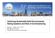 Achieving Sustainable Built Environments: Rating Systems and Role of Commissioning Gerald J. Kettler, PE, CCP Managing Principal Facility Performance Associates AIA Quality Assurance Learning Objectives 1. Understand the basics of the Commissioning Process according to ASHRAE Guideline 0-2005 2. Recognize that Commissioning is a Process and not just a single event in application of Sustainable Building Programs 3. Be able to apply the Commissioning Process for Sustainable Buildings 4. Utilize the Commissioning Process for a specific project The Commissioning Process as defined in ASHRAE Guideline 0-2005 Commissioning Process: A quality focused process for enhancing the delivery of a project. The process focuses upon verifying and documenting that the facility and all of its systems and assemblies are planned designed, installed, tested, operated and maintained to meet the Owner’s Project Requirements. ASHRAE Guideline 0-2005 by Phase • Pre-Design- Owner’s Project Requirements (Design intent), Commissioning Plan, Scope and Budget for Commissioning • Design- Basis of Design, Plans and Specifications, Commissioning Plan for Specific Project, Training Requirements. • Construction - Procedures, Submittals, Verification, Functional Testing, Documentation, Systems Manuals, Training • Occupancy and Operations- Retesting, Remodeling, Maintenance, Seasonal Testing Commissioning Process Fundamentals Activity Deliverable 1. Owner Defined Responsibilities ↓ 2. Decide Project Requirements ↓ 3. Develop Commissioning Plan ↓ 4 Design Approach to OPR ↓ 5. Set Contractor Cx Requirements ↓ 6. Cont. Doc. Verification to OPR ↓ 7. Submittals Review ↓ Contract Requirements Owner’s Project Requirements Commissioning Plan Basis of Design Construction Documents Cont. Doc. Verification Report Submittal Review Report Commissioning Process Fundamentals Activity Deliverable 8. Construction & Testing Verification Verification Checklists and ↓ Report 9. Performance Verification Performance Verification Report ↓ 10. Issues Resolution Issue Logs ↓ 11. Assemble Systems Manual System Manuals ↓ 12. Training Training Plans and Records ↓ 13. Commissioning Report Commissioning Report ↓ 14. Post Occupancy Operation Verification End of Warranty Cx Report USGBC - LEED Program • Organization = United States Green Building Council • Program = Leadership in Energy and Environmental Design ◦ Building Design and Construction ◦ Core and Shell ◦ Interiors ◦ Existing Buildings ◦ Residential, Neighborhoods • Updated Every 3 Years LEED NC Program - 2009 •Sustainable Sites •Water Efficiency •Energy and Atmosphere •Materials and Resources •Indoor Environmental Quality •Innovation •Regional Commissioning in NC LEED – Fundamental - 2009 • Appoint Commissioning Authority • Owner’s Project Requirements and Basis of Design • Commissioning Requirements in Construction Documents • Develop Commissioning Plan • Verification Installation and Performance Testing, and Documentation • Provide Commissioning Report Commissioning in NC LEED – Enhanced - 2009 • Independent Commissioning Authority • Design Review @ Design Development • Design Review @ Construction Documents • Review Selected Submittals • Develop Systems Manuals including Recommissioning Management Process • Verify Training of Operating Personnel • Post Occupancy 10 Month Review LEED Commissioning Process Total Building Commissioning Innovation Credit • Coordinate Entire Green Building Team • Building Thermal Envelope Design Review • Thermal Envelope Commissioning Plan • Coordinated Documentation Plan • Testing and Functional Performance of Building Envelope and/or Mock-ups • Conduct Field QA Inspections including Corrections • Final Report Commissioning in LEED – Existing Building - 2009 No EBOM Required Commissioning or Provider Requirements Prerequisite Point EAp1 requires- Planning, Documentation and Opportunity Assessment EAc2.1 Investigation, Analysis and Commissioning Plan or ASHRAE Level II Audit EAc2.2 Implementation of the Commissioning Plan EAc2.3 Performance Measurement and Metering Commissioning in LEED – 2012 • Commissioning, Measurement and Verification, and Metering move to a new Section called “Performance” • There will be three Prerequisites: ◦Water Metering and Reporting ◦ Building level Energy Metering ◦Fundamental Commissioning and Verification Commissioning in LEED – Prerequisite - 2012 •Commissioning is to verify that the project's energy, water, and indoor air quality and the exterior envelope assemblies and systems are designed, installed, and calibrated to perform to the Owner's Project Requirements, basis of design and construction documents. A commissioning process must be incorporated into predesign, design, construction, and the first year of occupancy. Commissioning in LEED – Prerequisite - 2012 The process must verify that the project, it's components, assemblies, and systems comply with the documented OPR. The owner must document and/or approve the OPR that meets the requirements of Section 5.2.2.4 of ASHRAE Guideline 0, and designate an individual as the CxA. The design team must develop the Basis of Design, participate in Commissioning meetings and process. Commissioning in LEED – Prerequisite - 2012 The CxA must lead and perform the commissioning process requirements listed. Commissioned systems include: HVAC, lighting, domestic hot water, renewable energy, roofing systems, thermal, air, and vapor transmission properties of walls, windows and doors, water monitoring and measuring devices, and required plumbing systems. Commissioning in LEED – Enhanced - 2012 •The design team must provide an analysis of building moisture and vapor transmission. CxA shall develop an enhanced commissioning process and implementation plan, , develop design phase checklists, perform multiple design reviews, develop commissioning process 