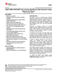 LM2671 www.ti.com SNVS008K – SEPTEMBER 1998 – REVISED APRIL 2013 LM2671 SIMPLE SWITCHER® Power Converter High Efficiency 500mA Step-Down Voltage Regulator with Features Check for Samples: LM2671 FEATURES 1 • Efficiency up to 96% • Available in SOIC, 8-pin PDIP and WSON Packages • Computer Design Software LM267X Made Simple (version 6.0) • Simple and Easy to Design With • Requires Only 5 external Components • Uses Readily Available Standard Inductors • 3.3V, 5.0V, 12V, and Adjustable Output Versions • Adjustable Version Output Voltage Range: 1.21V to 37V • ±1.5% Max Output Voltage Tolerance Over Line and Load Conditions • Ensured 500mA Output Load Current • 0.25Ω DMOS Output Switch • Wide Input Voltage Range: 8V to 40V • 260 kHz Fixed Frequency Internal Oscillator • TTL Shutdown Capability, Low Power Standby Mode • Soft-Start and Frequency Synchronization • Thermal Shutdown and Current Limit Protection 234 APPLICATIONS • • Simple High Efficiency (>90%) Step-Down (Buck) Regulator Efficient Pre-Regulator for Linear Regulators DESCRIPTION The LM2671 series of regulators are monolithic integrated circuits built with a LMDMOS process. These regulators provide all the active functions for a step-down (buck) switching regulator, capable of driving a 500mA load current with excellent line and load regulation. These devices are available in fixed output voltages of 3.3V, 5.0V, 12V, and an adjustable output version. Requiring a minimum number of external components, these regulators are simple to use and include patented internal frequency compensation (Patent Nos. 5,382,918 and 5,514,947), fixed frequency oscillator, external shutdown, soft-start, and frequency synchronization. The LM2671 series operates at a switching frequency of 260 kHz, thus allowing smaller sized filter components than what would be needed with lower frequency switching regulators. Because of its very high efficiency (>90%), the copper traces on the printed circuit board are the only heat sinking needed. A family of standard inductors for use with the LM2671 are available from several different manufacturers. This feature greatly simplifies the design of switch-mode power supplies using these advanced ICs. Also included in the datasheet are selector guides for diodes and capacitors designed to work in switch-mode power supplies. Other features include a ensured ±1.5% tolerance on output voltage within specified input voltages and output load conditions, and ±10% on the oscillator frequency. External shutdown is included, featuring typically 50 μA stand-by current. The output switch includes current limiting, as well as thermal shutdown for full protection under fault conditions. To simplify the LM2671 buck regulator design procedure, there exists computer design software, LM267X Made Simple (version 6.0). 1 2 3 4 Please be aware that an important notice concerning availability, standard warranty, and use in critical applications of Texas Instruments semiconductor products and disclaimers thereto appears at the end of this data sheet. SIMPLE SWITCHER, WEBENCH are registered trademarks of Texas Instruments. Windows is a registered trademark of Microsoft Corporation. All other trademarks are the property of their respective owners. PRODUCTION DATA information is current as of publication date. Products conform to specifications per the terms of the Texas Instruments standard warranty. Production processing does not necessarily include testing of all parameters. Copyright © 1998–2013, Texas Instruments Incorporated LM2671 SNVS008K – SEPTEMBER 1998 – REVISED APRIL 2013 www.ti.com Typical Application Figure 1. Fixed Output Voltage Versions Connection Diagram CB 1 16 VSW * 2 15 VSW * 3 14 VIN SS 4 13 * * 5 12 GND SYNC 6 11 GND * 7 10 FB 8 9 DAP** * ON/OFF * No Connections **Connect to Pins 11, 12 on PCB Figure 2. 16-Lead WSON Surface Mount Package Top View See Package Drawing Number NHN0016A Figure 3. SOIC/PDIP Package 8-Lead Package Top View See Package Drawing Number D0008A/P0008E These devices have limited built-in ESD protection. The leads should be shorted together or the device placed in conductive foam during storage or handling to prevent electrostatic damage to the MOS gates. 2 Submit Documentation Feedback Copyright © 1998–2013, Texas Instruments Incorporated Product Folder Links: LM2671 LM2671 www.ti.com SNVS008K – SEPTEMBER 1998 – REVISED APRIL 2013 Absolute Maximum Ratings (1) (2) Supply Voltage 45V −0.1V ≤ VSH ≤ 6V ON/OFF Pin Voltage −1V Switch Voltage to Ground Boost Pin Voltage VSW + 8V −0.3V ≤ VFB ≤ 14V Feedback Pin Voltage ESD Susceptibility Human Body Model (3) 2 kV Power Dissipation Internally Limited Storage Temperature Range −65°C to +150°C Lead Temperature D Package Vapor Phase (60s) +215°C Infrared (15s) +220°C P Package (Soldering, 10s) +260°C WSON Package (See AN-1187) Maximum Junction Temperature (1) (2) (3) +150°C Absolute Maximum Ratings indicate limits beyond which damage to the device may occur. Operating Ratings indicate conditions for which the device is intended to be functional, but device parameter specifications may not be ensured under these conditions. For ensured specifications and test conditions, see the Electrical Characteristics. If Military/Aerospace specified devices are required, please contact the Texas Instruments Sales Office/ Distributors for availability and specifications. The human body model is a 100 pF capacitor discharged through a 1.5 kΩ resistor into each pin. Operating Ratings Supply Voltage 6.5V to 40V −40°C ≤ TJ ≤ +125°C Temperature Range Electrical Characteristics LM2671-3.3 Specifications with standard type face are for TJ = 25°C, and those in bold type face apply over full Operating Temperature Range. Symbol Parameter Conditions SYSTEM PARAMETERS Test Circuit Figure 22 Typical (1) Min (2) Max (2) Units (3) VOUT Output Voltage VIN = 8V to 40V, ILOAD = 20 mA to 500 mA 3.3 3.251/3.