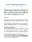 RandomNumberGenerationBasedon OscillatoryMetastabilityinRingCircuits By Laszlo Hars (Laszlo at Hars dot US) Abstract: Random number generator designs are discussed, which utilize oscillatory metastability, induced by switching between two stable states of ring‐connected digital gates. For a short time after the switch‐over the circuits behave quite randomly, influenced by the circuit noise. We provide simple programs, which simulate the fundamental behavior of our circuits. We also present a mathematical model and theoretical explanations of the underlying physical phenomena, the random phase drift and pulse decay. These also illuminate the principles of other recently published random number generators. The feasibility of the designs was confirmed by FPGA prototypes. These random number generators are small, fast and built of standard logic gates. The simplest example contains just one XOR gate as the source of randomness. Keywords: Electronic random number generators, Ring oscillators, Metastability, Random walk Introduction Many applications need a lot of random numbers, including communication protocols with frequently changing session keys, nonces; secure servers; scientific or engineering simulations; Monte Carlo‐ or randomized computations; dithering; gambling; electronic games… Often less secure pseudorandom numbers are used; or off‐line or off‐site generated true random numbers, which may need expensive large secure buffers, or secure communication channels. In this paper the theory and the most important practical implementation issues of a family of electronic random number generators are discussed. These generators help reduce costs, improving security and performance in many applications. The circuits can be built of few standard digital components, so they are simple, inexpensive, fast, and of low power. The basic principle of operation of random number generation is amplifying some effects of the always present noise to detectable levels. In the circuits considered below, little, noise‐induced phase jitter leads to large differences in settling waveforms. The idea of using metastability for random number generators in our proposed circuits originates from various designs published or disclosed on or after 2001: [14], [15], [16], [17], [21], [22] and [23]. One family of such random number generators, elaborated below, utilizes the start‐up artifacts of rings, which appeared in [23] and in 2008, the first version of this paper, submitted to CHES. The random startup behavior of long latch circuits (instead of oscillators) was exploited later in [25], and a similar idea was explored in [24], without practical considerations, theoretical background or explanations. Another manifestation of the oscillatory metastability, elaborated in this paper, is in the stopping cycles of ring oscillators, when they are turned to latches. Since these kinds of circuits have not been considered for random number generation before, we put the largest emphasis on them. The main points of this work are practical random number generator designs, the mathematical model for the randomness in oscillatory metastability, and explanations of the observed physical phenomenon, the pulse decay. We also present MATLAB macros, which simulate some aspects of the observed circuit behaviors reasonable well, despite the simplicity of their code. OscillatoryMetastabilityatStoppingaRingOscillator Many electronic random number generators use oscillators, designed to change states at uncertain time points. When they are sampled at a low enough frequency, such that the phase of the oscillator can drift more than a full oscillation period in the average, the samples appear to be sufficiently random. Figure 1. Ring oscillator of odd number of inverters However, gates in standard logic libraries are designed to be insensitive to noise and supply voltage variations, so their switching point is quite stable. For sufficient drift millions of switching events have to take place, making the random number generation slow, and too sensitive to interference. FlippingaRing In the quest for improvements we looked at ways to stop the ring oscillator, and make it to maintain the logic level at the time of the stop. The simplest option is to replace an inverter with an XOR gate, as shown on Figure 2. (Alternatively, a multiplexer could switch between a buffer and an inverter, or an inverter could be bypassed through a digital switch.) Figure 2. Flip‐able ring: Oscillator or Latch If the free input C of the XOR gate is connected to logic level 1, the gate behaves as an inverter of the signal on its other input, maintaining ring oscillator functionality. When applying logic level 0 to input C, the ring oscillator becomes a long (slow) latch circuit (consisting of a buffer and an even number of inverters for positive feedback). Note that a single XOR gate (of large delay) could work like this [23]. Experiments The ring oscillator output settles to a stable logic level. However, the settling is not instantaneous, as it is seen in the oscilloscope trace below, captured on an FPGA prototype circuit (details will follow). The pulses decay gradually: Figure 3. Pulse decay after turning a ring oscillator to a latch The top signal trace on Figure 3 shows the output waveform before and after the level on the C input of the XOR gate changes (inverted lower trace). If the flipping a negative feedback ring oscillator to a positive feedback latch occurs in the middle of a pulse, the duty cycle of the new pulse train at the output will be close to 50%. There will be no significant change in the shape of the signal for a long time (Figure 4 and Figure 5). 2 / 15 Figure 4. Flip in the middle of a negative pulse Figure 5. Flip in the middle of a positive pulse The two oscilloscope traces show practically the same behavior after the feedback is switched over from negative to positive, regardless of the high or low output voltage level 