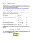 Phys 11: 5.2 Mechanical Energy Mechanical energy is the energy that is possessed by an object due to its motion or due to its position. Mechanical energy can be either kinetic energy (energy of motion) or potential energy (stored energy of position). http://www.physicsclassroom.com/class/energy/Lesson-­‐1/Mechanical-­‐Energy Kinetic energy is the energy associated with the motion of an object. A body at rest will gain kinetic energy if work is done on it by an external force that causes the body to move. If we want the body to be moving at speed v, we can calculate the amount of work that must be done: From last class: W = F d But we know from Newton’s second law: F = m a (1) So we get: W = (m a)d (2) Or: W = m (a d) (3) Now, remember from kinematics: vf2 = v02 + 2ad (4) 𝒗𝒇 !