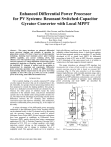 Enhanced Differential Power Processor for PV Systems: Resonant Switched-Capacitor Gyrator Converter with Local MPPT Alon Blumenfeld, Alon Cervera, and Mor Mordechai Peretz Power Electronics Laboratory Department of Electrical and Computer Engineering Ben-Gurion University of the Negev Beer-Sheva, Israel alonblu@bgu.ac.il; cervera@bgu.ac.il; morp@ee.bgu.ac.il http://www.ee.bgu.ac.il/~pel Abstract— This paper introduces an enhanced differential power processor topology and principle of operation for photovoltaic systems (PV) that is based on switched-capacitor technology, featuring local maximum power point tracking (MPPT) capability, zero current switching (ZCS), high efficiency over wide operation range, and reduced size. The new converter operates as a voltage-dependent current-source and is regulated by dead-time or frequency control. Local MPPT on the individual PV elements is realized and the operation is demonstrated by simulation and experiments. Differential power processing operation is verified on 100W prototypes, demonstrating ultimate improvement in the power harvesting capability of above 90% and up to 99% out of the available power in the string, under different insolation levels. I. INTRODUCTION Full or partial shading of a serially connected PV string severely impacts the power that can be extracted from it [1], [2]. Generally, two groups of power processing solutions have been proposed to remedy the shading problem. One group is based on a dedicated converter/inverter per element [3], [4], whereas the other group of solutions keeps the series connection of the elements intact, and process mismatched currents due to the shaded unit(s) using parallel circuitry [5][7]. The latter has the advantage of processing only the power differences between the PV elements, thus minimizes conversion losses and improves reliability. This architecture, referred as differential power processing [8], is the subject of this study. A unique advantage of the differential power processing architecture is that Maximum Power Point Tracking (MPPT) can be obtained locally, in the PV element level, by processing only the necessary amount of power needed to achieve Maximum Power Point (MPP). Several converter realizations have been proposed as candidates as Differential Power Processors (DPP), mainly derived from battery management applications [9], [10]. A Switched Capacitor Converter (SCC) proposed in [11], [12], as a voltage equalizer with simple open-loop control, relying on the assumption that MPP voltage deviation due to change in irradiance level is negligibly small. This approach stands out in its simplicity, 978-1-4799-2325-0/14/$31.00 ©2014 IEEE high self-efficiency and lower cost. However, it lacks MPPT capability without introducing losses. A buck-boost topology has also been proposed, acting as an equalizer [7], and further developed in [8] to obtain local MPPT by differential processing to keep all PV units in MPP. However, compared to SCC technology of the same power level, it is bulkier in volume due to the large magnetic element required. This paper introduces an enhanced DPP topology that incorporates the virtues of both worlds in a newly developed current sourcing converter that is based on resonant SCC technology (Fig. 1). The new converter is of low-volume, features high-efficiency with extended operation range, and is capable to perform local MPPT. This paper covers a brief introduction to DPP architecture, and presents a new converter topology with its principle of operation. Later, differential power processing and local MPPT are described by simulations and experiments. I2 ID PV1 CB Q1 Q2 L C V1 PV2 CB Q3 Q4 I1 I`D Hill Climbing State ± df Machine MPPT Fig. 1. 2972 DPP Conceptual hardware setup. DIFFERENTIAL POWER PROCESSING – OPERATION AND REALIZATION power level, and there is a trade-off between the size and performance of the converter. The main goal of differential power processing in PV systems is to maximize the power conversion efficiency by processing only a small portion of the power being produced. The concept has been initially introduced in [13], [14] and further developed and demonstrated in [8]. The architecture is conceptually shown in Fig. 2. It consists of N serially connected PV elements and N-1 current sourcing converters connected in parallel with two adjacent PV elements. The differential power passes along the string in a so-called bucket-brigade pattern. Each converter performs local MPPT to one of its two connected PVs by sinking or sourcing current to/from the neighboring PV element. A central grid-connected inverter is still used to interact with the grid and to track the global MPPT. Effectively, it also performs the local MPPT for the Nth element. To overcome these challenges, this study introduces a new DPP topology. It combines the benefits of reduced size SCC and current sourcing properties with high efficiency over a wide range [15]. II. The differential converters are needed only in case of mismatch in the MPPs, i.e. only a portion of the power is processed. The MPP is maintained for each of the PV elements thanks to differential current provided by the DPP. The amount of power processed by each converter in a string of N elements to bring the mismatched element (PVx, Fig. 2) to its MPP can be expressed as: The converter configuration as a DPP is described in Fig. 1. Similar to the architecture of a conventional inverting resonant SCC [16]-[19], the DPP includes four switches and a resonant tank. Two PV elements connect as input and output sources. As opposed to the operation of a classical SCC that includes a charge state and a discharge state, here, an additional switching phase is introduced that breaks the rigid connection of the input/output voltage gain and the efficiency of the converter. Controlling the sequence of the switches governs the power flow direction, hence bidirectional step up/down operation. Iout PV1 (1) PVx i , MPP 
