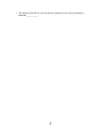 Page 1. The substance that fills the cell from plasma membrane to the nuclear membrane is called the ____________. 1 Page 2 Page 2. A long, whiplike projection from the cell used in locomotion is a(n) ______________. 3 Page 4 Page 3. Small hairlike projections from the cell are called ___________. 5 Page 6 Page 4. The organelle that contains digestive enzymes is the ____________. 7 Page 8 Page 5. The large organelle that is the control center of the cell is the ___________. 9 Page 10 Page 6. In the pairing of bases in DNA, adenine pairs with __________. 11 Page 12 Page 7. The substance that makes up the genes is ________________. 13 Page 14 Page 8. In the pairing of bases in RNA, adenine pairs with ___________. 15 Page 16 Page 9. The type of RNA that carries amino acids to the ribosome is __________. 17 Page 18 Page 10. The process of synthesizing proteins based on an mRNA template is called ____________. 19 Page 20 Page 11. The period between one cell division and the next is called ________. 21 Page 22 Page 12. The process by which specialized cells engulf large particles is _____________. 23 Page 24 Page 13. The diffusion of water through a semipermeable membrane is ______________. 25 Page 26 Page 14. Passage of a solution through a membrane under mechanical force is called ___________. 27 15. A solution that has a lower concentration than the fluid within the cell is termed ___________. 16. A cell placed in a _______________ solution will swell. 17. The percentage salt in a normal saline solution is _____________. 18. A change in the genetic material of a cell is called a(n) ______________. 19. A personal characteristic or lifestyle habit that increases one's chances of getting cancer is called a(n) ______________. 20. A prefix meaning same is ________. Page 21. The metric unit used for microscopic measurement is the A) me ter B) mi cro me ter C) ce nti me ter D) kil om ete r 28 Page 22. The microscope with the highest magnification is the A) sca nni ng ele ctr on mi cro sco pe B) tra ns mi ssi on ele ctr on mi cro sco pe C) co mp ou nd lig ht mi cro sco pe D) si mp le lig ht mi cro sco pe 29 Page 23. The plasma membrane is best described as A) sol id B) per me abl e C) sel ect ive ly per me abl e D) hy pot oni c 30 Page 24. The major lipids in the plasma membrane are A) pro tei ns an d ph os ph oli pid s B) car bo hy dra tes an d pro tei ns C) ph os ph oli pid s an d ch ole ste rol D) cal ciu m sal ts an d ph os ph oli pid 31 s 25. Which of the following membrane proteins changes shape to move substances across the plasma membrane? A) ch an nel B) rec ept or C) en zy me D) tra ns por ter Page 26. Which of the following membrane proteins attaches cells to other cells? A) ch an nel B) lin ker C) cel l ide ntit y ma rke r D) tra ns por ter 32 27. The small body in the nucleus that assembles ribosomes is called the A) nu cle olu s B) mit oc ho ndr ion C) ce ntr iol e D) en do pla sm ic reti cul um Page 28. An organelle that produces energy for the cell is called a(n) A) rib os om e B) mit oc ho ndr ion C) Go lgi ap par atu s D) nu cle olu s 33 29. Small bodies involved in the manufacture of proteins are A) rib os om es B) nu cle oli C) mit oc ho ndr ia D) ce ntr iol es Page 30. If a cell lacked centrioles, it would not be able to A) sy nth esi ze pro tei ns B) sy nth esi ze R N A C) div ide D) sec ret e pro tei ns 34 Page 31. A particular cell type specializes in breaking down harmful by-products of metabolism. This cell type would contain very high levels of A) lys os om es B) en do pla sm ic reti cul um C) ce ntr iol es D) per oxi so me s 35 32. Two cells vary in the amount of energy they require. One cell, a muscle cell, must generate large supplies of ATP. The other cell, a skin cell, requires very little ATP. Based solely on information provided in this question, these two cells would differ in the abundance of A) mit oc ho ndr ia B) lys os om es C) ves icl es D) Go lgi ap par atu s Page 33. A nucleotide contains a nitrogen base, a sugar unit, and a A) ph os ph ate uni t B) gly cer ol C) fatt y aci d D) pro tei n uni t 36 34. The RNA found in ribosomes is called A) rR N A B) m R N A C) tR N A D) sR N A Page 35. Ribosomes participate in the process of A) D N A sy nth esi s B) tra nsc rip tio n C) tra nsl ati on D) mu tati on 37 Page 36. Transcription is the synthesis of A) R N A B) pro tei n C) lipi ds D) car bo hy dra tes 38 Page 37. The correct order of the stages in mitosis is A) an ap has e, tel op has e, me tap has e, pro ph ase B) pro ph ase , me tap has e, an ap has e, tel op has e C) pro ph ase , an ap has e, tel op has e, me tap 39 has e D) tel op has e, an ap has e, pro ph ase , me tap has e Page 38. The phase of mitosis when the chromosomes pull apart is A) int erp has e B) tel op has e C) an ap has e D) me tap has e 40 39. The phase of mitosis during which the chromosomes condense is A) an ap has e B) pro ph ase C) me tap has e D) int erp has e Page 40. Droplets of fluid are taken in by the cell using the process of A) dif fus ion B) pin oc yto sis C) ex oc yto sis D) act ive tra ns por t 41 41. What effect does diffusion usually have on the concentration gradient? A) inc rea se B) de cre ase C) no ch an ge D) No ne of the ans we rs are cor rec t. Page 42. Which of the following processes requires ATP? A) os mo sis B) dif fus ion C) act ive tra ns por t D) fac ilit ate d dif fus ion 42 43. Which of the following processes moves a substance that can freely pass through the plasma membrane? A) si mp le dif fus ion B) fac ilit ate d dif fus ion C) act ive tra ns por t D) ph ag oc yto sis Page 44. Cells shrink when they are placed in solutions that are A) iso ton ic B) hy per ton ic C) hy pot oni c D) os mo tic 43 Page 45. Which of the following cell populations would be considered a cancer? A) a cel l po pul ati on tha t rep rod uc es ex ces siv ely but do es not mi gra te B) a cel l po pul ati on tha t rep rod uc es ex ces siv ely an d mi gra 44 Page tes C) an y cel l po p