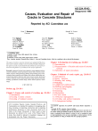 ACI 224.1R-93 Reapproved 1998 Causes, Evaluation and Repair of Cracks in Concrete Structures Reported by ACI Committee 224 Grant T. H&orsen*t Chairman Peter Barlowt Florian Bartht Alfred G. Bishara* Howard L Boggs Merle E. Brandee David Darwin* Fouad H. Fouad Randall W. Poston Secretary David W. Fowlerg Peter Gergely* Wii Hansen M. Nadim Hassoun Tony C. Iiu$ Edward G. Nawy Harry M. Palmbaum Keith A. Pashina Andrew Scanlon$ Ernest K. Schrader Wimal Suaris Lewis H. Tuthill Zenon A. Zielinski * Contributing Author t Member of Task Group which prepared these revisions $ Principal Author 0 Chairman of Task Group which prepared these revisions Note: Associate members Masayatsu Ohtsu, Robert L. Yuan, and Consulting Member LeRoy Lutz contribute to the revision of this document. The causes of cracks in concrete structures are summarized The procedures used to evaluate cracking in concrete and the principal techniques for the repair of cracks are presented The key methods of crack repair are discussed and guidance is provided for their proper application Keywords: autogenous healing; beams (supports); cement-aggregate reactions; concrete construction; concrete pavements; concrete slabs; concretes; consolidation; corrosion; cracking (fracturing); drilling; drying shrinkage; epoxy resins; evaluation; failure; grouting, heat of hydration; mass concrete; methacrylates; mix proportioning; plastics, polymers and resins; precast concrete; prestressed concrete; reinforced concrete; repairs;resurfacing; sealing settlement (structural); shrinkage; specifications; structural design; tension; thermal expansion; volume change. Chapter 2-Evaluation of cracking, pg. 224.1R-9 2.1-Introduction 2.2-Determination of location and extent of concrete cracking 2.3-Selection of repair procedures Chapter 3-Methods of crack repair, pg. 224.1R-13 3.1-Introduction 3.2-Epoxy injection 3.3-Routing and sealing 3.4-Stitching CONTENTS 3.5-Additional reinforcement 3.6-Drilling and plugging Preface, pg. 224.1R-1 3.7-Gravity filling 3.8-Grouting Chapter 1-Causes and control of cracking, pg. 224.1R-2 3.9-Drypacking 1.1-Introduction 3.10-Crack arrest 1.2-Cracking of plastic concrete 3.11-Polymer impregnation 1.3-Cracking of hardened concrete 3.12-Overlay and surface treatments 3.13-Autogenous healing ACI Committee Reports, Guides, Standard Practices, and Commentaries are intended for guidance in designing, planning, executing, or inspecting construction and in preparing specifications. References to these documents shall not be made in the Project Documents. If items found in these documents are desired to be a part of the Project Documents, they should be phrased in mandatory language and incorporated into the Project Documents. AC1 224.1R-93 supersedes ACI 224.1R-90 and became effective September 1, 1993. Copyright d 1993, American Concrete Institute. All rights reserved including rights of reproduction and use in any form or by any means, including the making of copies by any photo process, or by any electronic or mechanical devices, printed or written or oral, or recording for sound or visual reproduction or for use in any knowledge or retrieval system or device, unless permission in writing is obtained from the copyright proprietors. 224.1R-l 224.1R-2 ACI COMMITTEE REPORT Chapter 4-Summary, pg. 224.lR-19 Acknowledgment, pg. 224.1R-19 Chapter 5-References, pg. 224.1R-20 5.1-Recommended references 5.2-Cited references PREFACE Cracks in concrete have many causes. They may affect appearance only, or they may indicate significant structural distress or a lack of durability. Cracks may represent the total extent of the damage, or they may point to problems of greater magnitude. Their significance depends on the type of structure, as well as the nature of the cracking. For example, cracks that are acceptable for buildings may not be acceptable in water-retaining structures. The proper repair of cracks depends on knowing the causes and selecting the repair procedures that take these causes into account; otherwise, the repair may only be temporary. Successful long-term repair procedures must attack the causes of the cracks as well as the cracks themselves. To aid the practitioner in pinpointing the best solution to a cracking problem, this report discusses the causes, evaluation procedures, and methods of repair of cracks in concrete. Chapter 1 presents a summary of the causes of cracks and is designed to provide background for the evaluation of cracks. Chapter 2 describes evaluation techniques and criteria. Chapter 3 describes the methods of crack repair and includes a discussion of a number of techniques that are available. Many situations will require a combination of methods to fully correct the problem. Preface to the 1991 Revision Following the initial publication of ACI 224.1R in 1985, the Committee processed two minor revisions. One revision, published as ACI 224.lR-89 simply updated the format of recommended references. A second minor revision contained minor technical revisions and editorial corrections in the document, and added a new section to Chapter 3, regarding the use of high-molecular-weight methacrylates as sealer/healers. During 1990 a Committee 224 Task Croup reviewed the document and recommended the revisions contained herein. Chapter 1 has been altered in only minor detail. The introduction to Chapter 2 has been revised extensively, and additional minor revisions have been made to the rest of the Chapter. In Chapter 3, the section on routing and sealing has been rewritten to include flexible sealing and overbanding of cracks, and it is updated to reflect current materials and construction practices. Section 3.2 on epoxy injection has been revised to be somewhat more general and reflect current practice. The for- mer section on high-molecular-weight methacrylates has been moved to Section 3.7 and retitled “Gravity Filling.” This recognizes the point that “high-molecular-weight methacrylate” is a material, and