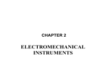 CHAPTER 2 ELECTROMECHANICAL INSTRUMENTS Learning Outcomes At the end of the chapter, students should be able to: Understand construction and operation of permanent magnet moving-coil (PMMC) instrument. Describe how PMMC instruments are used as galvanometers, dc ammeters, dc voltmeters, ac ammeters, and ac voltmeters. Introduction PMMC instrument consists basically of a lightweight coil of copper wire suspended in the field of a permanent magnet. Current in the wire causes the coil to produce a magnetic field that interacts with the field from the magnet, resulting in partial rotation of the coil. A pointer connected to the coil deflects over a calibrated scale, indicating the level of current flowing in the wire. The PMMC instrument is essentially a low-level dc ammeter. Introduction It can be employed to measure a wide range of direct current dc levels with the use of parallel-connected resistors. The instrument may also be used as a dc voltmeter by connecting appropriate-value resistors in series with the coil. Ohmmeters can be made from precision resistors, PMMC instrument, and batteries. Multirange meters are available that combine ammeter, voltmeter, and ohmmeter functions in one instrument Mutlirange Voltmeter Mutlirange Ammeter Ac ammeters and voltmeters can be constructed by using rectifier circuits with PMMC instruments. The Half wave rectifier Deflection Instrument Fundamentals A deflection instrument uses a pointer that moves over a calibrated scale to indicate a measured quantity. Three forces are operating in the electromechanical mechanism inside the instrument: Deflecting force Controlling force Damping force Deflecting Force The deflecting force causes the pointer to move from its zero position when a current flows. In the PMMC instrument, the deflecting force is magnetic. The pointer is fixed to the coil So, it moves over the scale as The coil rotates The deflecting force in the PMMC instrument is provided by A current-carrying coil pivoted in a magnetic field. Controlling Force The controlling force in the PMMC instrument is provided by spiral springs. The springs retain the coil & pointer at their zero position when no current is flowing. The coil and pointer stop rotating when the controlling force becomes equal to the deflecting force. The spring material must be nonmagnetic to avoid any magnetic field influence on the controlling force. The controlling force from the springs balances the deflecting force. The springs are also used to make electrical connection to the coil, they mush a low resistance( Phosphor bronze is the material usually employed). Damping Force The damping force is required to minimize (or damp out) oscillations of the pointer and coil before settling down at their final position. The damping force must be present only when the coil is in motion; thus it must be generated by the rotation of the coil. In PMMC instruments, the damping force is normally provided by eddy currents. Eddy currents induced in the coil set up a magnetic flux that opposes the coil motion, thus damping the oscillations of the coil. Damping Force The damping force in a PMMC instrument is provided by eddy currents induced in the aluminum coil former as it moves through the magnetic field. The methods of supporting the moving system of a deflection instrument 1. Jeweled-bearing suspension Cone-shaped cuts in jeweled ends of shafts or pivots (mat be broken by shocks). low possible friction. Some jewel bearings are spring supported to absorb such shocks. 2. Taut-band method Much tougher than jeweled-bearing. Two flat metal ribbons (phosphor bronze or platinum alloy) are held under tension by spring to support the coil. Because of the spring, the metal ribbons behave like rubber under tension. Thus, the ribbons also exert a controlling force as they twist. The metal ribbons can be used as electrical connections to the moving coil. Much more sensitive than the jeweled-bearing type because there is less friction. Extremely rugged, not easily be shattered. PMMC Construction The main feature is a permanent magnet with two soft-iron pole shoes. A cylindrical soft-iron core is positioned between the core and the faces of the pole shoes. The lightweight moving coil pivoted to move within these narrow air gaps. The air gaps are made as narrow as possible in order to have the strongest possible level of magnetic flux crossing the gaps. The current in the coil of a PMMC instrument must flow in one particular direction to cause the pointer to move (positively) from the zero position over the scale. Because the PMMC is polarized, it can be used directed to measure alternating current. PMMC Construction D’Arsonval or horseshoe magnet Core-magnet 21 Torque Equation and Scale When a current I flows through a one-turn coil situated in a magnetic field, a force F is exerted on each side of the coil F (BIl ) N newtons where N is the number of turns Total force on each side of the coil of N turns: F 2 B I l N newtons The force on each side acts at a radius r, producing a deflecting torque: TD 2 B l I N r ( N .m) B l I N ( 2r ) TD B l I N D T D BlIN 2 r BlIND BA IN A=l.D, Where D is the coil diameter The controlling torque exerted by the spiral springs is directly proportional to the deformation or windup of the springs. Thus, the controlling torque is proportional to the actual angle of deflection of the pointer. TC K where K is a constant For a given deflection, the controlling and deflecting torques are equal: K BlIND BlND I CI K whereC is a constant This equation shows that the pointer deflection is always proportional to the coil current. Consequently, the scale of the instrument is linear, or uniformly divided. Example 1 v A PMMC instrument with a 100-turn coil has a magnetic flux density in its air gaps of B = 0.2 T. The coil dimensions are D = 1 cm and l = 1.5 cm. Calculate the torque on the coil for a current of 1 mA. Solution: TD B l I N D 0.2 (1.5 10 2 ) 0.001 100 (1 10 2 ) TD 3 10 6 N 