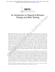 This is a chapter excerpt from Guilford Publications. DBT® Skills Manual for Adolescents. By Jill H. Rathus and Alec L. Miller. Copyright © 2015. Purchase this book now: www.guilford.com/p/rathus Chapter 1 e G ui lfo rd Pr es s An Introduction to Dialectical Behavior Therapy and Skills Training C op yr ig ht © 20 15 Th DBT® Skills Manual for Adolescents offers a guide for mental health practitioners working with adolescents who struggle to control their emotions and behaviors. Emotional and behavioral dysregulation often contribute to an adolescent’s difficulties in establishing a stable sense of self and forming fulfilling and stable relationships with peers and family members. Furthermore, problematic impulsive or avoidant behavior is often a consequence of emotion dysregulation or an effort to re-­regulate. The five sets of skills in this book directly correspond to the five major problems that are associated with emotional dysregulation in adolescents. Mindfulness skills help adolescents increase their self-­awareness and attentional control while reducing suffering and increasing pleasure; distress tolerance skills offer tools to reduce impulsivity and accept reality as it is; emotion regulation skills help increase positive emotions and reduce negative emotions; interpersonal effectiveness skills help adolescents improve and maintain peer and family relationships and build self-­respect; and walking the middle path skills teach methods for reducing family conflict by teaching validation, behavior change principles, and dialectical thinking and acting. We divide this book into three sections. The first section (Chapters 1–4) contains information for understanding dialectical behavior therapy (DBT) and its skills training mode, and for setting up and running a DBT skills training program. It explains the structure of skills training programs, describes the running and management of DBT multifamily groups and other skills training formats, and highlights the art and style of conducting DBT skills training. The second section (Chapters 5–10) contains the teaching notes, lecture points, examples, and strategies for orienting clients and teaching the specific DBT skills. The third section contains the skills training handouts for teens and families in the Orientation, Mindfulness, Distress Tolerance, Walking the Middle Path, Emotion Regulation, and Interpersonal Effectiveness Skills modules. Parts of this chapter are adapted from Miller, Rathus, and Linehan (2007) and Linehan, Cochran, and Kehrer (2001). Copyright 2007 and 2001 by The Guilford Press. Adapted by permission. 3 DBT SKILLS TRAINING STRUCTURE AND STRATEGIES 4 Adolescents Who Can Benefit from DBT Skills Training C op yr ig ht © 20 15 Th e G ui lfo rd Pr es s Adolescents can be categorized along a continuum from typical, relatively asymptomatic adolescents to severely emotionally and behaviorally dysregulated teens who may require a restrictive setting (i.e., inpatient or residential treatment). We believe that DBT skills can be beneficial to all these populations, applied within a primary, secondary, or tertiary prevention framework. Primary prevention programs are intended to ward off future problems for a general population who are not presently at risk or seeking mental health services. From this vantage point, DBT skills can be applied broadly to middle school, high school, and early college-­age youth with normal moodiness, occasional relational difficulties, and perhaps experimentation with risk behaviors. Many normal adolescents exhibit some degree of emotional dysregulation, and training in DBT skills, by itself, may benefit these teens. Secondary prevention programs are intended to protect against the full blossoming of mental health disorders for at-risk individuals characterized by mild or early indicators of mental health needs (e.g., school difficulties, attentional problems, sad or anxious mood, family conflict). DBT skills can be applied to these individuals in schools or clinical settings. Tertiary preventions target individuals with significant emotional and behavioral disorders in order to actively treat the disorders while improving functioning. For this population, practitioners often apply DBT skills as part of a comprehensive DBT treatment program in outpatient, inpatient, residential, and juvenile justice settings. Linehan (1993a, 1993b) designed DBT as a comprehensive treatment program for high-risk clients diagnosed with borderline personality disorder (BPD). Comprehensive DBT with severely dysregulated adolescents follows Linehan’s original model, with multiple treatment modalities. Many of the youth treated with comprehensive DBT typically carry two to four DSM-5 disorders as well as many other life problems not captured by these diagnoses. Such severely dysregulated teens are typically not able to fully benefit from skills training without a more comprehensive DBT program that usually includes individual therapy, telephone coaching of skills, and a consultation team of therapists working together, in addition to skills training. For example, individual therapy in DBT requires adolescents to intensively self-­monitor their behavioral urges, actions, and skills on a diary card as well as to practice using skills in place of problem behaviors. When problem behaviors show up on a teen’s diary card, the individual DBT therapist conducts what we term behavioral chain and solution analyses with the teen. This process identifies places in the behavioral sequence where skills can be used to replace the problem behaviors. Teens are encouraged to call their individual DBT therapists for intersession telephone coaching of skills to interrupt their impulse to engage in problem behaviors. At a minimum, severely emotionally dysregulated teens at risk for suicidal behavior need a practitioner other than the skills trainers to intensively oversee their treatment, remain available to them when nee